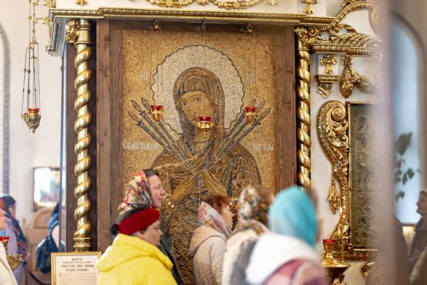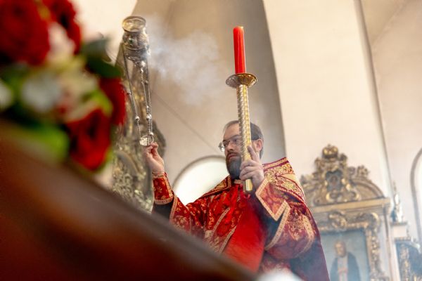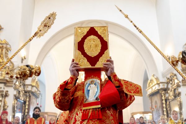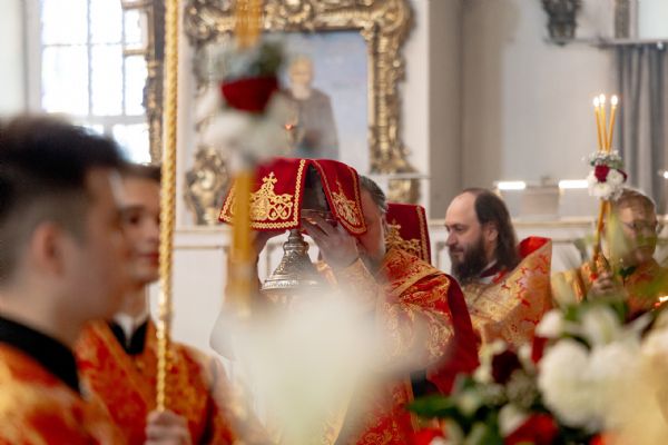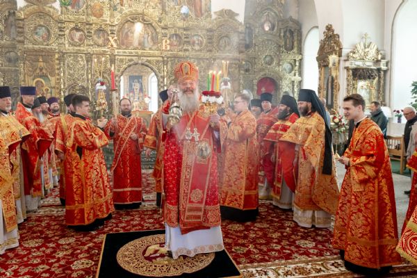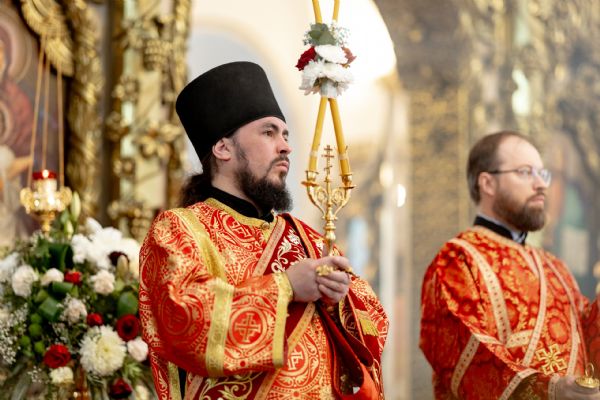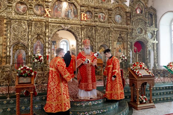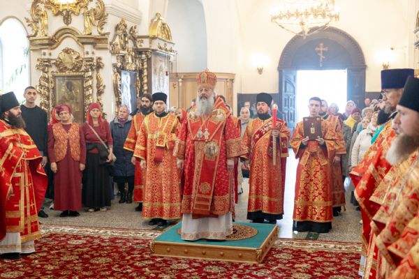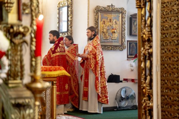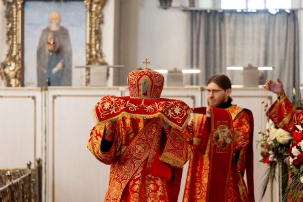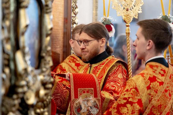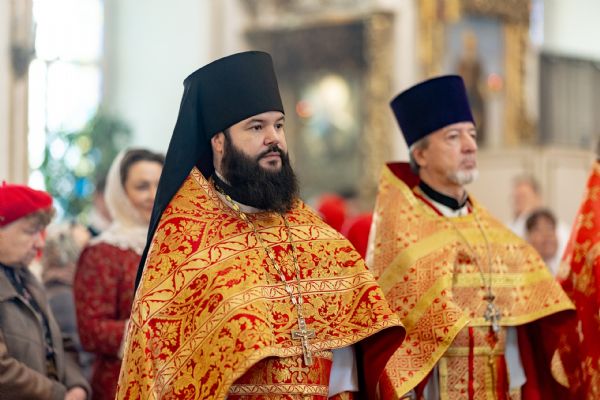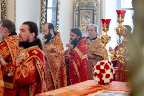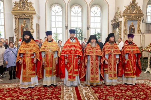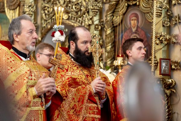 На мирной и сугубой ектениях были вознесены молитвы о Российском воинстве и о мире. Проповедь по запричастном стихе произнёс протоиерей Иоанн Барсуков.
