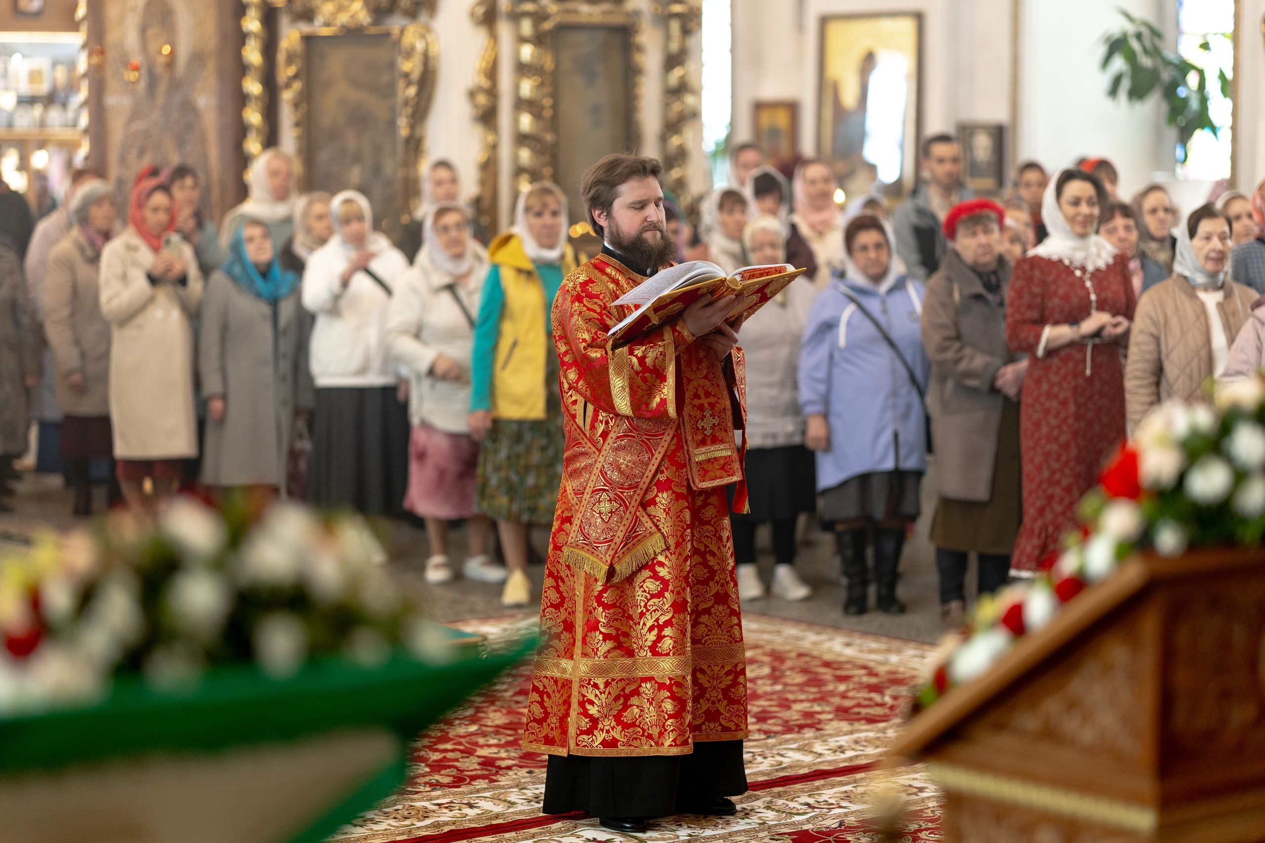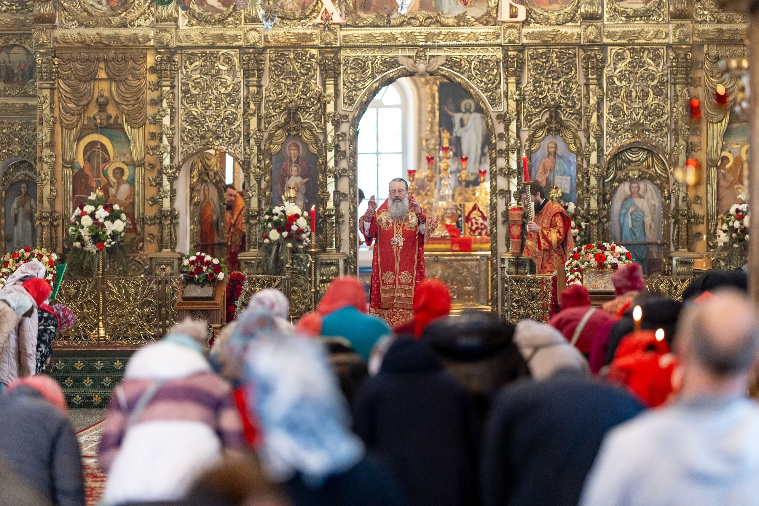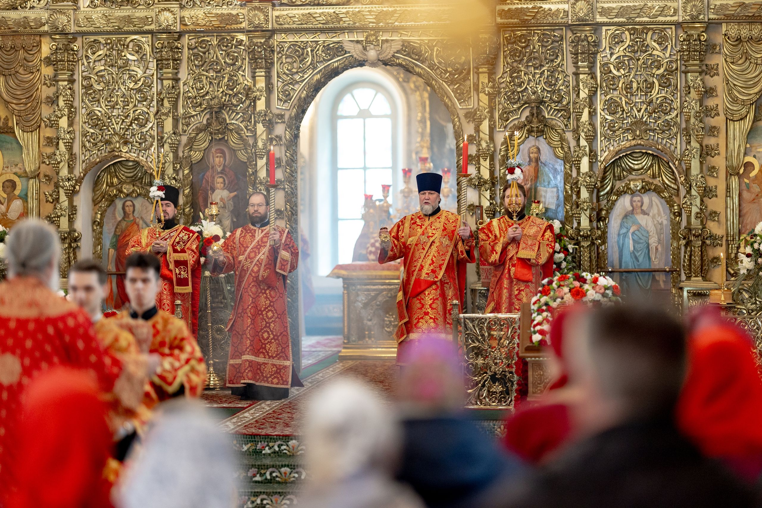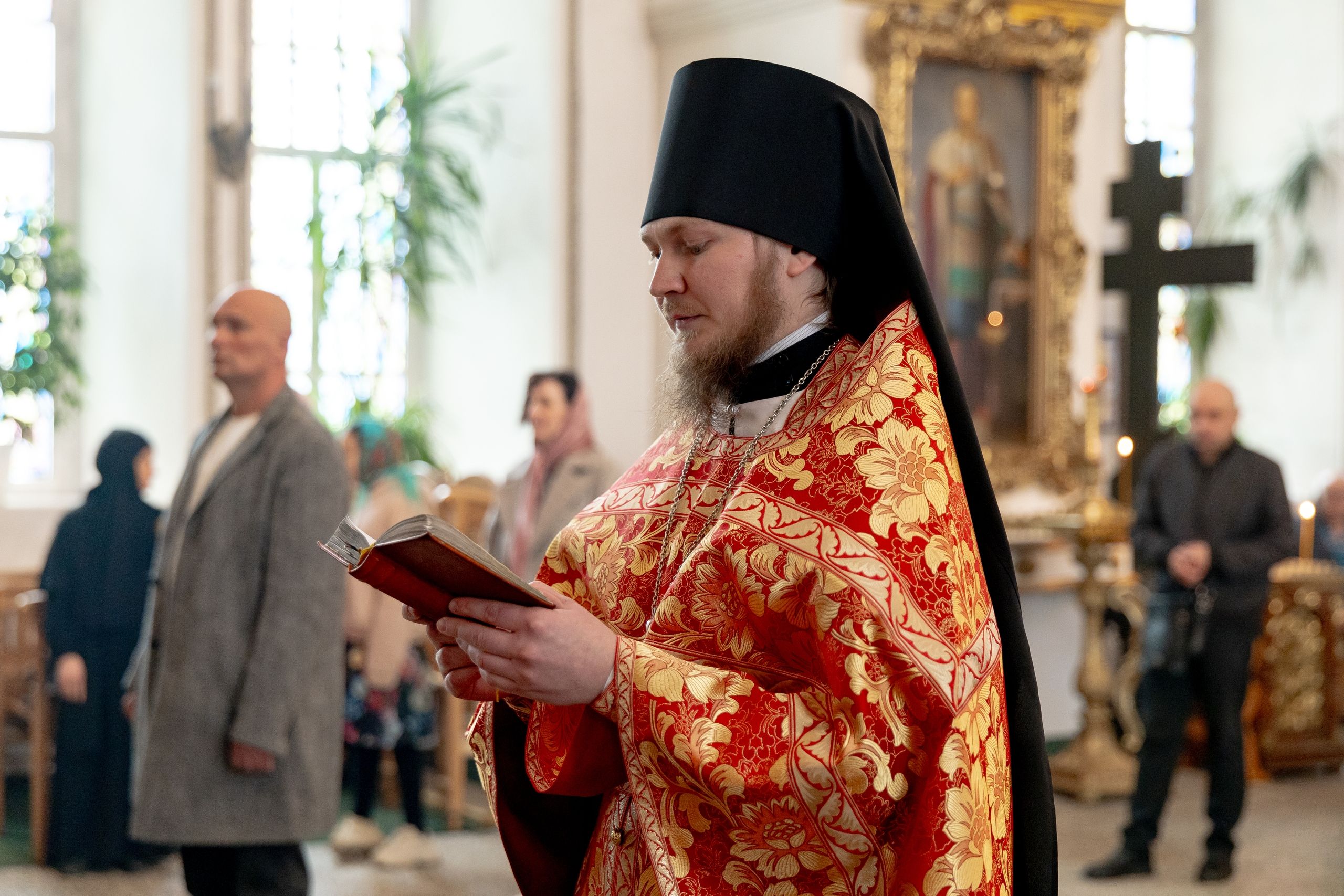 На мирной и сугубой ектениях были вознесены молитвы о Российском воинстве и о мире. Проповедь по запричастном стихе произнёс протоиерей Иоанн Барсуков.