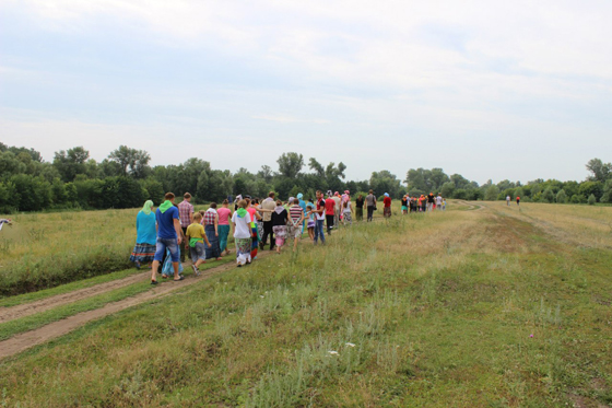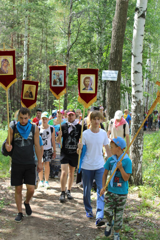 Слет начался самым трудным мероприятием — крестным ходом в Свято-Ильинский женский монастырь из н.п. Ширяево до н.п. Подгоры. Шествие предварял водосвятный молебен пророку Илие. Молебен сопровождался громом и капельками дождя среди ясного дня (!), которые только порадовали и освежили участников. Отец Вячеслав окропил всех святой водой и двинулись в путь. Впереди шли дети с хоругвями, затем батюшка и все мы. Пели Иисусову молитву: «Господи, Иисусе Христе, Сыне Божий, помилуй нас!». Пели по очереди: сначала мужской хор, потом — женский... На первой остановке (как оказалось потом — она была на середине пути!) все плескались в Волге, воды которой здесь чистые и прозрачные.