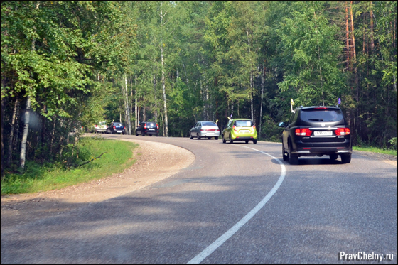 После ночного дождя грунтовую дорогу от монастыря до «асфальта» довольно хорошо размыло, и колонна двигалась медленно, автомобили немного заносило на разжиженных колеях, малолитражки то и дело «проваливались» в эти самые колеи. Наш челнинский экипаж под № 12 шёл уверено. Смущали впереди идущая пара малолитражек — экипаж № 10 и11, управляемый водителями-женщинами, вот за них беспокойство было. Но, видимо, слово схиигумена Сергия сделало своё дело. И всё обошлось, на «точку» прибыли вовремя, Слава Богу!