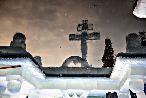 Мы все продрогли не на шутку. Потом, пока вырезали Иордань и Крест, холодная вода из-подо льда начала заливать по щиколотку наши ноги. Кто в валенках был, а кто в «прощайках». Народ, как я уже писал, был на этом поприще разношёрстный. Послушники, да работники разными были.... Да, ещё и сам Крест весил очень порядочно.