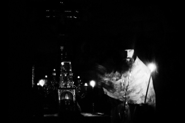 Когда я думаю о Боге, я думаю о Страстной седмице. В четверг, на утрене пятницы, в храме сумрачно. На братии одинаковые облачения из матовой черной ткани, без узорочья — очень аскетичные. А в глазах у отца П. отражаются огни свечей многочисленных прихожан. Они буквально светятся. И такое чувство, что там, в его глазах, еще один храм, и что сам он в этот момент находится не здесь, а в этом внутреннем храме. Лицо у отца П. на службе совсем каменное, и голос звучит совсем иначе, чем когда он разговаривает с тобой один на один. В какой-то момент становится страшно.