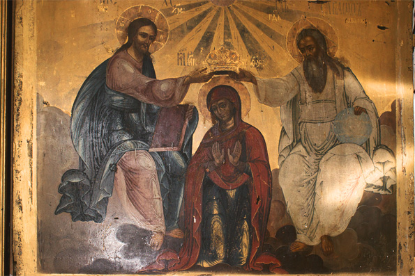 А монахини из Дивеево, которые раз в году обязательно приезжают на службу во Ржавец, наш храм называют Покровом Божией Матери. Говорят, что ни в одном другом сельском храме не найдешь столько чудотворных образов Царицы Небесной. Владимирская старинная, Казанская, на Афоне написанная, Взыскание погибших, Утоли моя печали, Покров Пресвятой Богородицы, Смоленская Седмиозерная... У нас хранится единственный в нашей митрополии образ коронования Пресвятой Богородицы. Это очень редкий образ, в России их где-то есть еще три похожих списка.