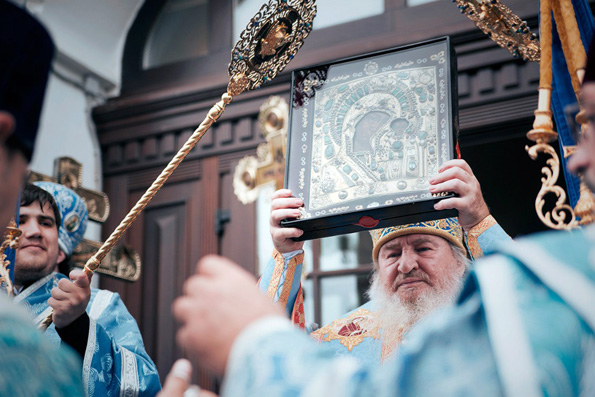 На протяжении веков Великая Русь, миллионы и миллионы людей поклоняются пречистому образу Казанской иконы Божией Матери. Зайди в любой дом христианский, я не говорю о храмах, и мы обязательно во святом углу увидим образ Пресвятой Владычицы нашей Богородицы Казанской. Сколько слез, сколько надежд, сколько всякой печали, просьб и молитв у этих икон. Как часто в лихие моменты испытаний не только один человек, но вся Русь со слезами припадала к Казанской иконе Божией Матери. Вы, конечно, все слышали, когда в Великую Отечественную также к Ней прибегали те, кто гнал Ее обители, разрушал храмы, ругался над святынями, но Она, как поистине милосердная Мать встала на защиту земли Русской. И осознаем ли мы, где мы стоим с вами? Ведь где-то здесь вот рядом Она явилась своим образом, сначала девице, потом народу казанскому, а затем пошла, пошла, пошла по России, защищая народ наш от различных печалей.