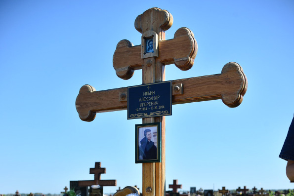 На городском кладбище собрались все наши друзья, батюшка, хор Покровского храма из Афанасово, родители Александра. На большом деревянном кресте — фотография Саши, и все взгляды молящихся невольно, на протяжении всей заупокойной службы, притягивались к улыбчивому лицу в рамочке.