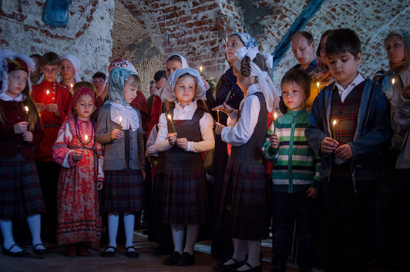Блестит под лучами солнца небольшой купол с резным крестом над светлой крышей двухэтажного пристроя. Ребята в воскресной школе Свято-Авраамиевского храма занимаются в просторном классе. Ряды столов расположены так, чтобы учащиеся сидели лицом к алтарю. Перед ними лики Спасителя, Богородицы, угодников Божиих. Каждое занятие в школе начинается и заканчивается молитвой. На классной доске крупно написано «Свет Христов просвещает всех!».