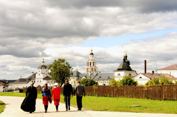 На Свияжском острове облака как-будто липли к лицам. Небо было так близко к нам в этот день, так прекрасно, что в его видимой небесно-облачной тверди как будто невидимо дышал Сам Господь. Радость от пребывания на этой удивительной святой земле, венчавшую Московское государство на царствование в качестве стремительно растущей Российской империи, была непередаваемой.