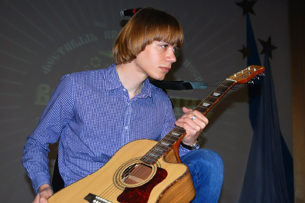 Нашего друга Илью Тимкина на фестивале окрестили «самым молодым бардом епархии». Я прямо-таки представляю смущенное выражение его лица в этот момент. Золотоволосый, романтичный, в джинсах и клетчатой в тон рубашке, с гитарой наперевес — словно завсегдатай знаменитой Грушинки.