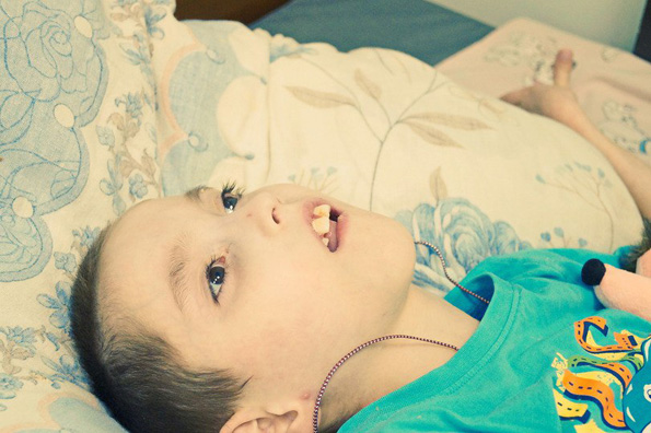 Мы зашли в комнату, где живут Георгий и Вика. Сказать, что им сложно — это не сказать ничего. Они плакали и кричали. Мы не знали наверняка, понимают ли они наши слова, но наше присутствие они точно чувствовали. Мы подарили им мягкие игрушки, стали разговаривать, общаясь скорее сердцем, чем словом. Георгий стал гладить лисичку. Не в силах повернуть голову он только моргал, изо всех сил стараясь встретиться с нами взглядом. Казалось, что боль на несколько минут отошла от него в сторону.