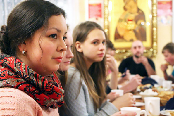 «Хочется с вами встретиться», — писал мне в «личку» задолго до приезда в Нижнекамск Максим. «Ребята, встречаемся с болгарцами в храме в семь, не опаздывайте», — строчили в сетевые диалоги сообщения нижнекамские ребята. А еще готовили «интригу» — у нашего Федора в этот день был день рождения. Мы зазывали нашего друга на эту встречу — в трапезную афанасовского Покровского храма, готовили ему подарок и поздравления. Постные треугольники с грибной начинкой от хозяйки трапезной — Ираиды, сладкие угощения от семьи Колчериных, шарики, кружка с Фединым фото на память от всех ребят… Максим предложил идею «поздравительного» коридора: смущенного именинника прогнали сквозь строй приветствий, пожеланий, дружеских похлопываний и обнимашек.