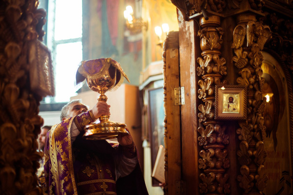 К какому высокому и бесконечно счастливому служению призван человек! Помните, юношами мы мечтали спасти мир, и горько плакали, осознавая, что это невозможно? Но вот — «стяжи дух мирен, и тогда тысячи людей спасутся вокруг тебя». Стяжи дух мирен, яви окружающим Бога, стань проводником Его Света, стань подобным Ему — и люди побегут к тебе, по острым камням рванут в пещеру пустынника, поедут в Псков на перекладных к старцу Иоанну Крестьянкину, не будут давать прохода другому Иоанну в Кронштадте… Начаток этого почти совершенного мира, света и радости способны, обязаны являть и мы с вами — грешники, мнящие себя «воцерковлёнными», мы, которые только-только начали подниматься по ступенькам Любви. И свет, который горит в нас — черпать масло для него, поддерживать слабый огонёк мы просто обязаны на Божественной Литургии.