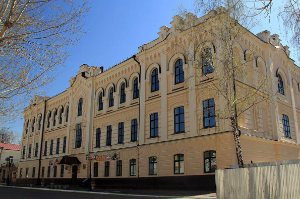 Вновь открытое училище сразу разместилось в доме, купленном у купца Леонтия Мешкичева. Позже, в 1891— 1895 годах, на этом месте было построено новое трехэтажное здание училища с домовой церковью во имя святой равноапостольной царицы Елены. Это здание сохранилось (улица Бебеля, 121/33). Здание построено по проекту казанского архитектора Льва Казимировича Хрщоновича на пожертвования купцов Григория Егоровича и Николая Егоровича Чукашевых — они, как и их отец, представляли ту часть известного купеческого рода, которая обратилась из старообрядчества к господствующей церкви.