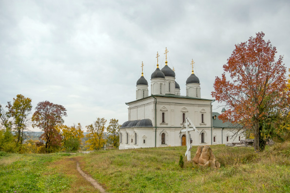 Болховский монастырь расположен на высокой живописной горе, покрытой чудным бором; подле горы протекает из города река, впадающая в Оку. В 1843 году настоятелем этого монастыря был назначен основатель Алтайской миссии, архимандрит Макарий (Глухарев). Отец Макарий, вскоре же ко прибытии своем в город Болхов (15 ноября 1844 г.), снискал к себе любовь окрестного населения и стал почитаться народом за прозорливого и святой жизни старца. Многие, даже из дальних краев, приходили к нему послушать его доброго слова и получить полезный совет, и преподобный Макарий, не смотря на болезненное состояние, никому не отказывал в своем общении, всех удовлетворял и, таким образом, был светильником местного края. 18 мая 1847 года великий миссионер-подвижник и учитель Болхова скончался и оплакиваемый всеми был погребен в своей обители. Отец Макарий умер, но слава о нем, как о святом человеке, — угоднике Божием, не умерла и доселе живет в народе. Народ твердо верит в его предстательство пред Господом и считает своим священным долгом посещать его могилу. На могиле и вообще по молитвам отца Макария совершаются дивные дела Божия.