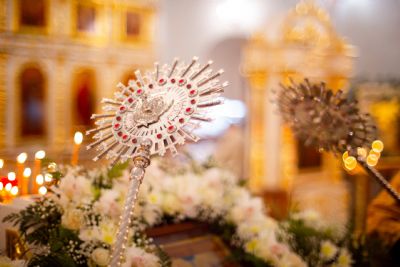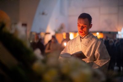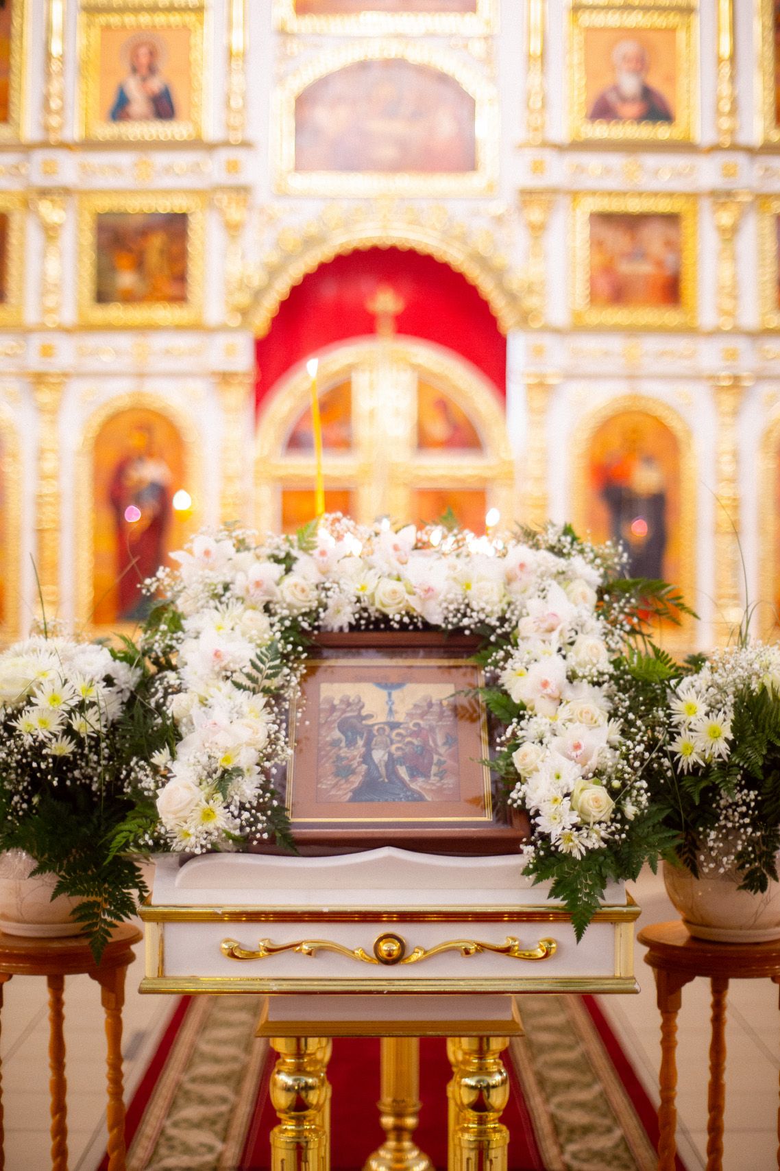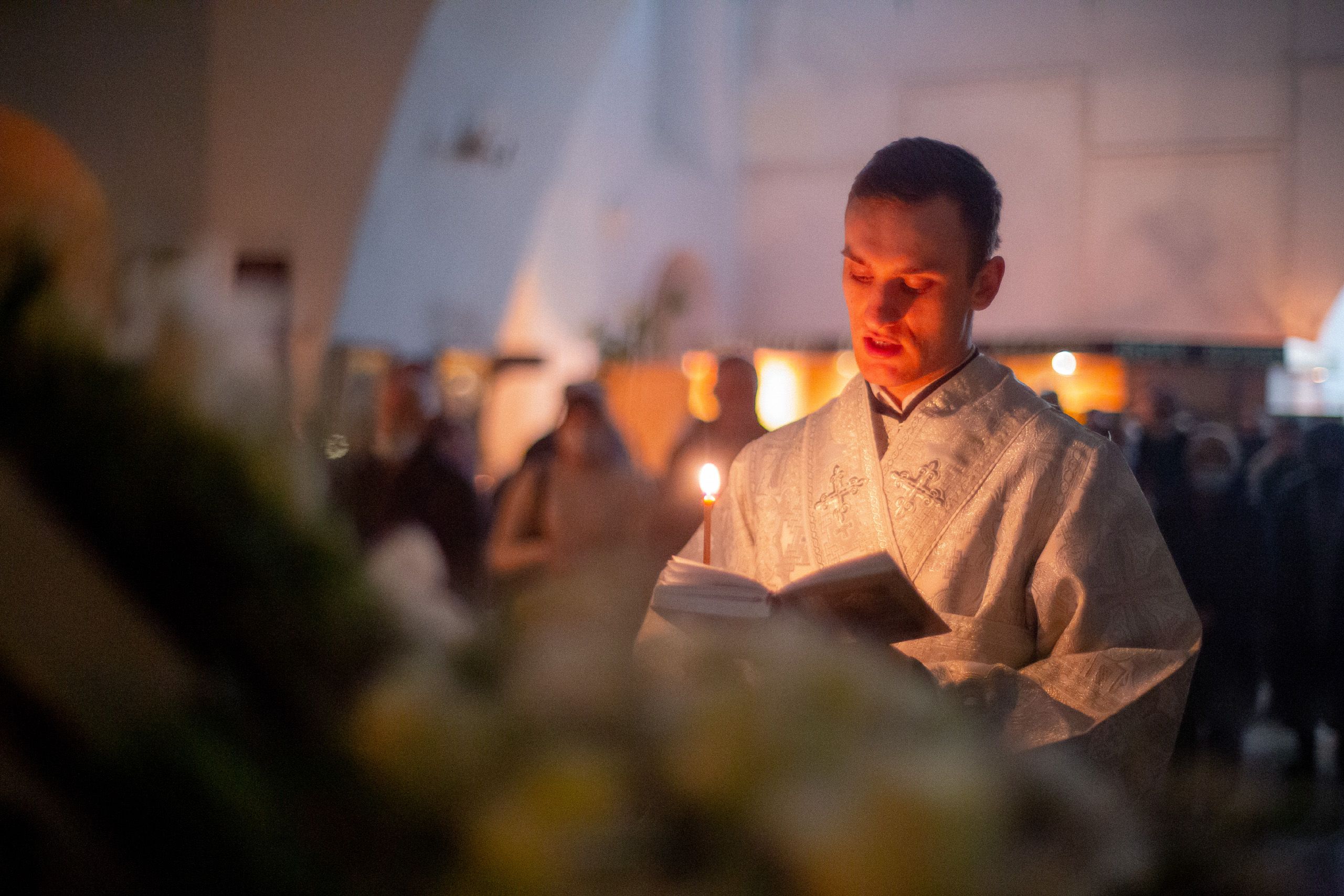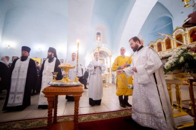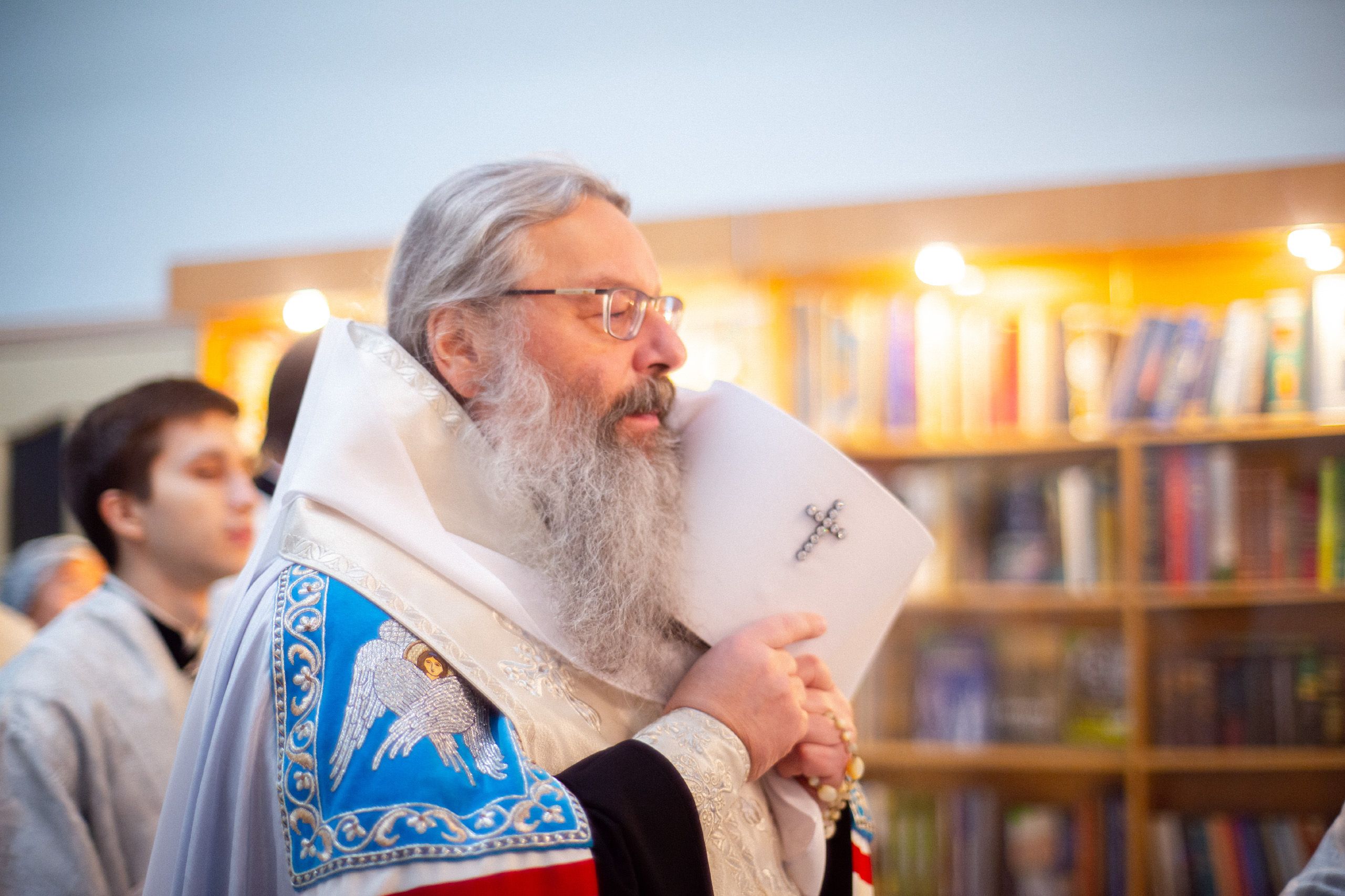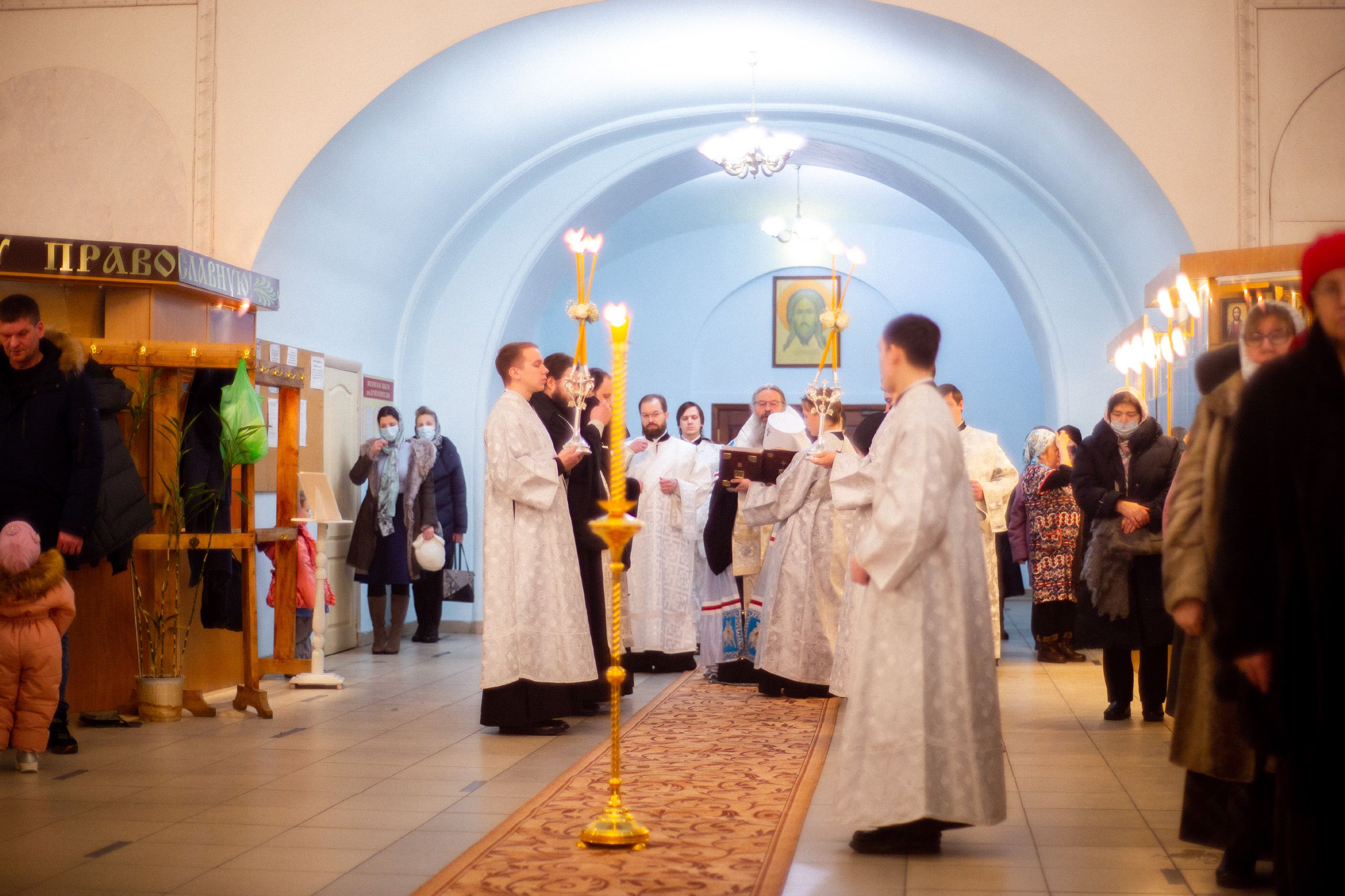 Богослужебные песнопения исполнил смешанный хор под управлением Анастасии Арслановой. После полиелея отец Кирилл (Корытко) произнёс проповедь.