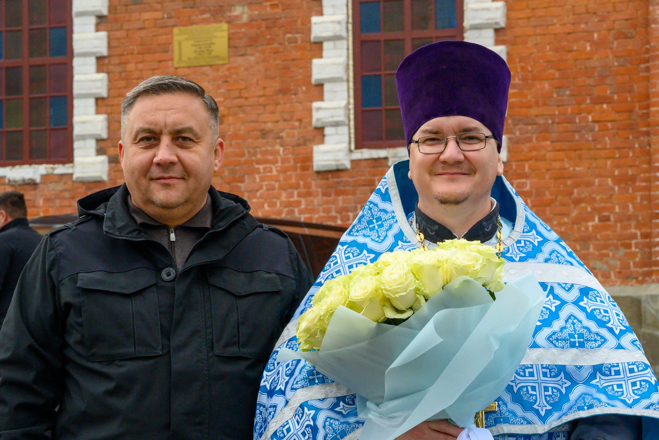 Владыка поприветствовал и поблагодарил за сотрудничество присутствующего на богослужении руководителя Аппарата Совета Высокогорского района Алексея Афанасьева.