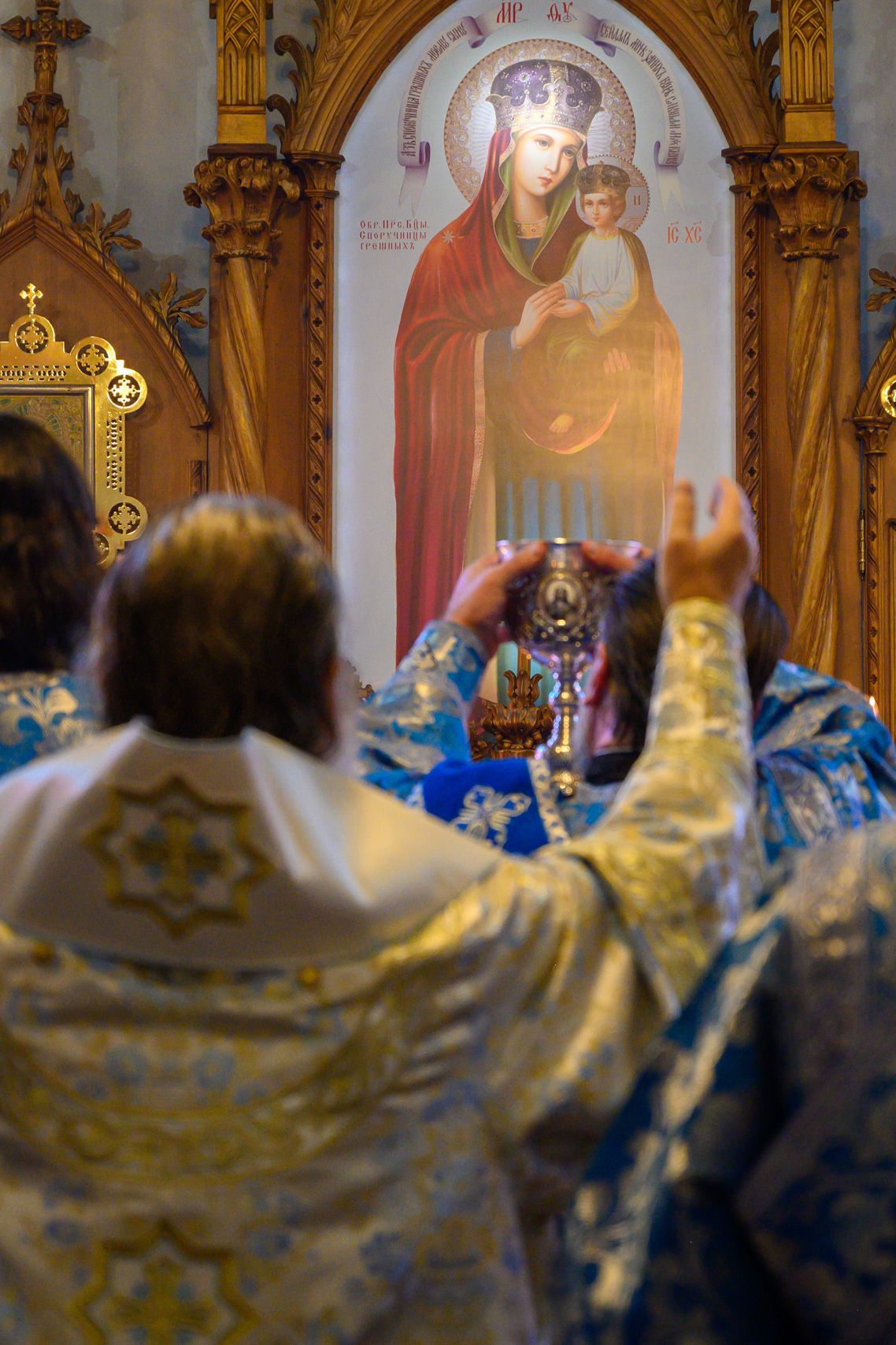 Давайте в этот светлый праздник, стоя на крыльце этого святого храма, освященного в честь Рождества Божией Матери, вознесём Царице Небесной нашу убогую, скромную, но искреннюю молитву.