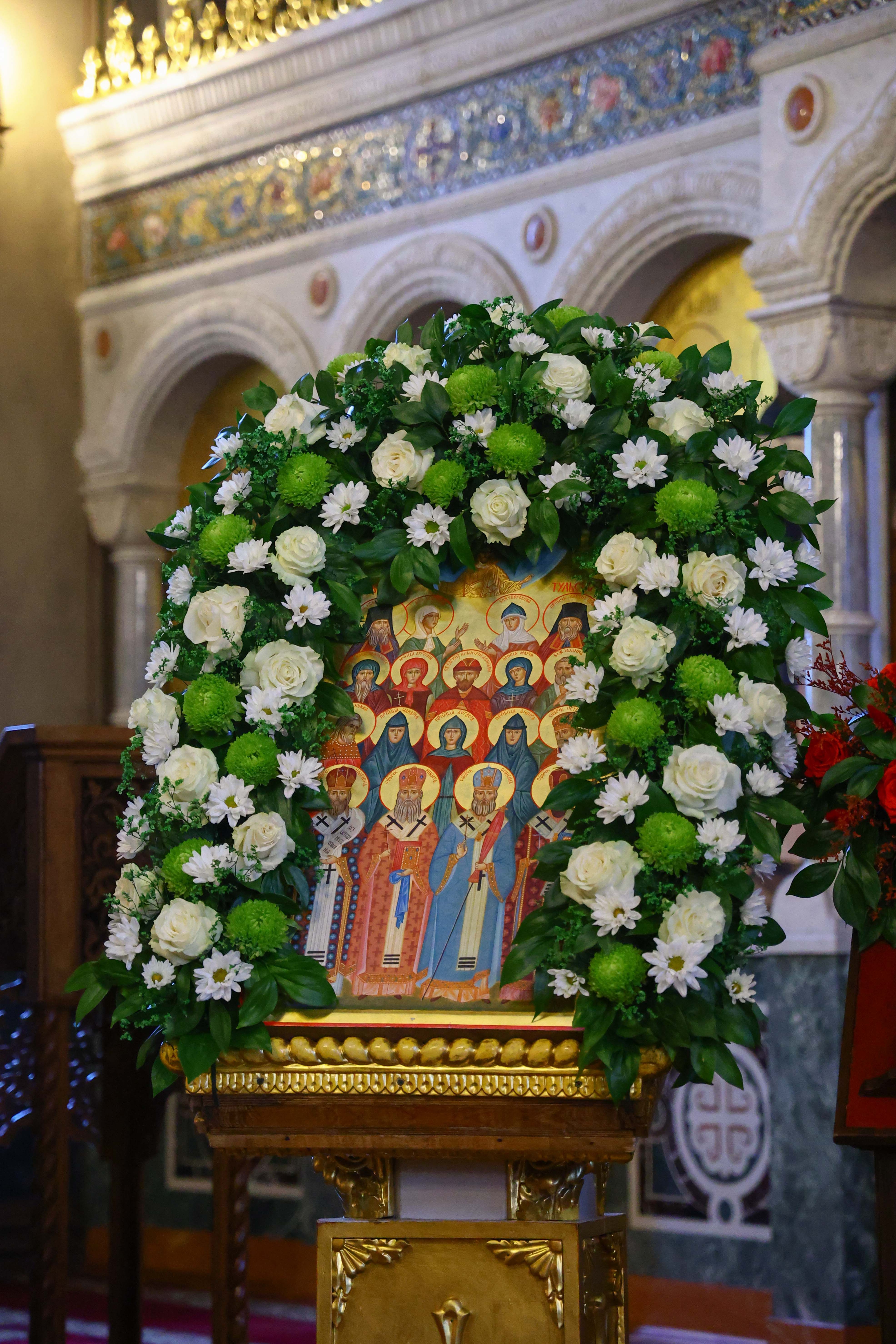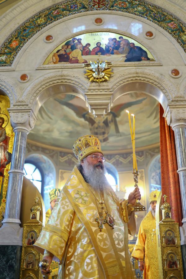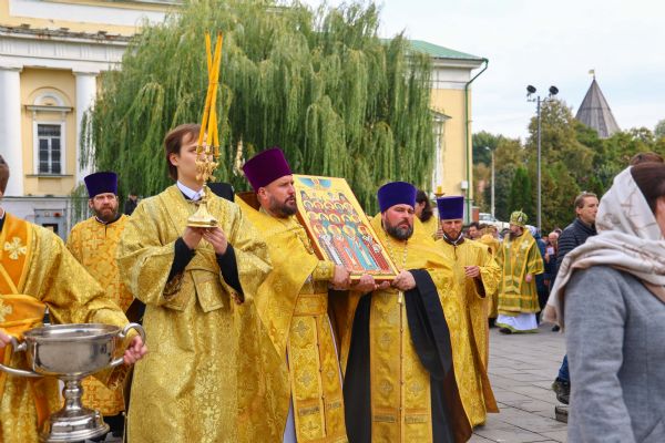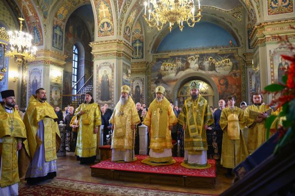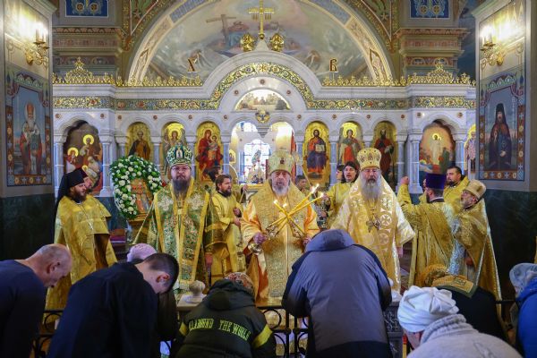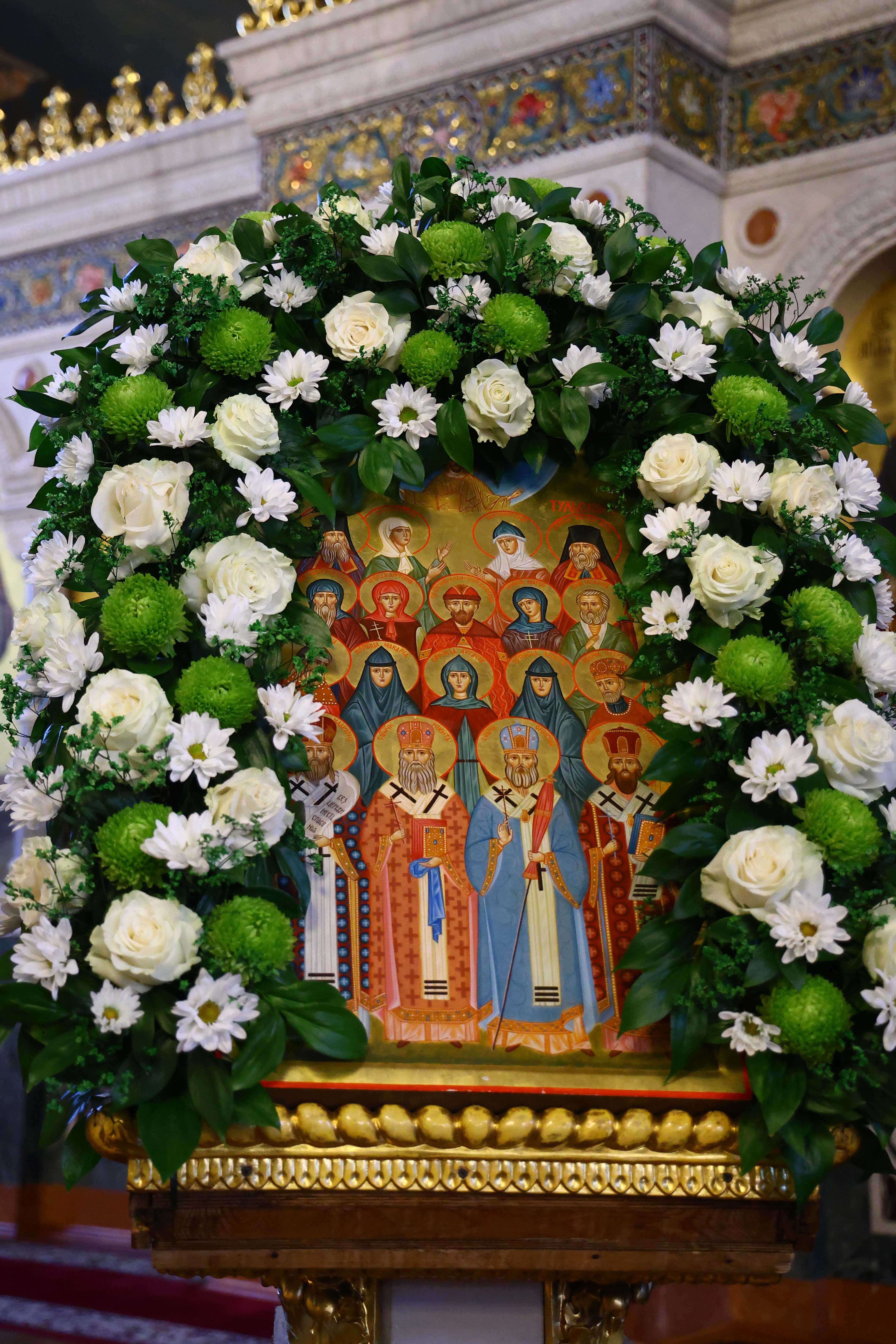 На мирной и сугубой ектениях были вознесены молитвенные прошения о Российском воинстве и о мире. В завершение богослужения состоялся праздничный крестный ход. После отпуста Литургии архипастыри и духовенство совершили славление всем святым, в земле Тульской просиявшим. Митрополит Алексий поздравил Преосвященных владык, духовенство и мирян с праздником и обратился с архипастырским словом.