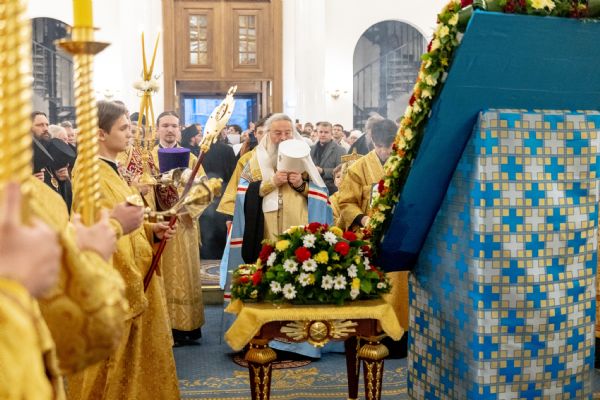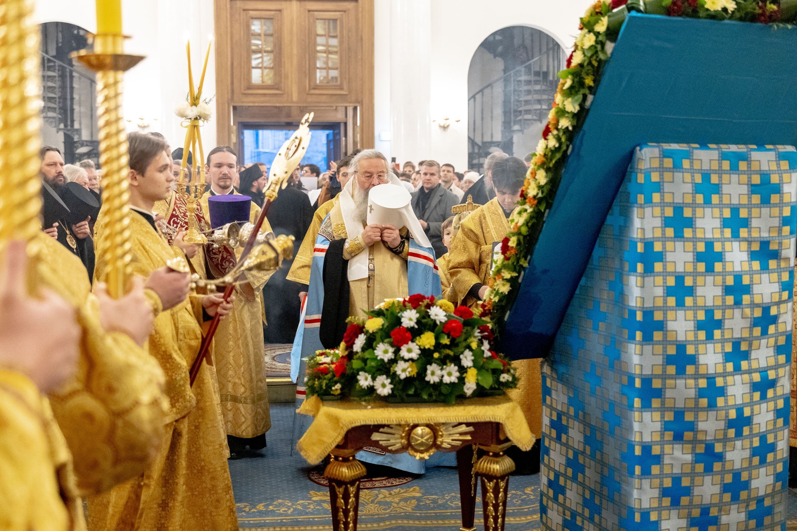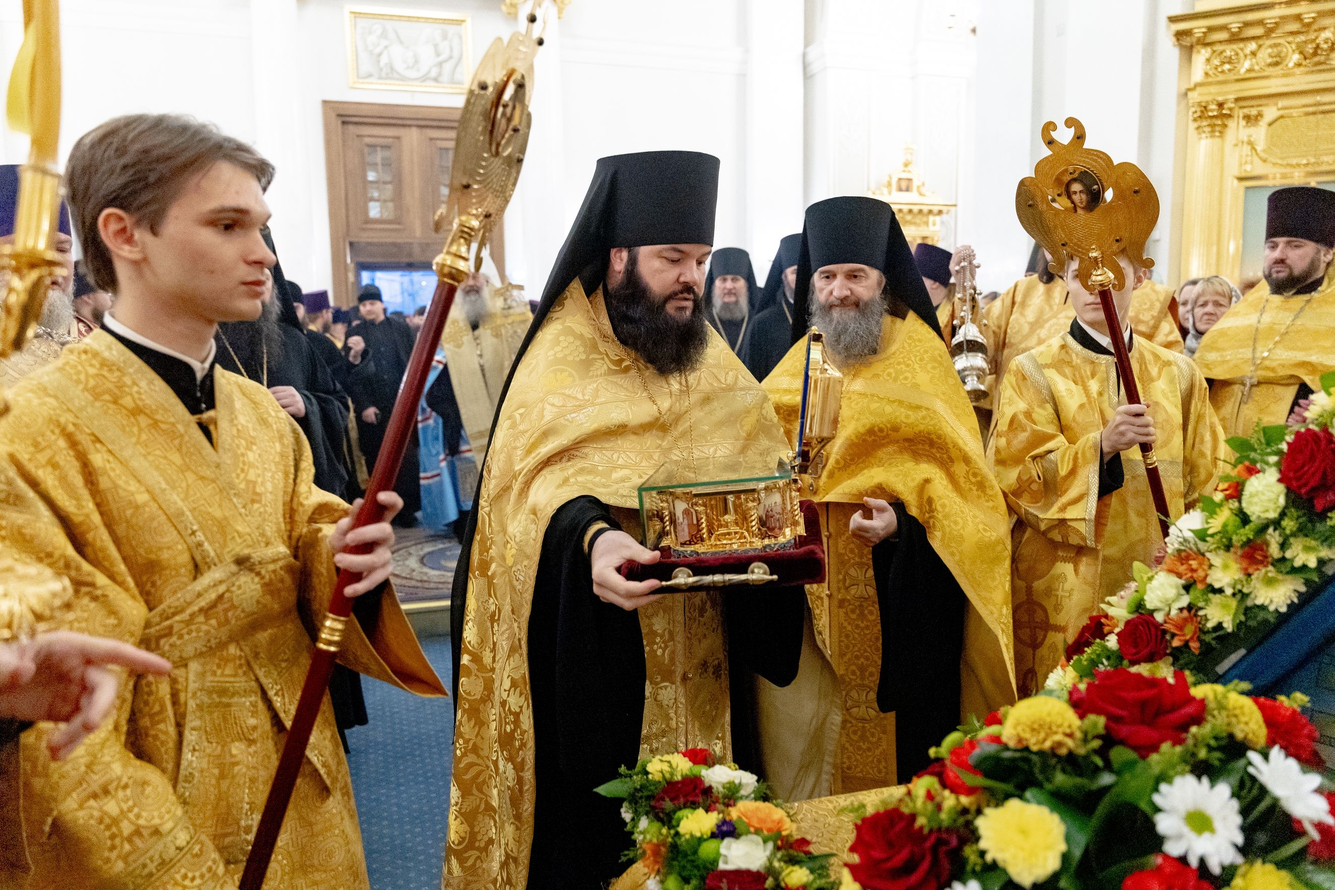 Под пение тропаря святому ковчег внесли в кафедральный собор. Архипастыри совершили славление святителю Луке.