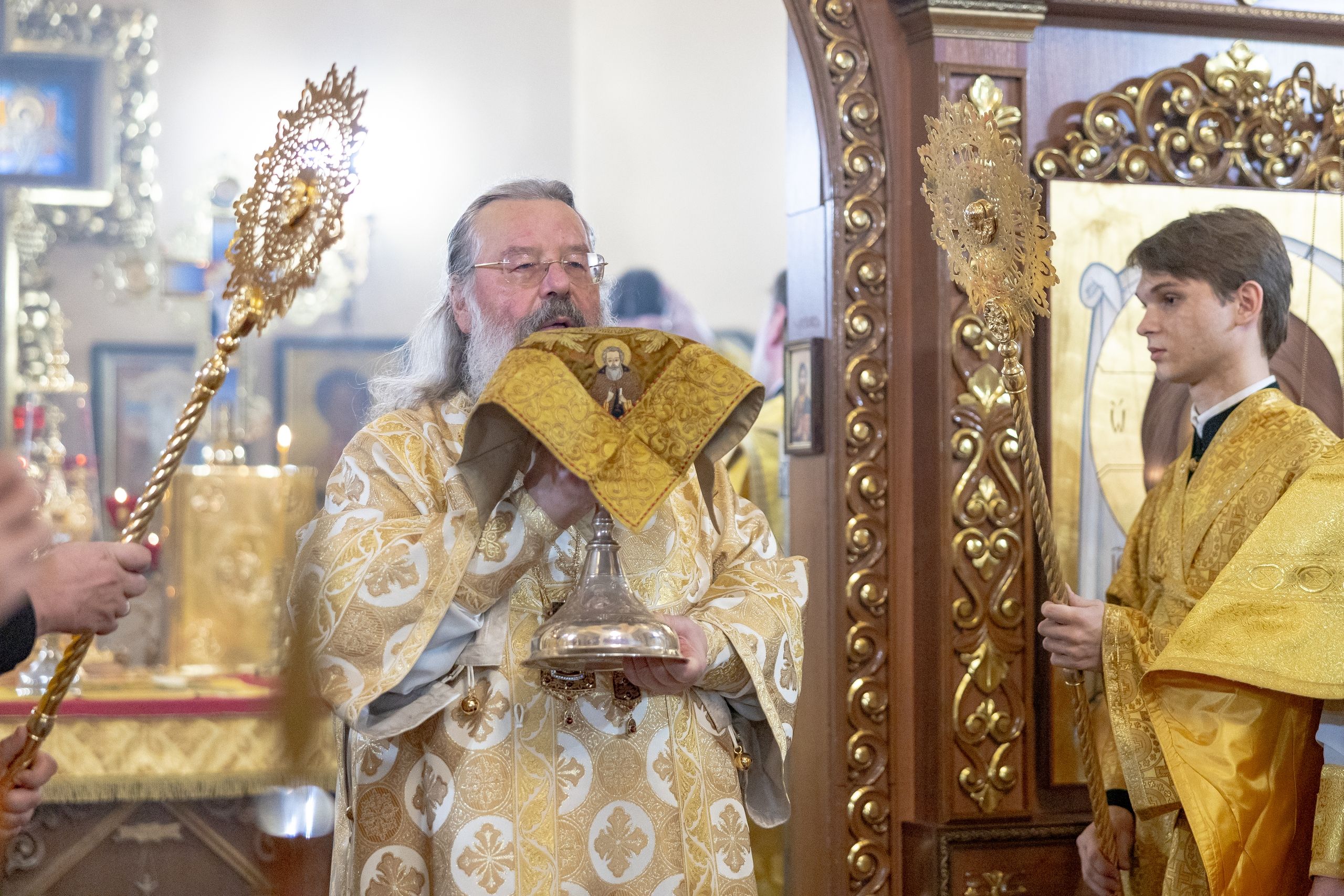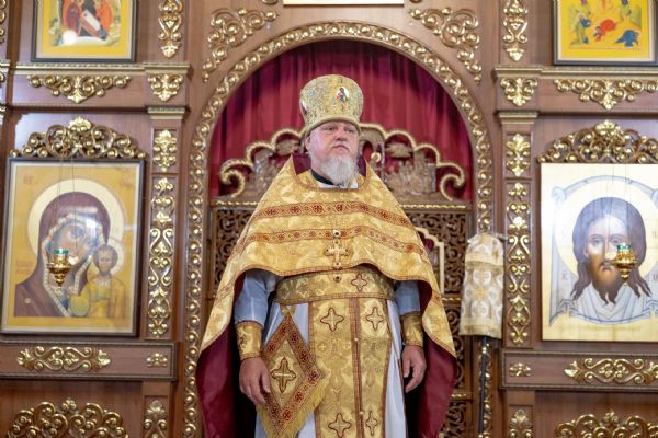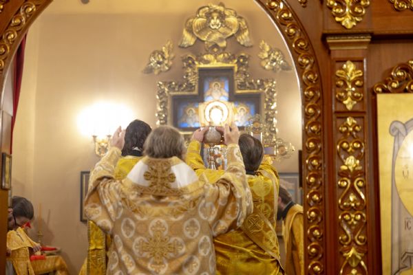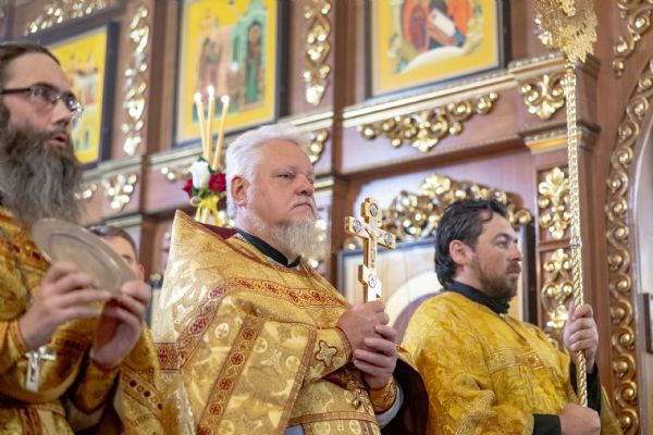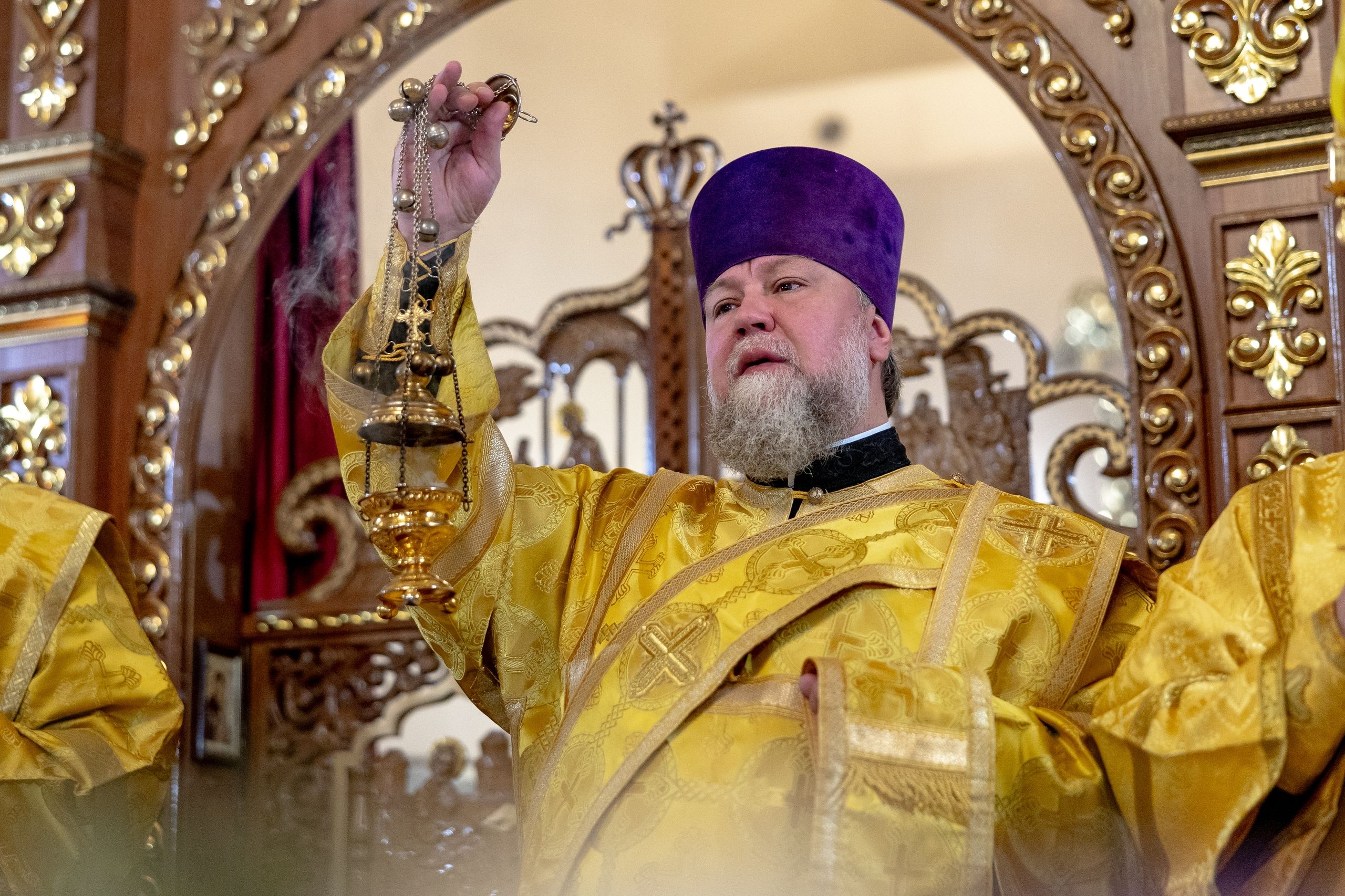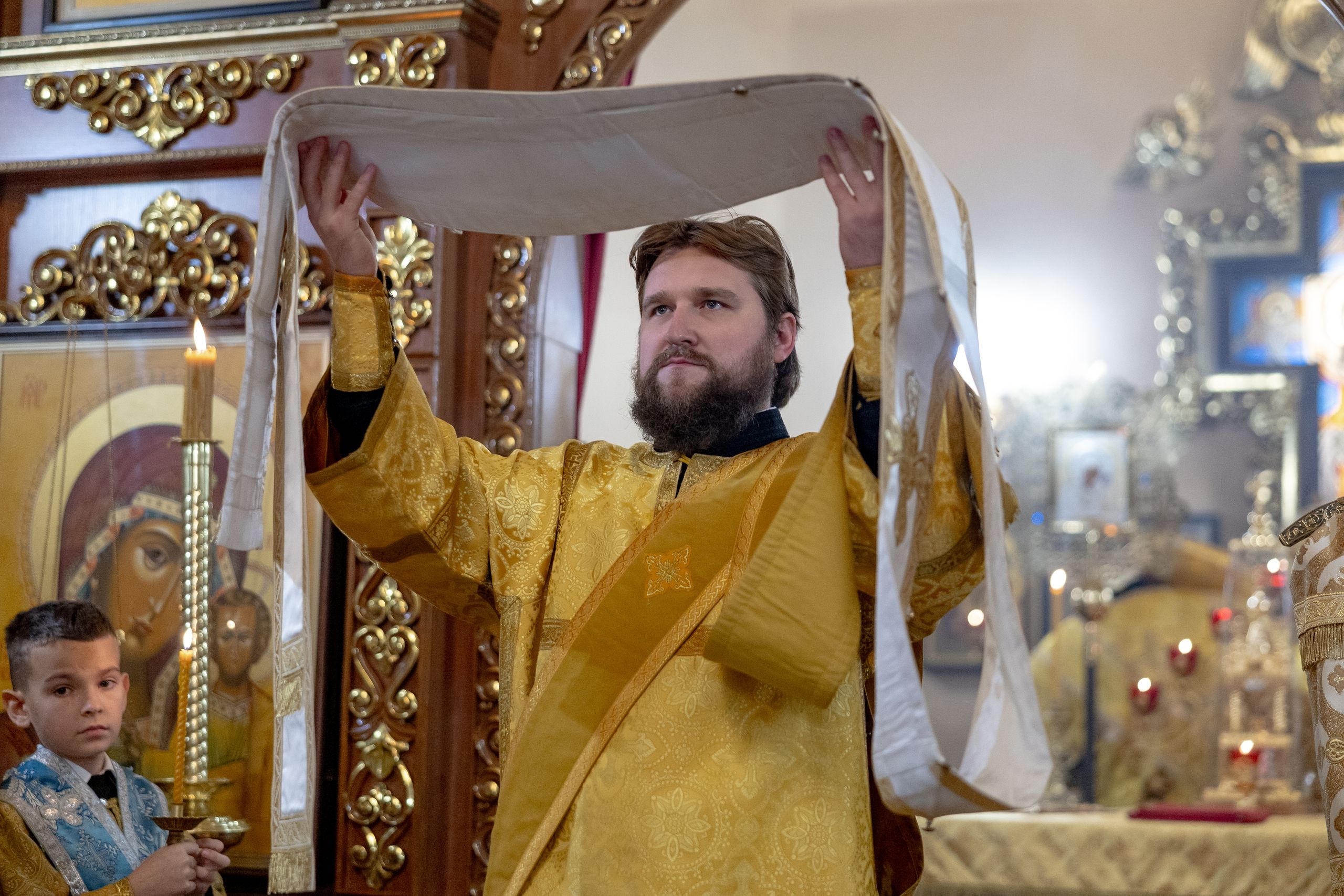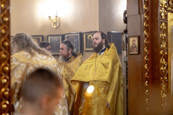 На мирной и сугубой ектениях были вознесены молитвы о Российском воинстве и о мире. По запричастном стихе проповедь произнёс протоиерей Владимир Самойленко.