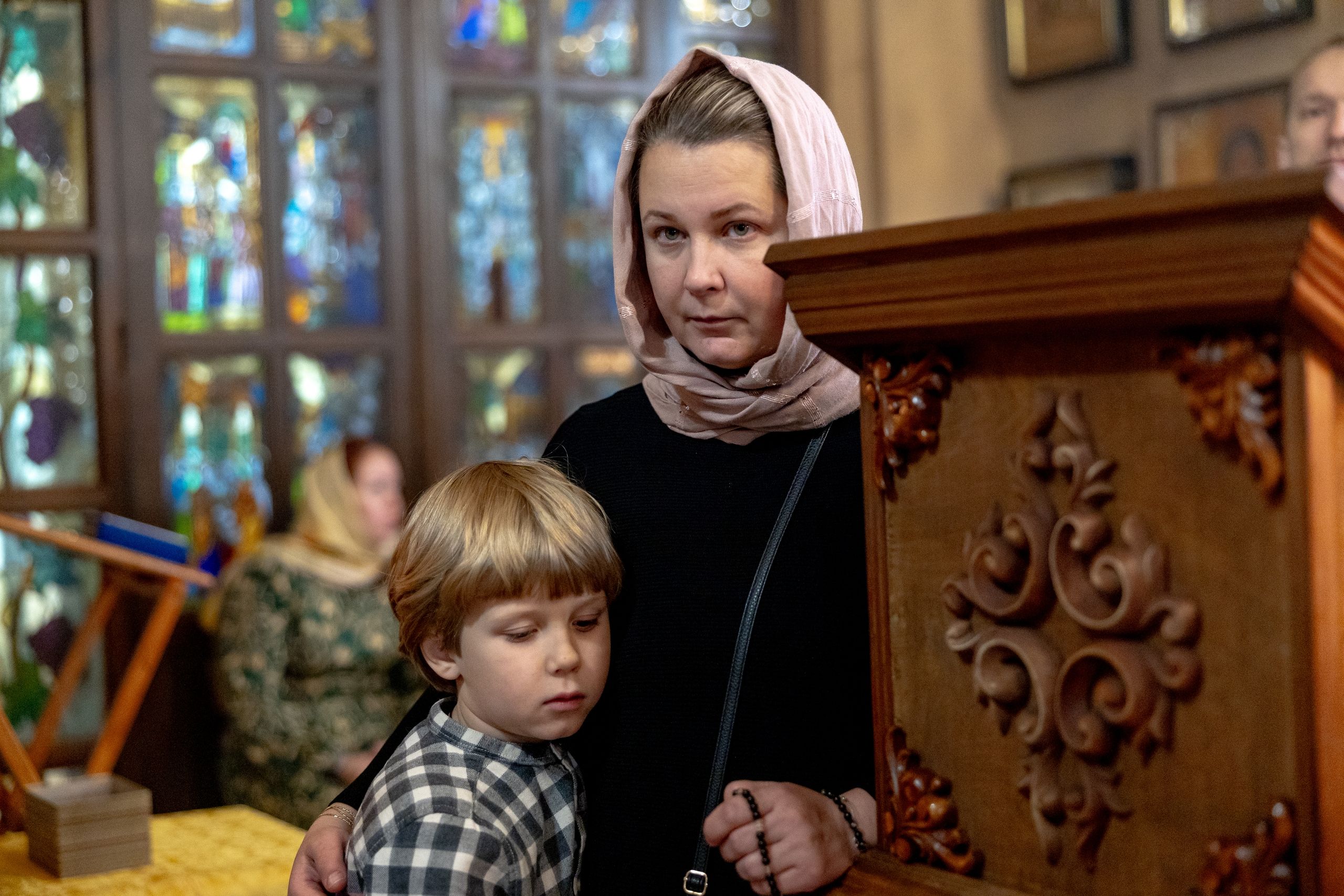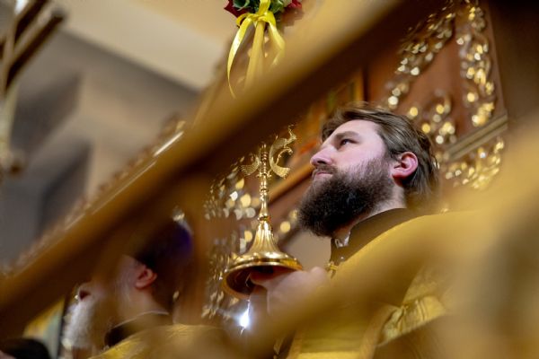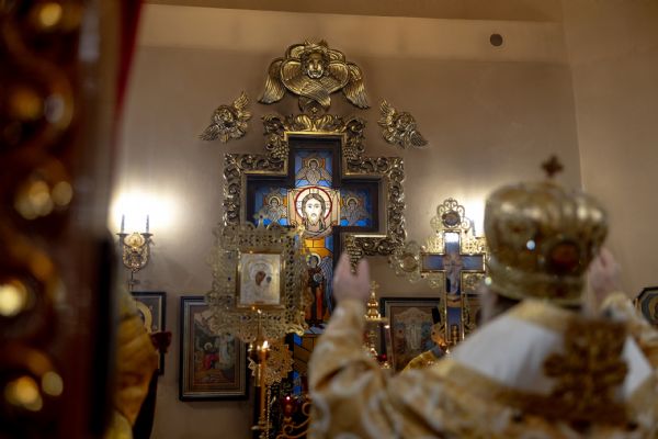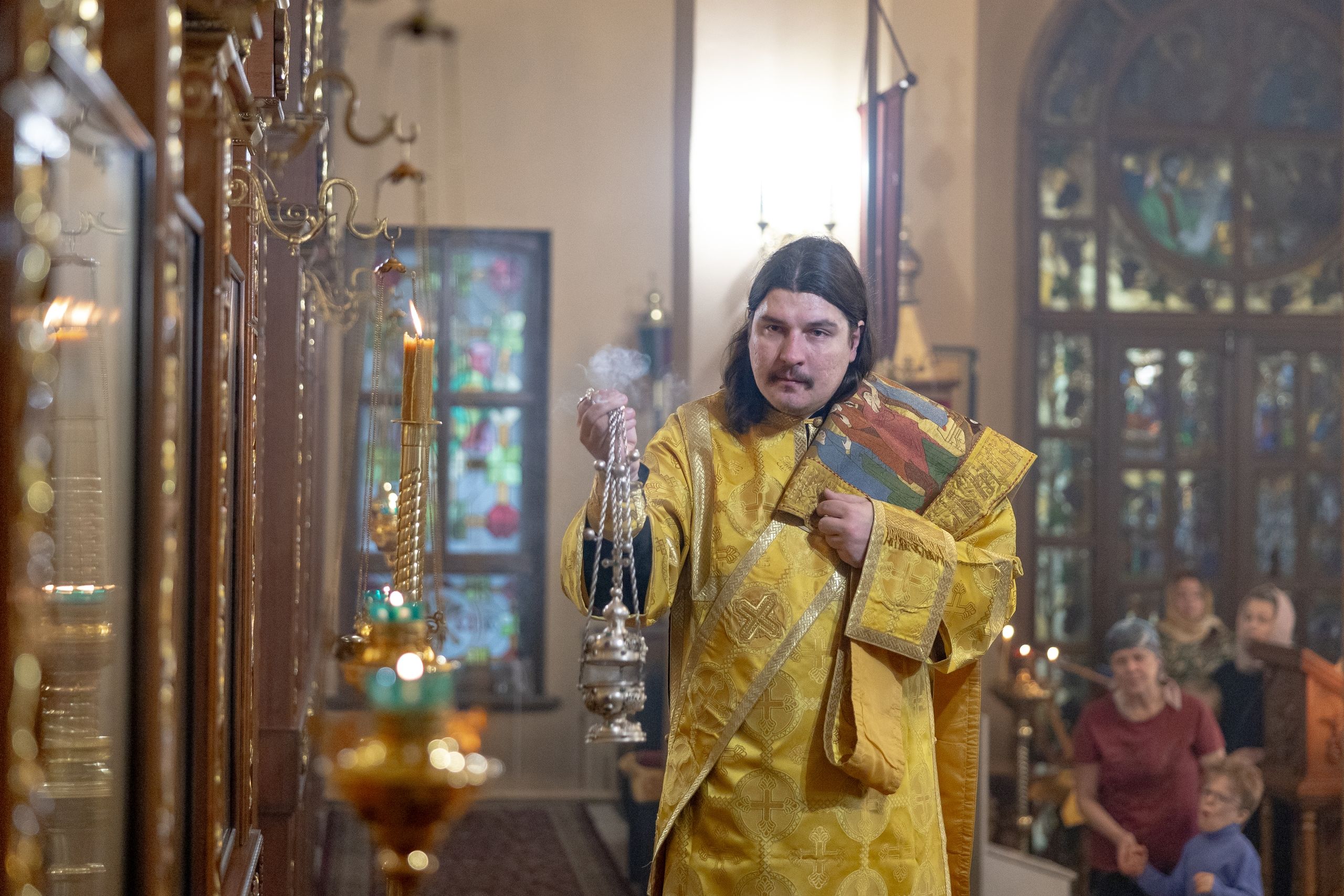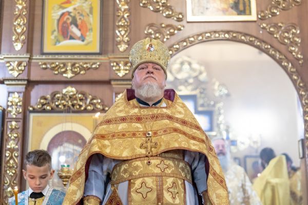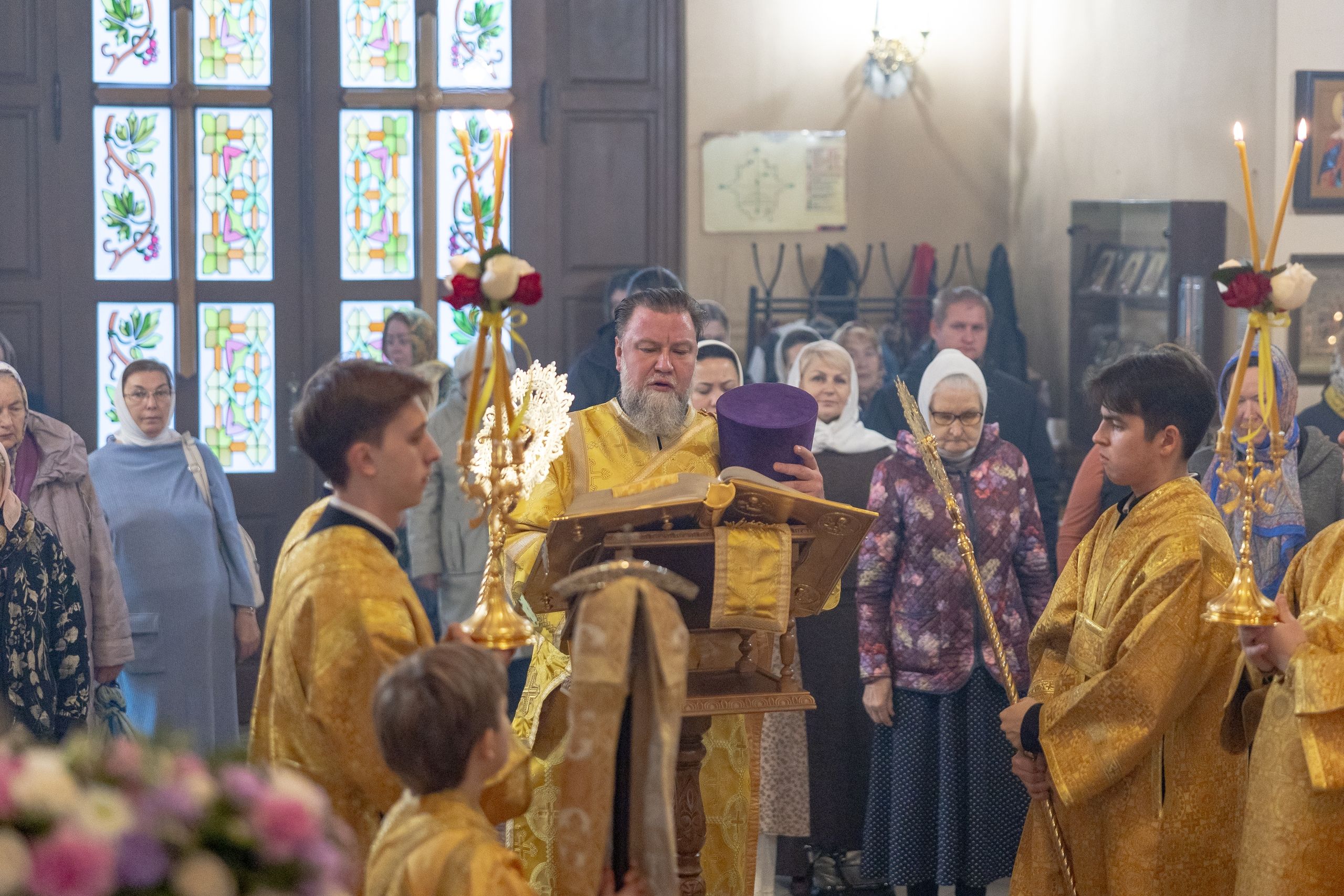 На мирной и сугубой ектениях были вознесены молитвы о Российском воинстве и о мире. По запричастном стихе проповедь произнёс протоиерей Владимир Самойленко.