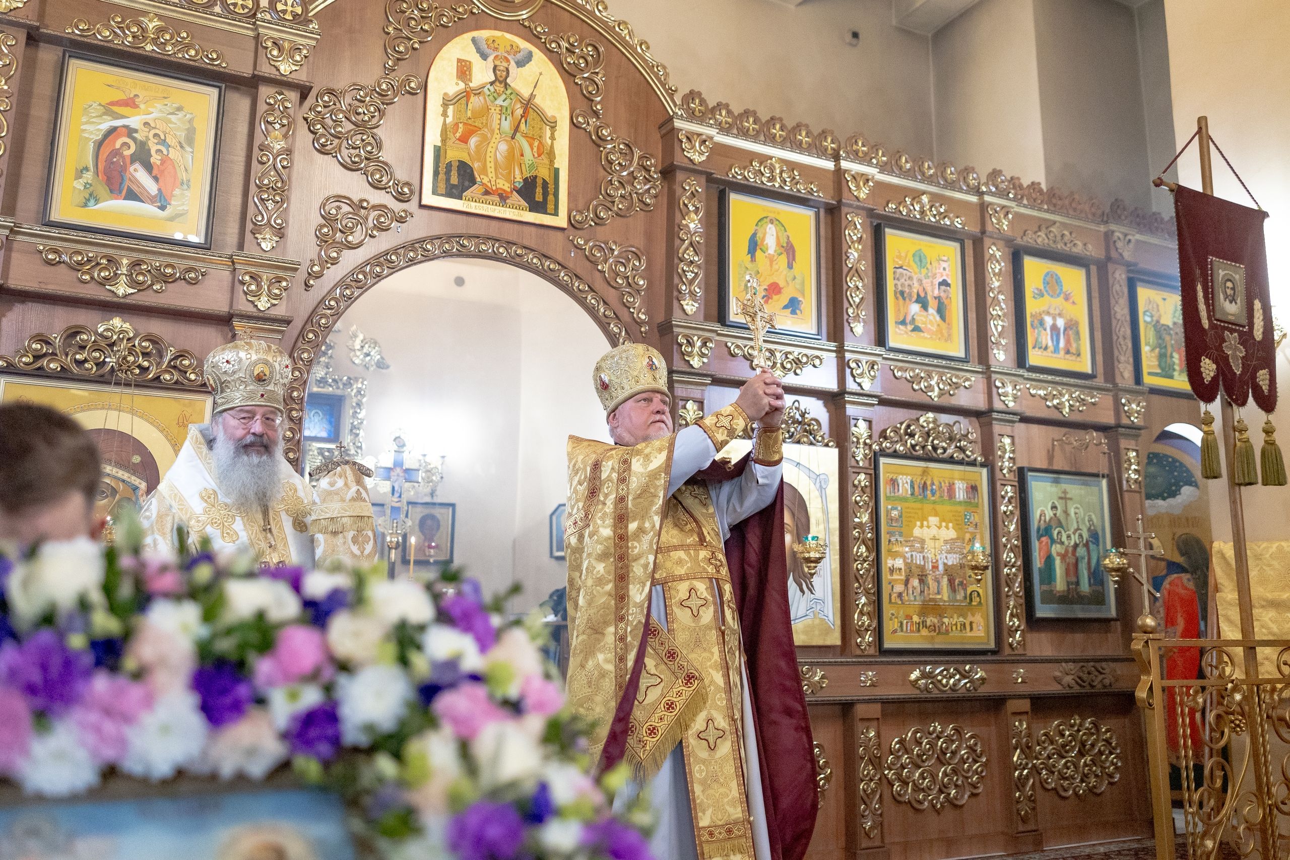 В завершение духовенство и верующие пропели величание небесным покровителям прихода.