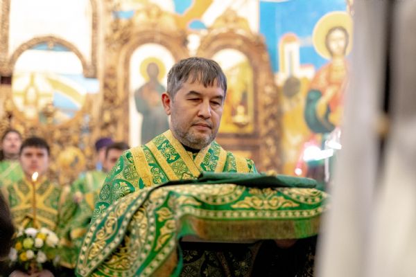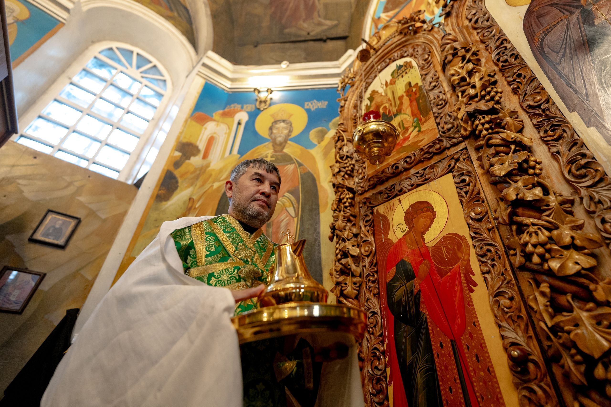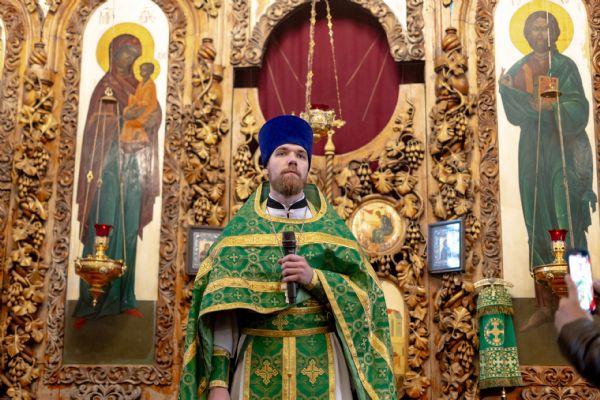 На мирной и сугубой ектениях были вознесены молитвы о Российском воинстве и о мире. Проповедь по запричастном стихе произнёс настоятель Петропавловского храма села Шильнебаш иерей Александр Миронов.