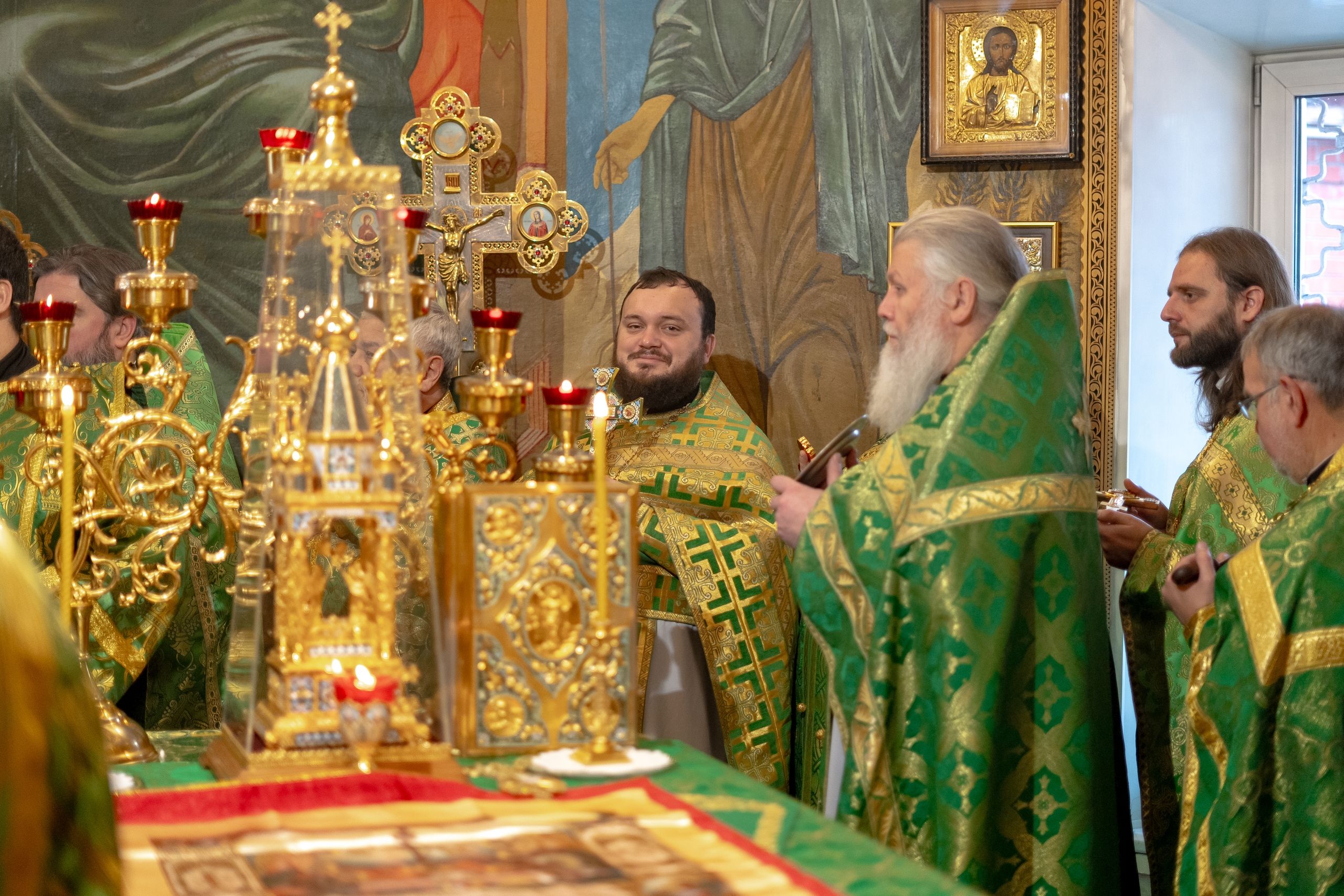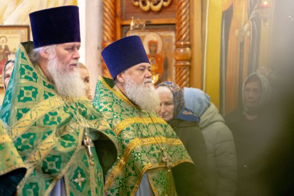 Архипастырям сослужили секретарь Татарстанской митрополии иеромонах Кирилл (Корытко), секретарь Набережночелнинской епархии, настоятель храма протоиерей Андрей Лосык, благочинный Закамского церковного округа протоиерей Андрей Дубровин, благочинный Елабужского церковного округа иеромонах Кирилл (Забавнов), духовенство Набережночелнинской епархии.