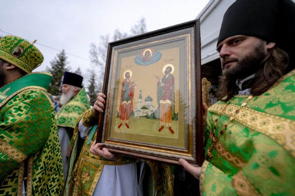 В завершение состоялся крестный ход вокруг храма. По окончании молитвенного шествия было освящено коливо и пропето славление чествуемым ныне угодникам Божиим.