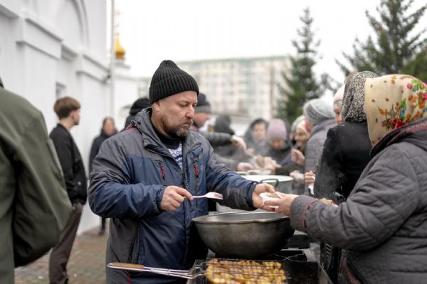 Для участников престольного праздника была организована трапеза на территории прихода.
