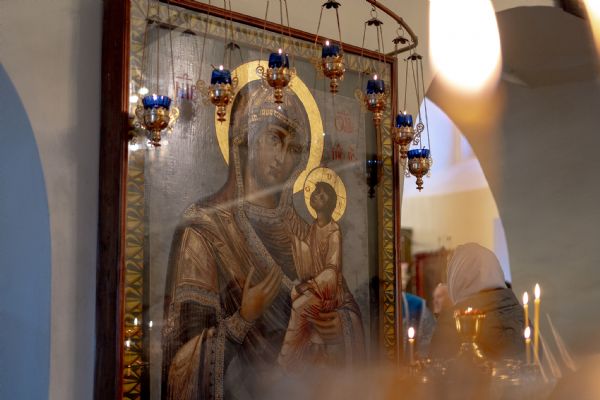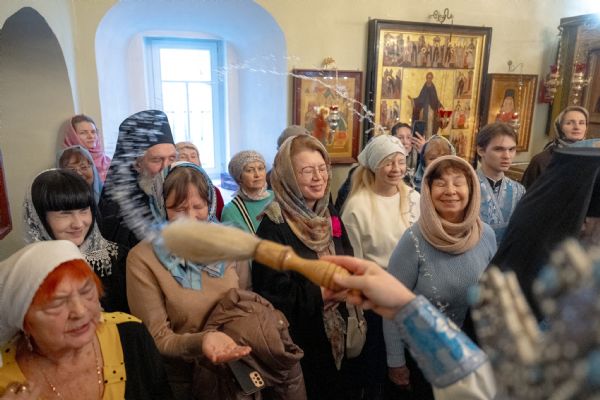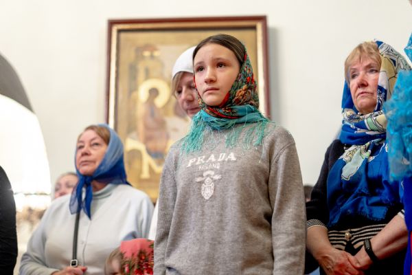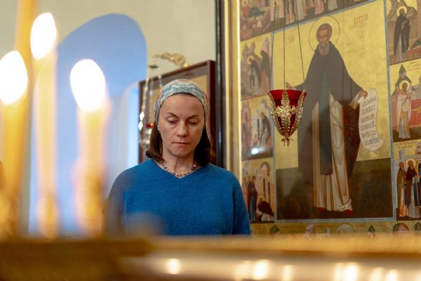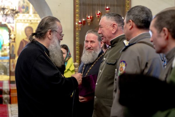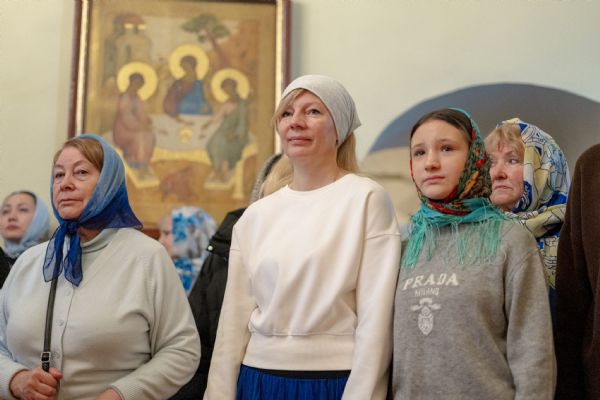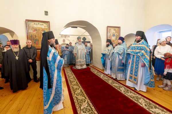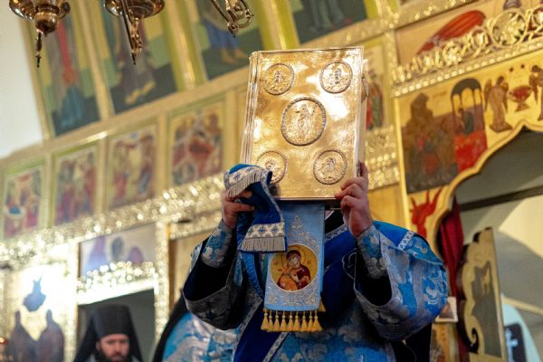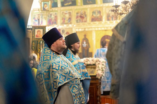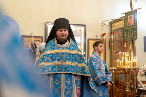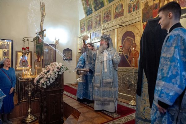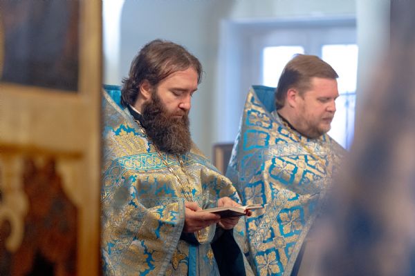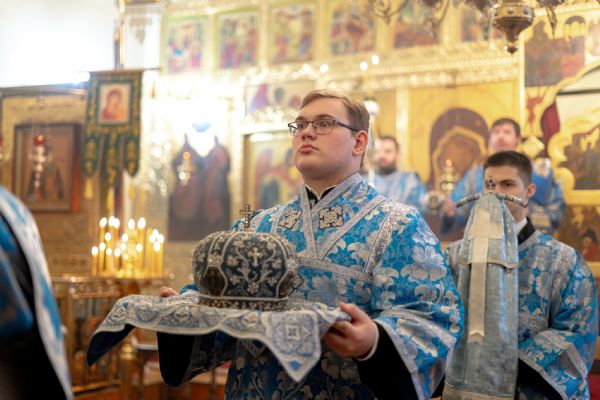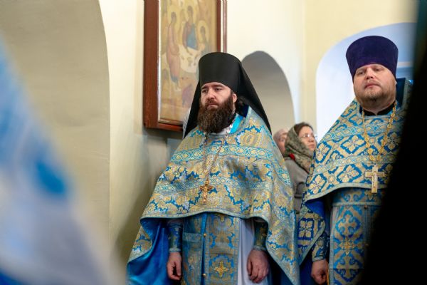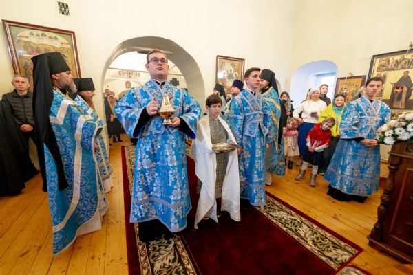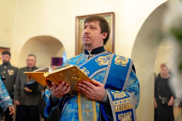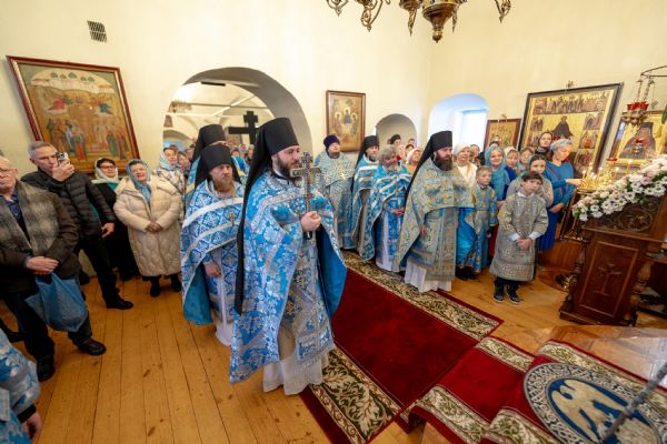 На мирной и сугубой ектениях были вознесены молитвы о Российском воинстве и о мире. По запричастном стихе проповедь произнёс насельник Иоанно-Предтеченской обители иеромонах Платон (Моисеев). В завершение было совершено славление Божией Матери.