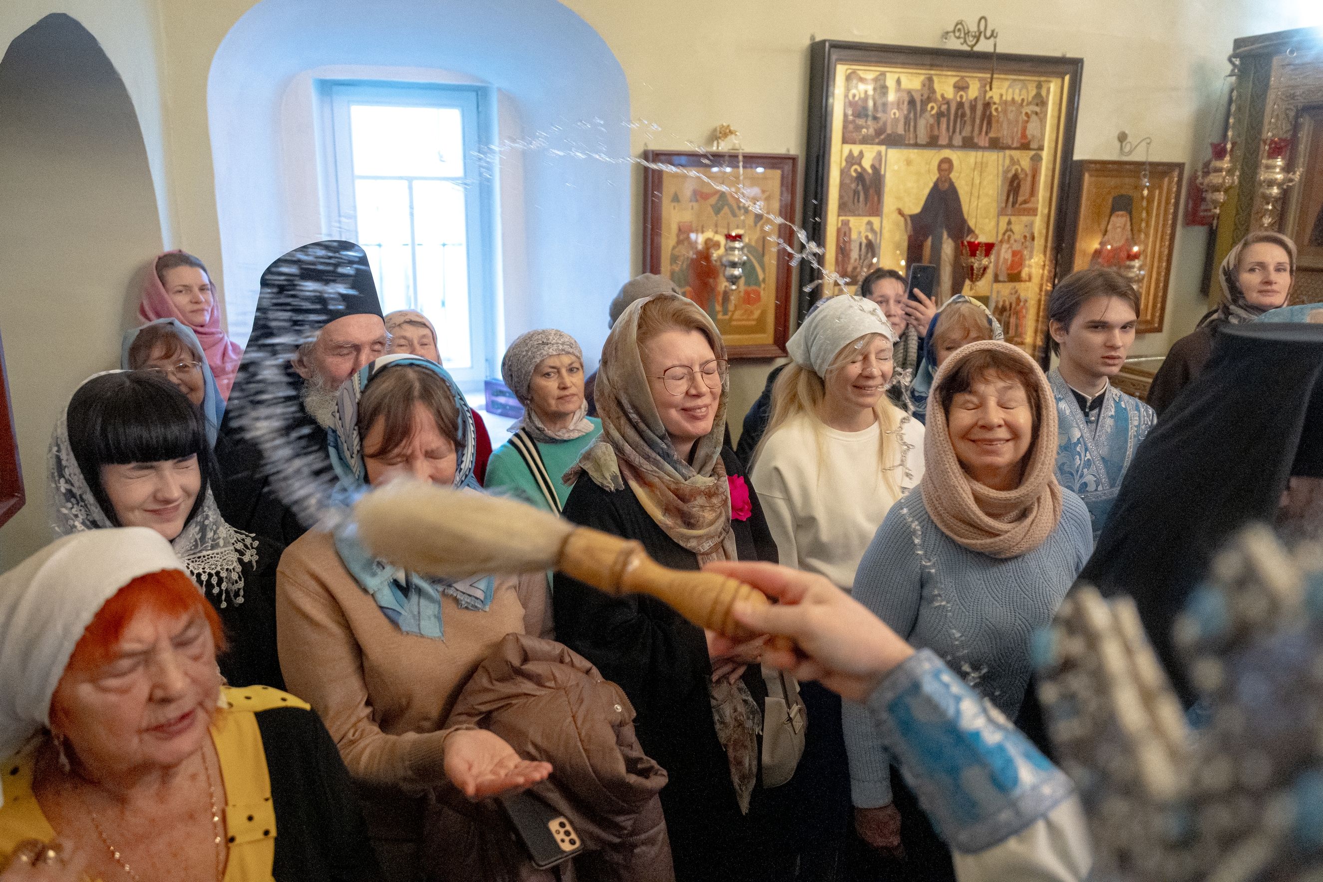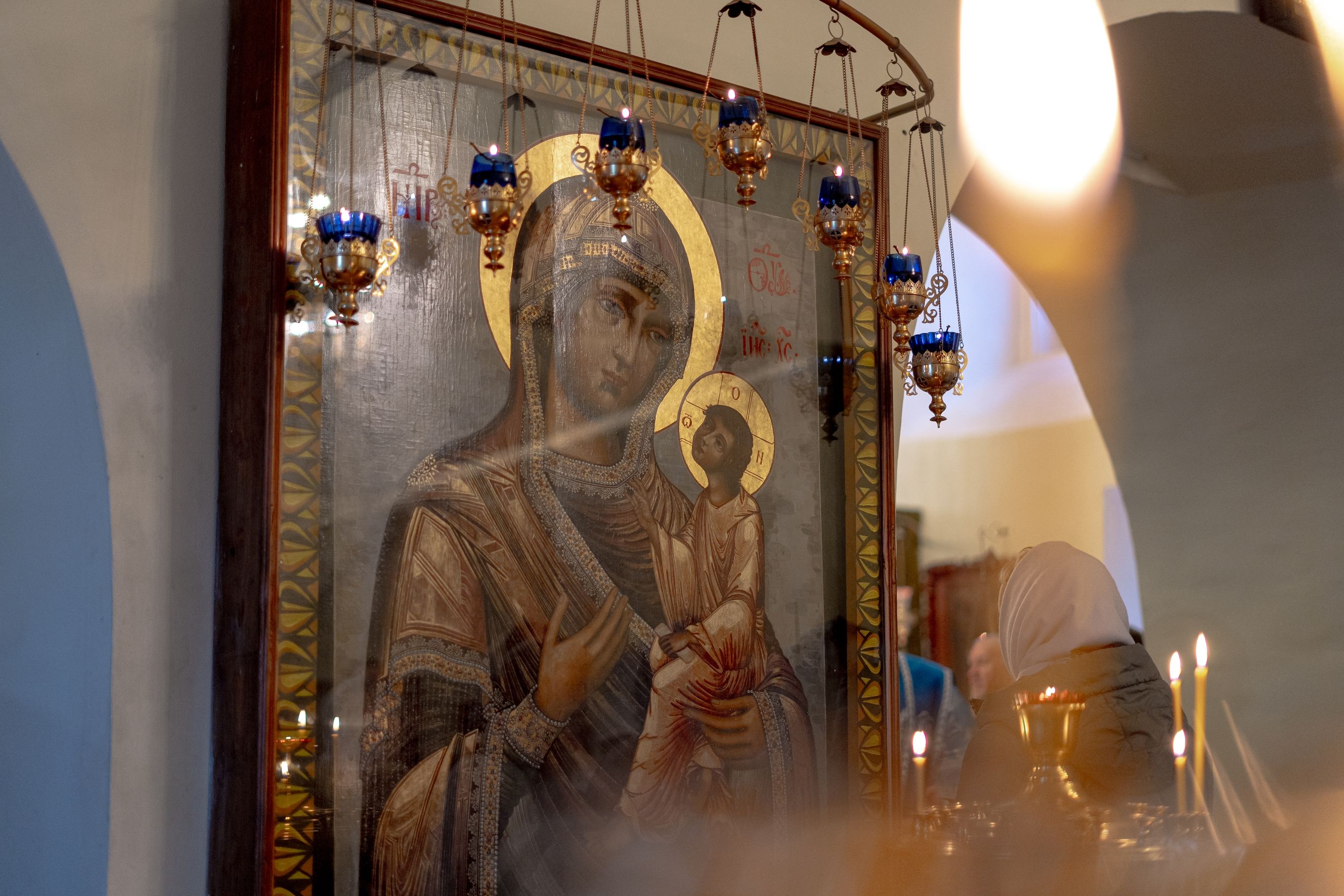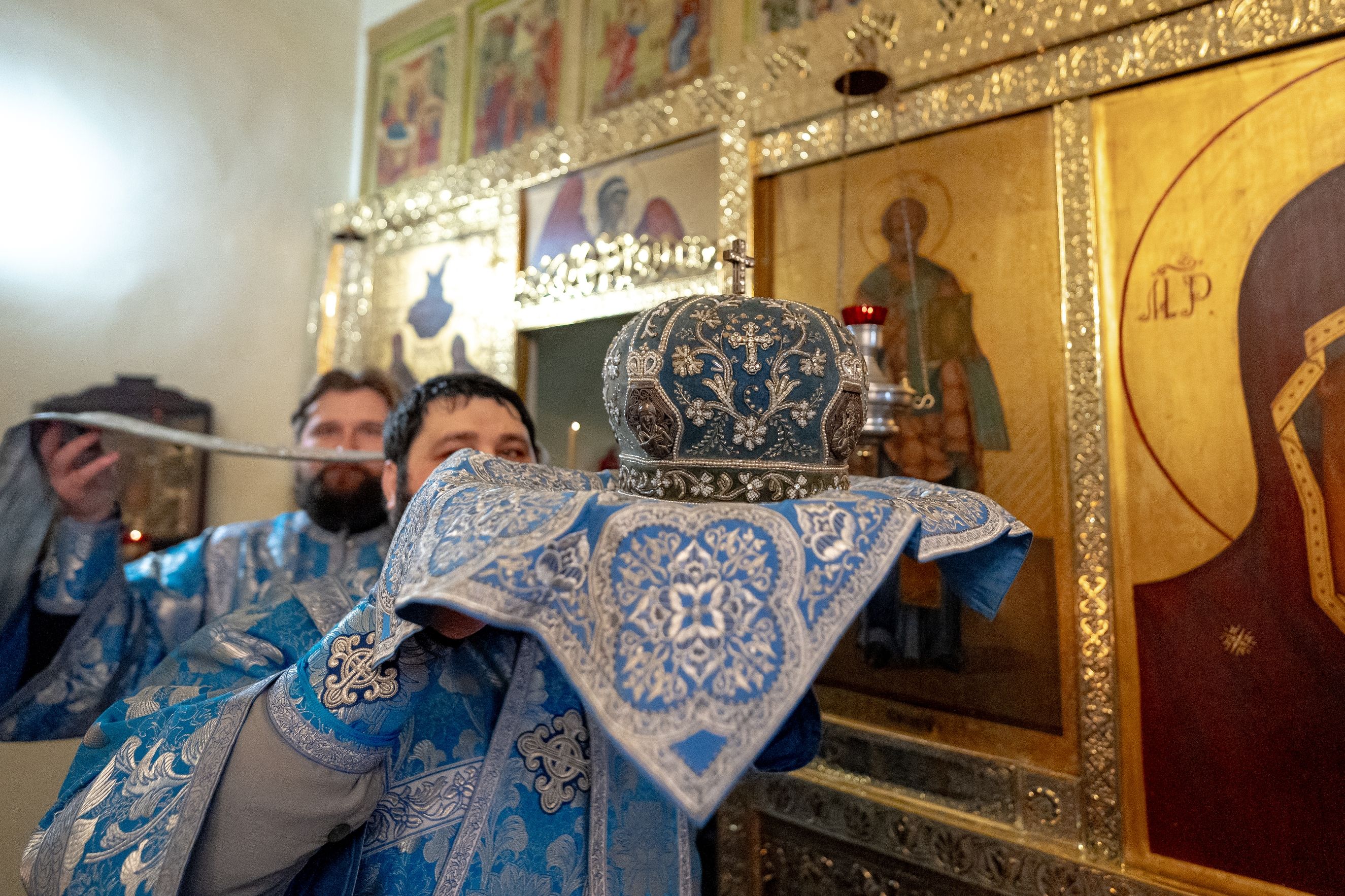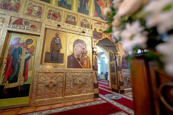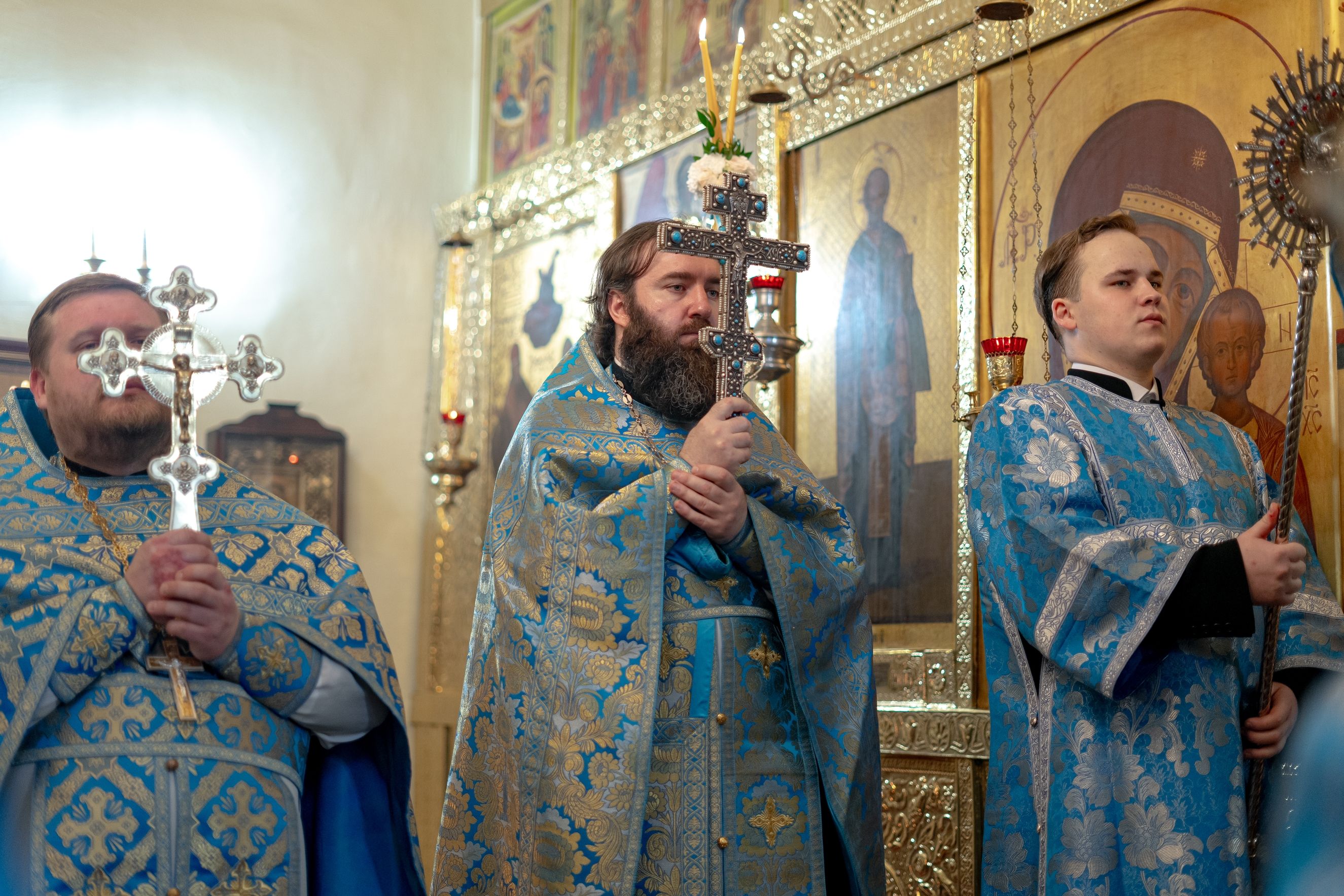 На мирной и сугубой ектениях были вознесены молитвы о Российском воинстве и о мире. По запричастном стихе проповедь произнёс насельник Иоанно-Предтеченской обители иеромонах Платон (Моисеев). В завершение было совершено славление Божией Матери.