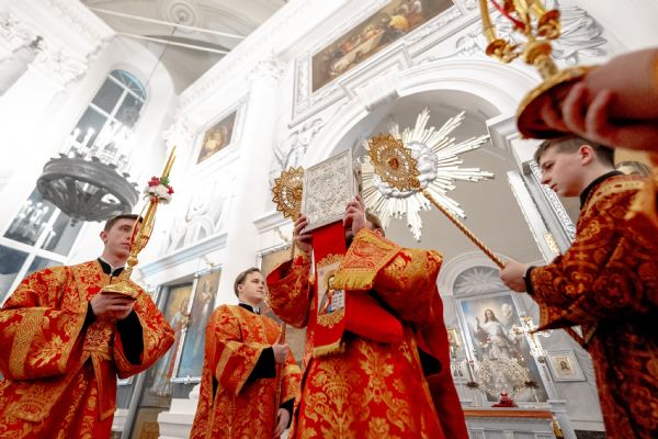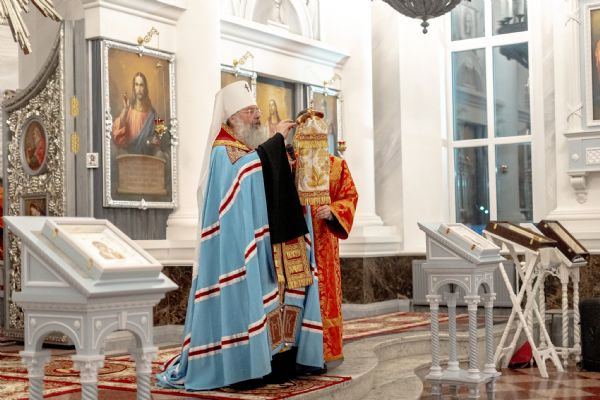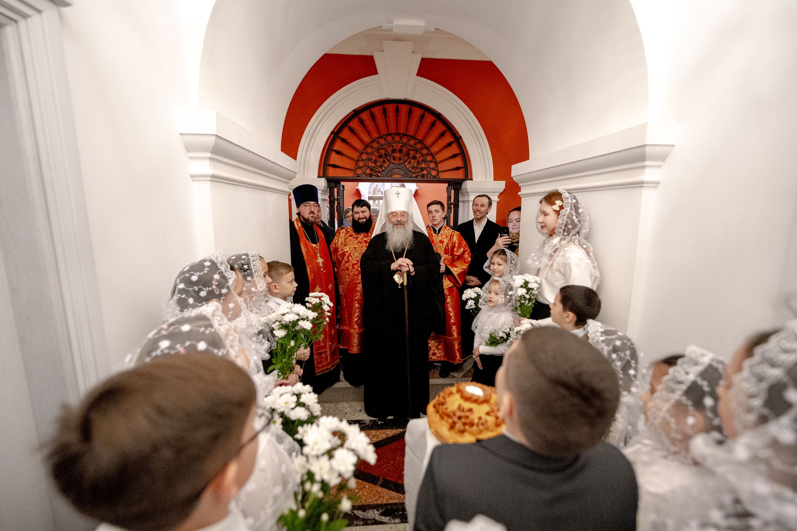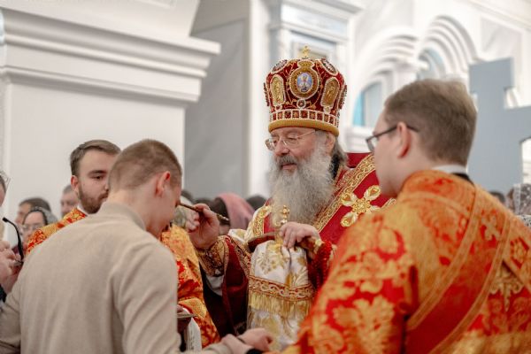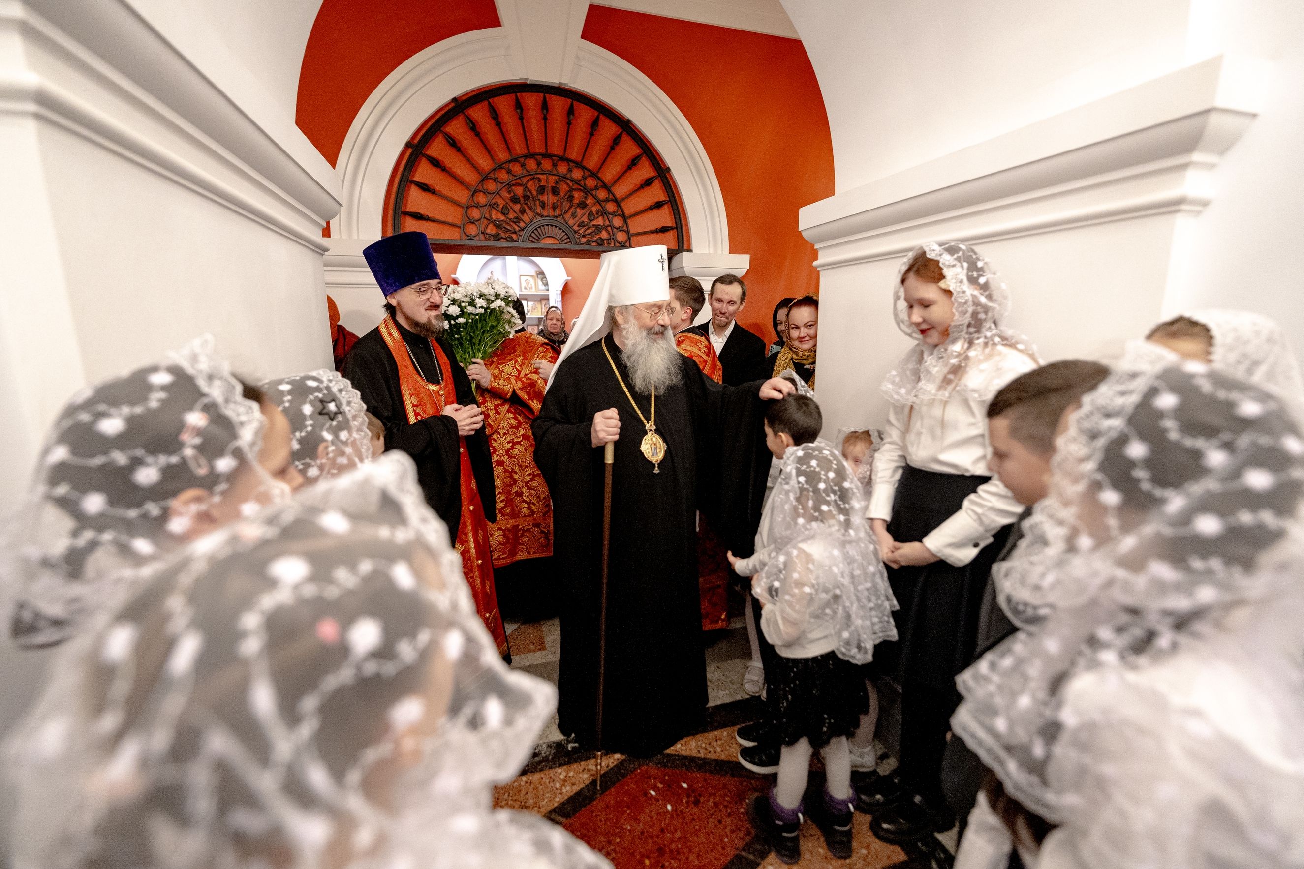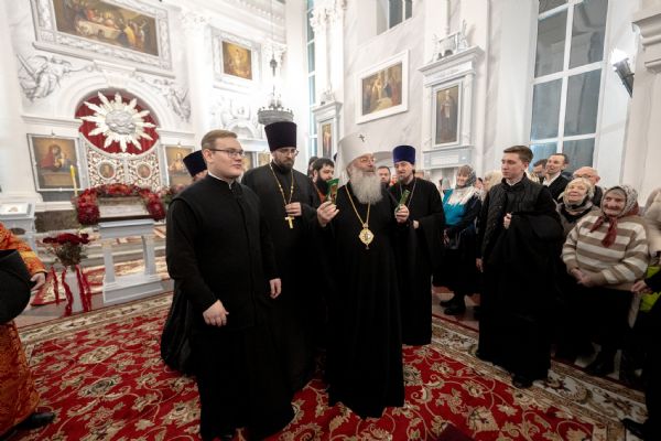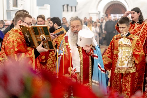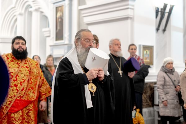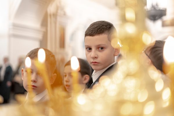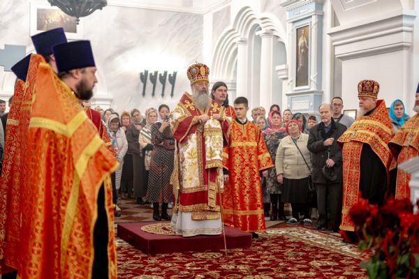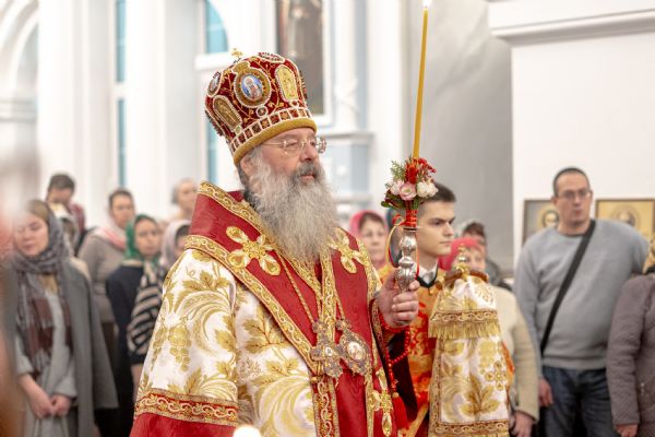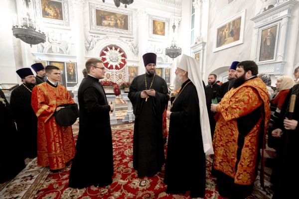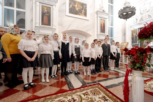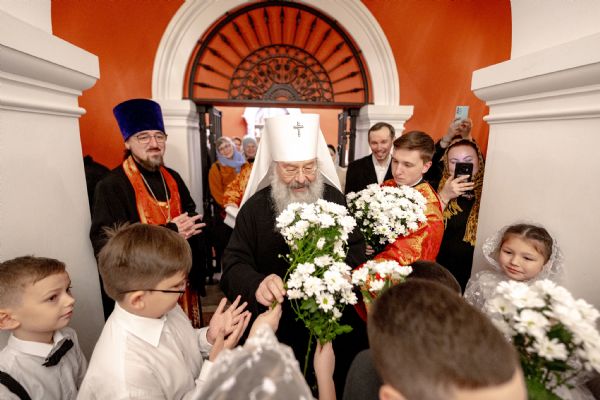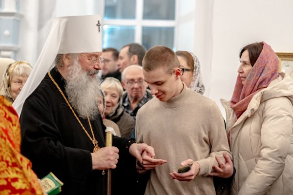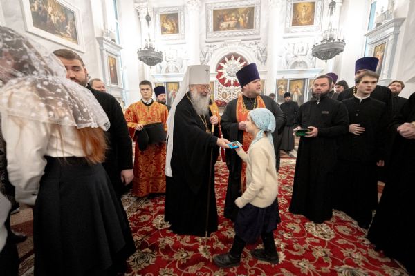 После службы архипастырь преподал верующим благословение. Детям, молившимся за богослужением, священники вручили шоколад.