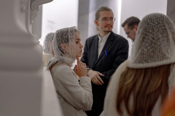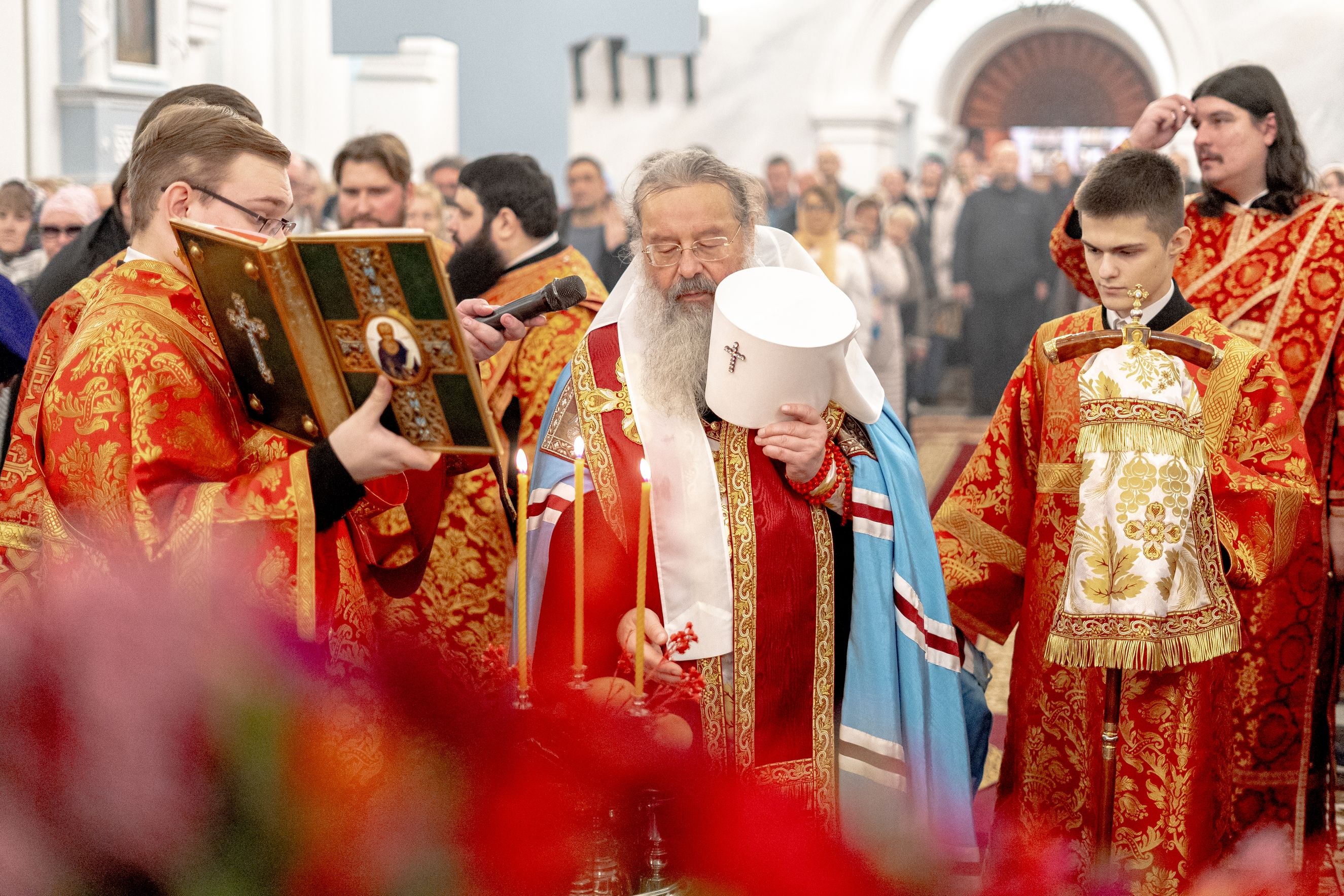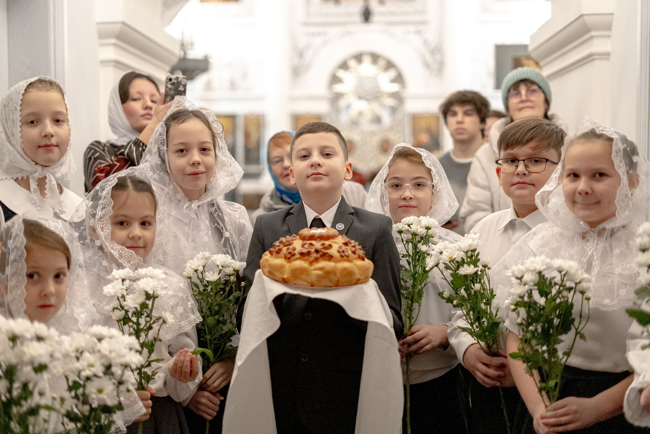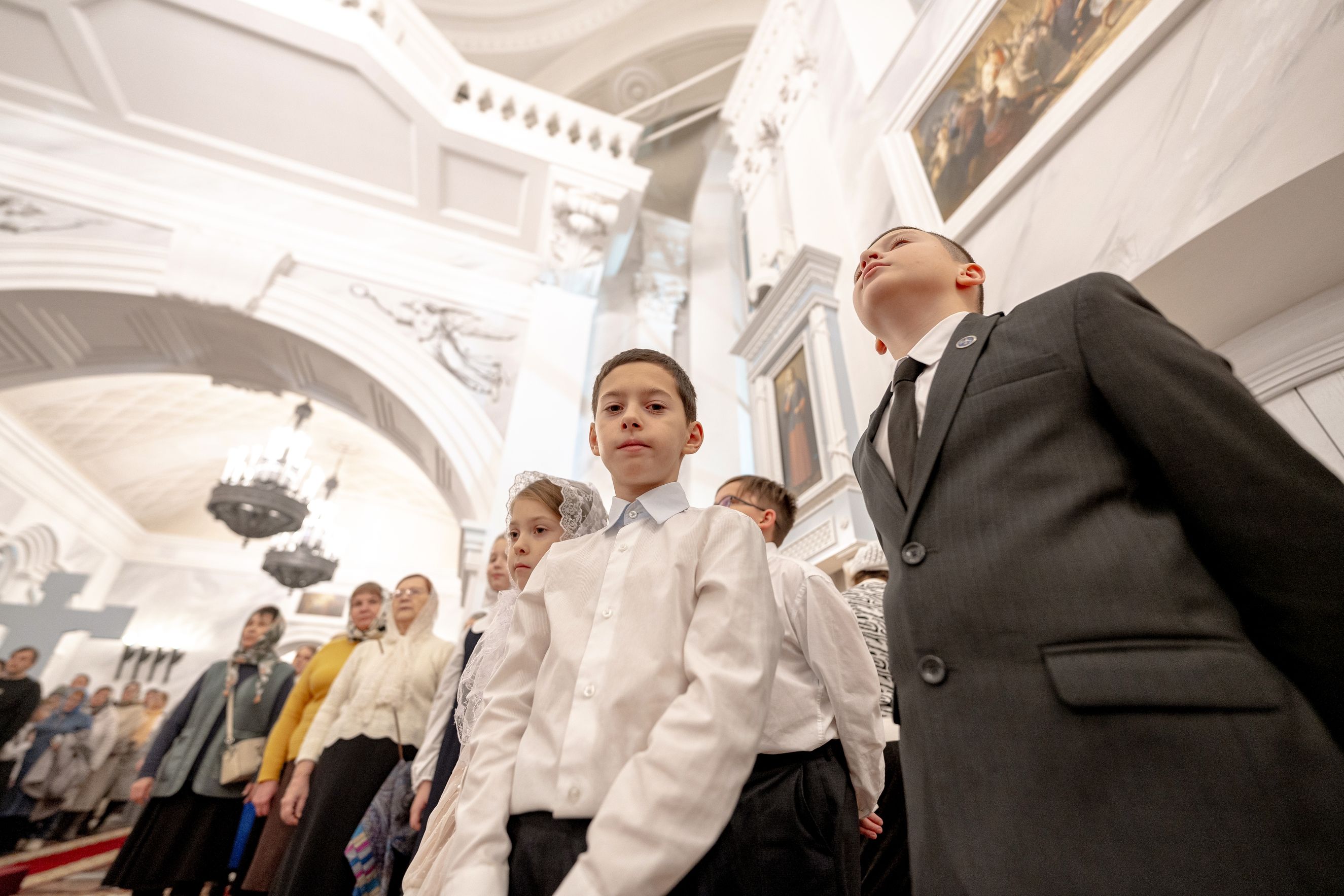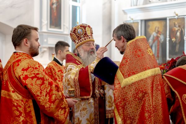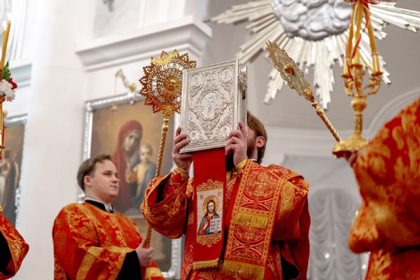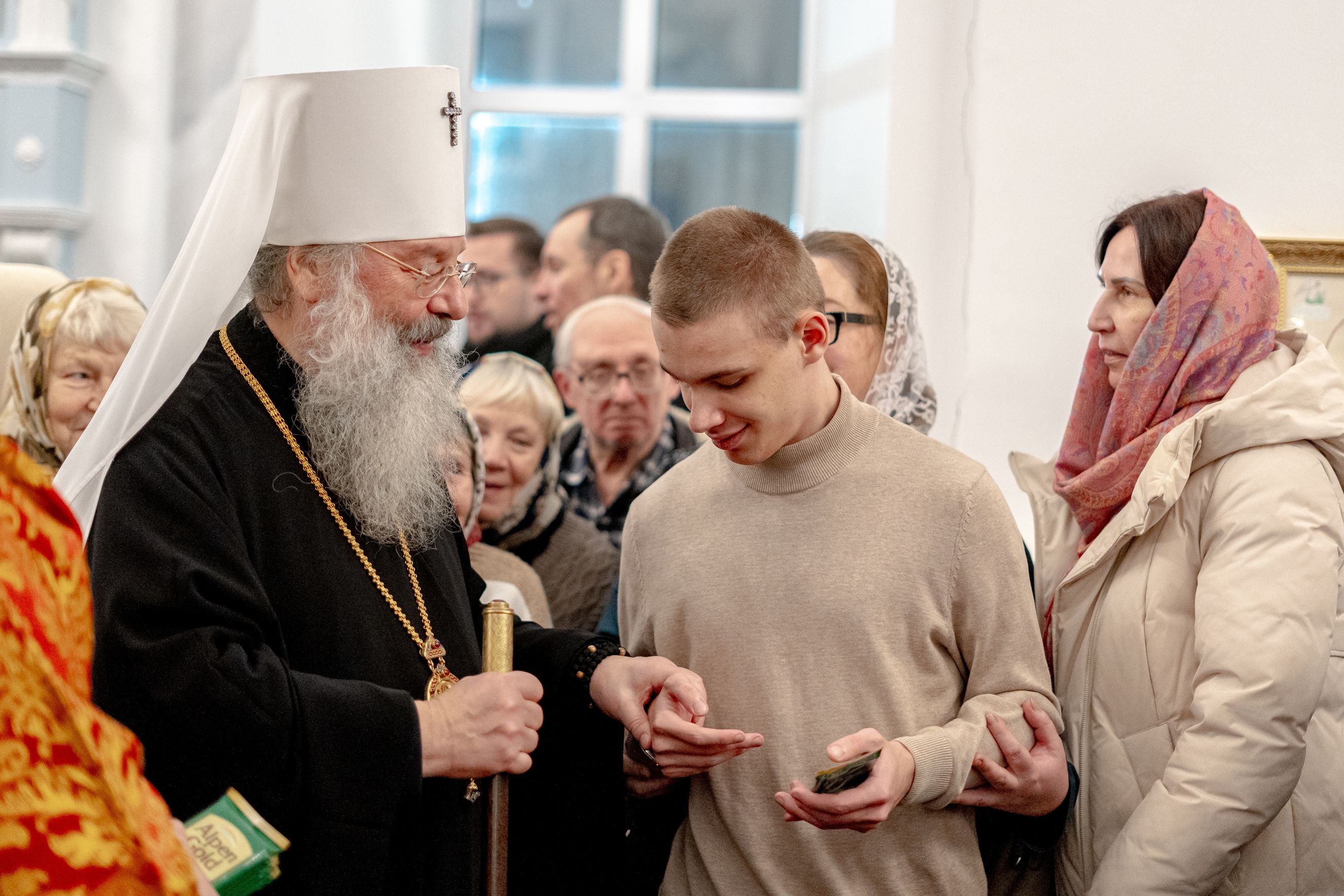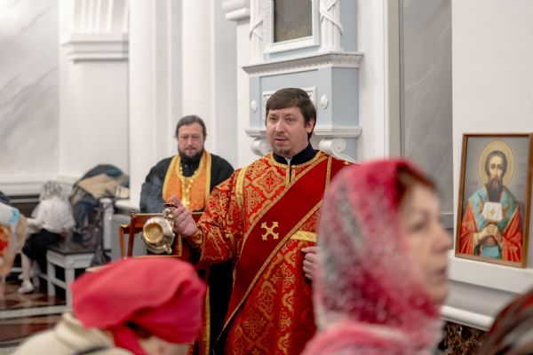 После службы архипастырь преподал верующим благословение. Детям, молившимся за богослужением, священники вручили шоколад.