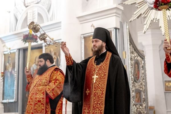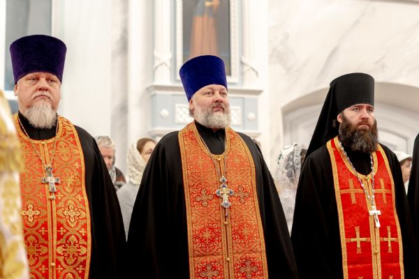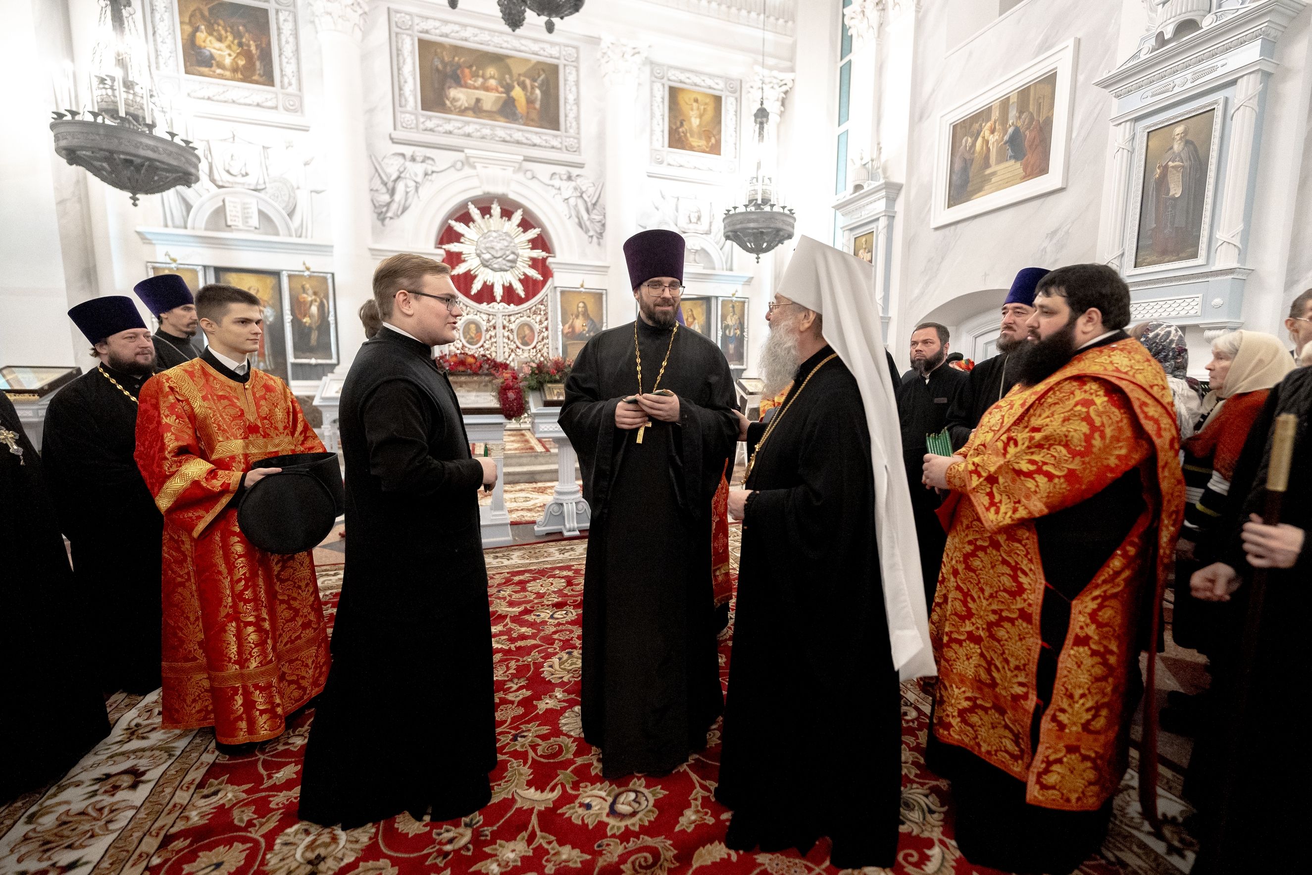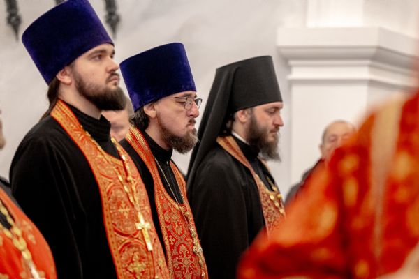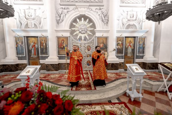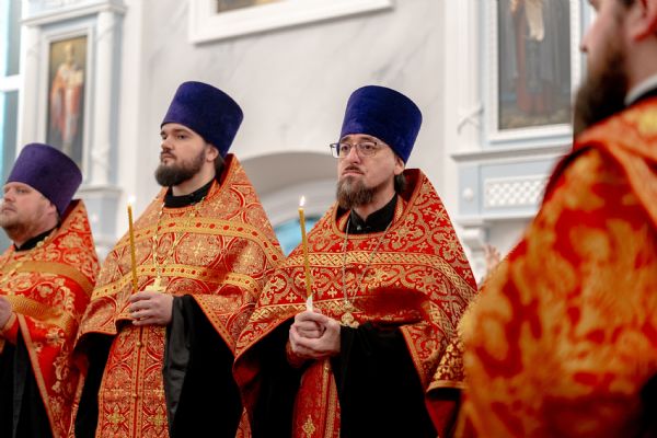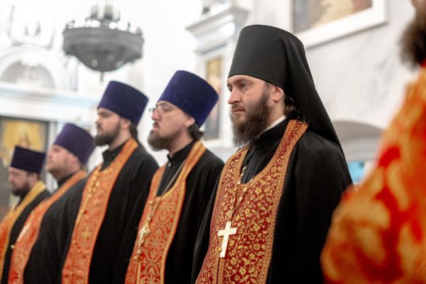 Его Высокопреосвященству сослужили секретарь Татарстанской митрополии иеромонах Кирилл (Корытко), благочинный I Казанского округа протоиерей Владимир Самойленко, настоятель храма протоиерей Владимир Пономарёв, благочинный III Казанского округа протоиерей Алексий Краевский, ректор Казанской духовной семинарии, настоятель храма в честь праведного Иоанна Кронштадтского города Казани иерей Никита Кузнецов, настоятель Иоанно-Предтеченского монастыря города Казани игумен Алексий (Яцейко), настоятель Никольского храма посёлка Константиновка иерей Александр Данилов, клирики прихода.