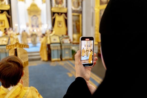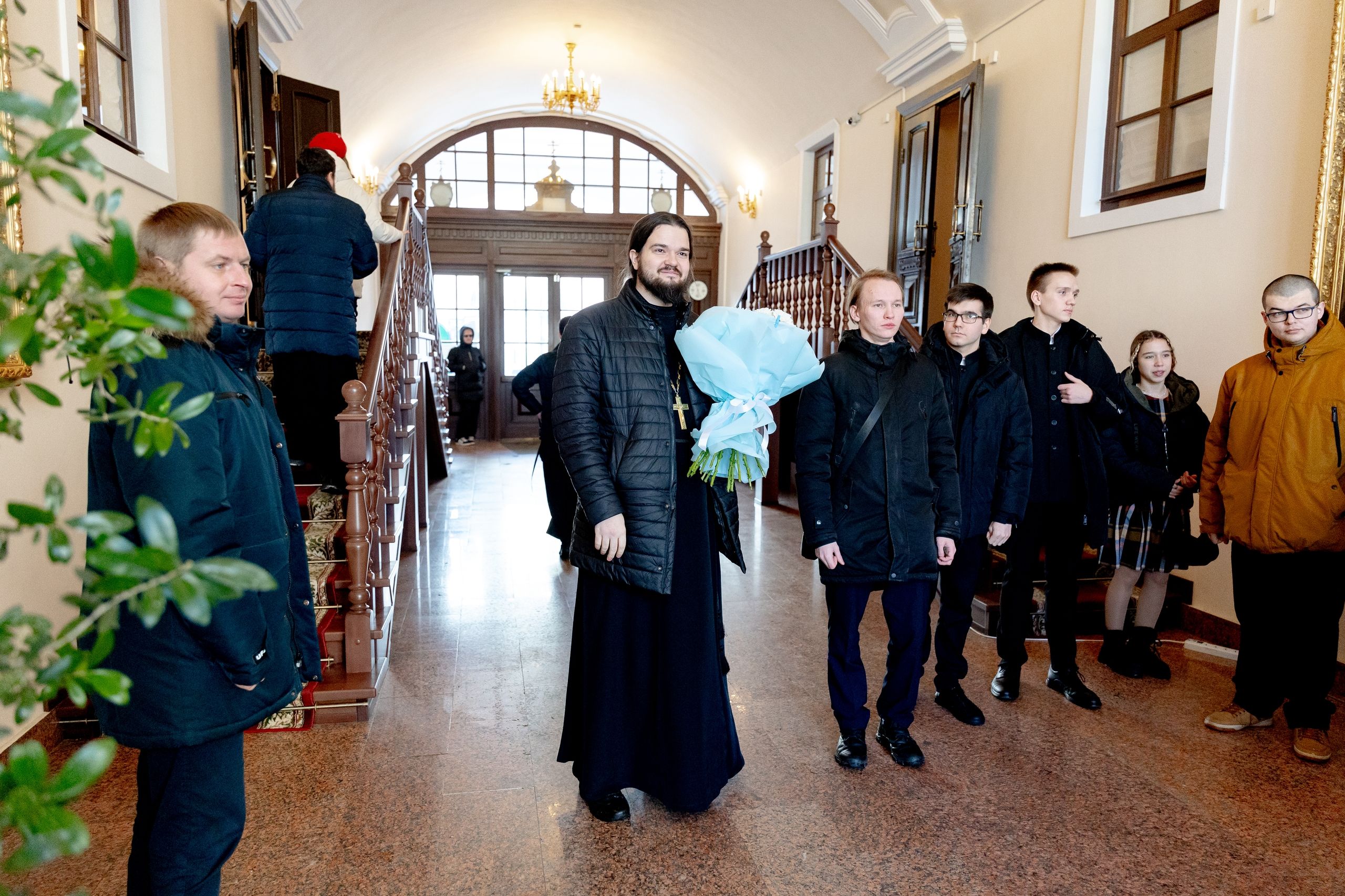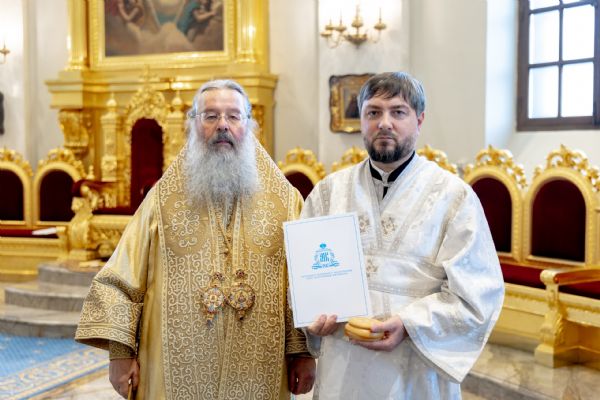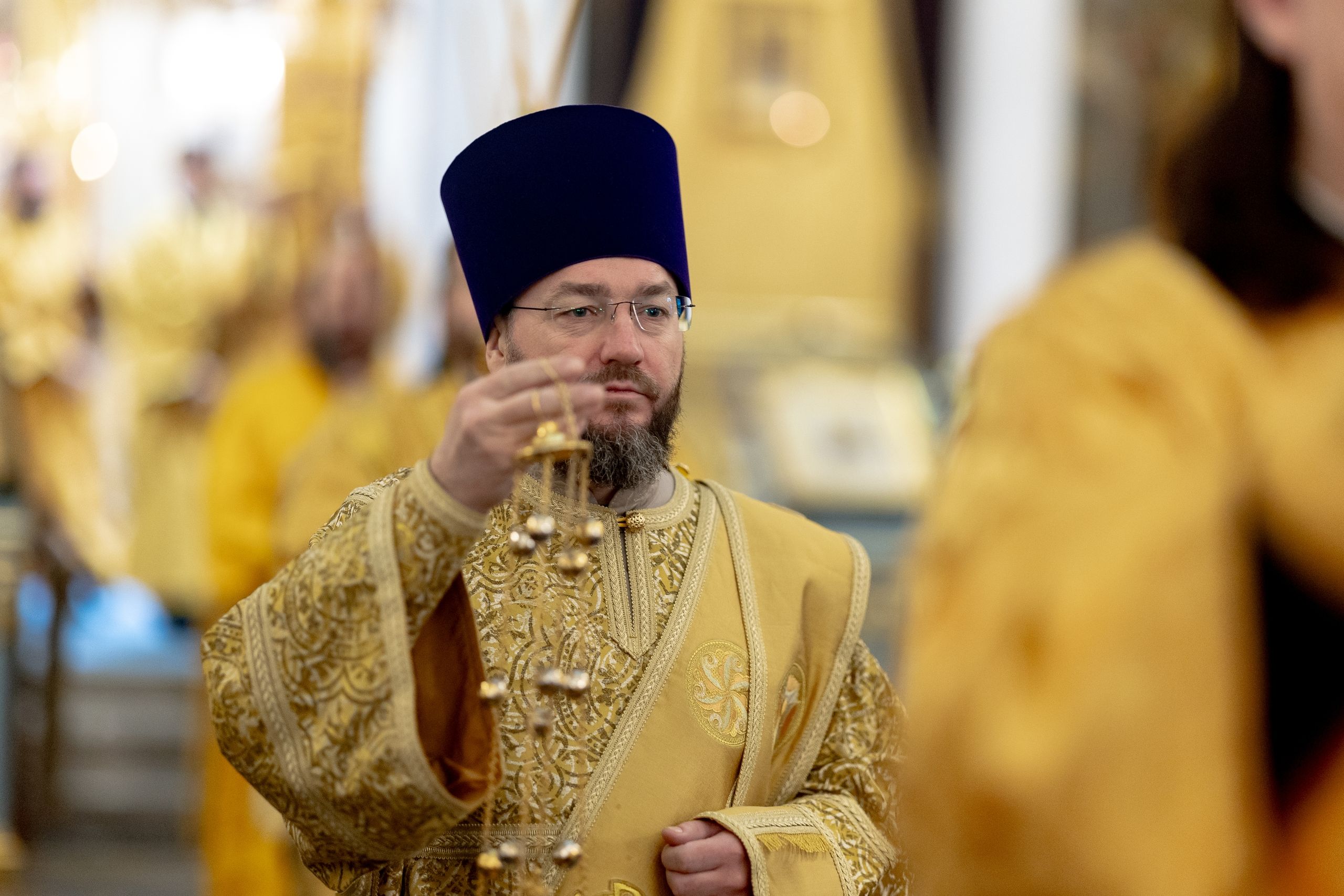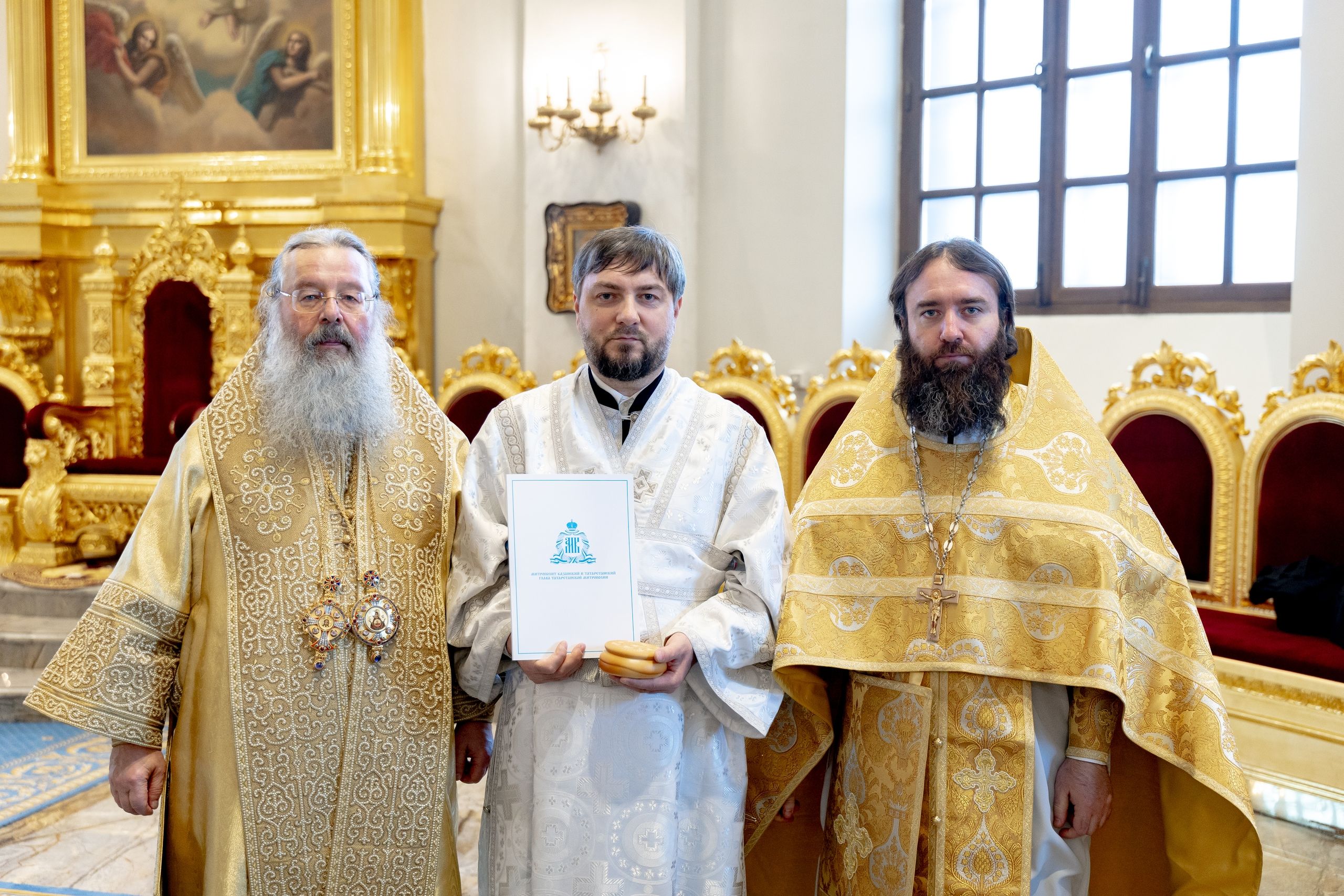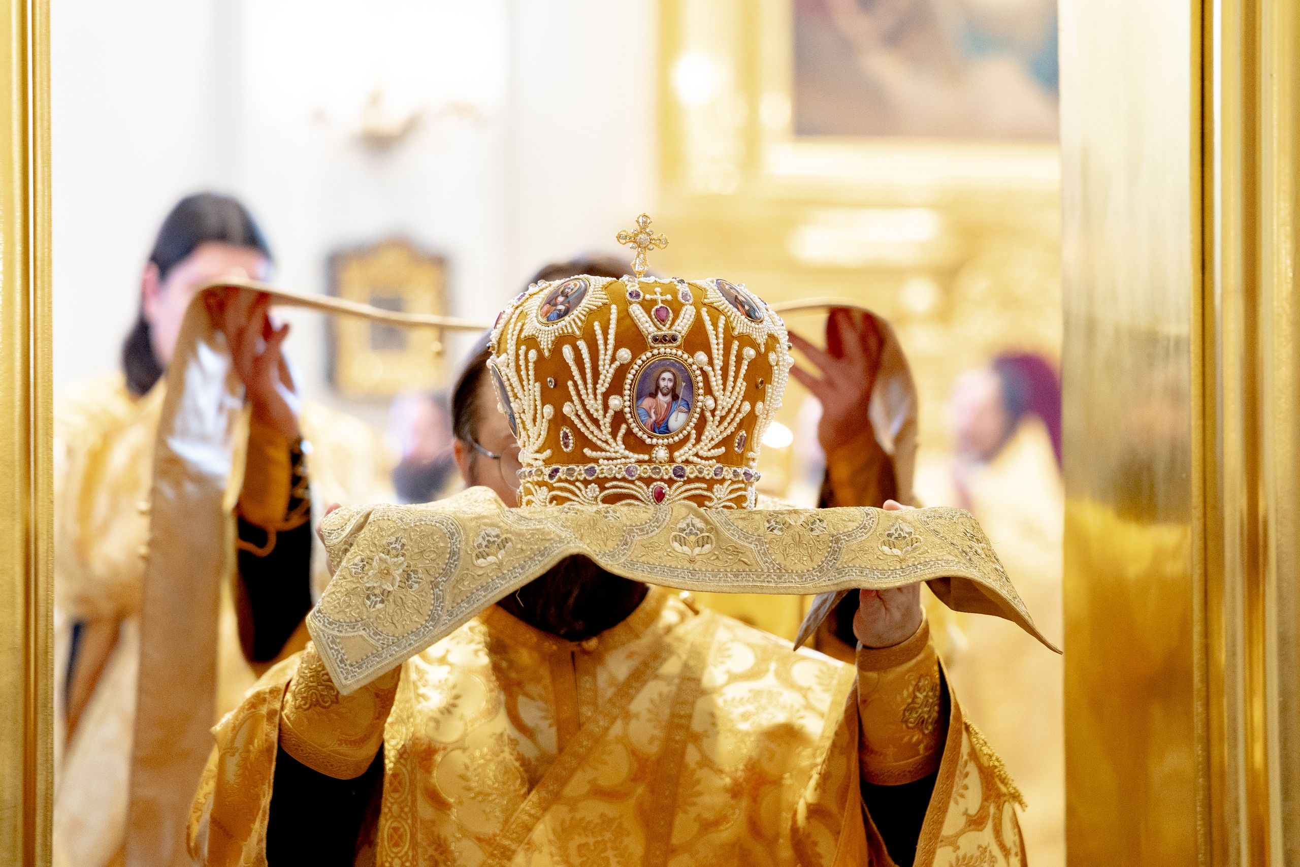 На мирной и сугубой ектениях были вознесены молитвы о Российском воинстве и о мире. Митрополит Кирилл совершил диаконскую хиротонию иподиакона Максима Никонова. По запричастном стихе проповедь произнёс иеромонах Гермоген (Рубан).