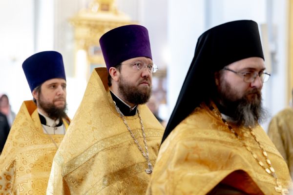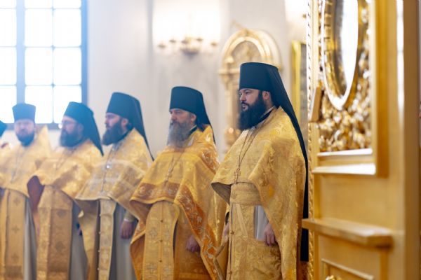 Его Высокопреосвященству сослужили наместник игумен Марк (Виленский), настоятель Введенского Кизического монастыря города Казани игумен Пимен (Ивентьев), наместник Свияжского Богородице-Успенского монастыря игумен Аркадий (Логинов), настоятель Иоанно-Предтеченского монастыря города Казани игумен Алексий (Яцейко), ключарь Благовещенского собора Казанского кремля иерей Виктор Бельских, настоятель Преображенского храма села Большие Кабаны иерей Роман Цвигуненко, братия Казанской Богородицкой обители в священном сане.