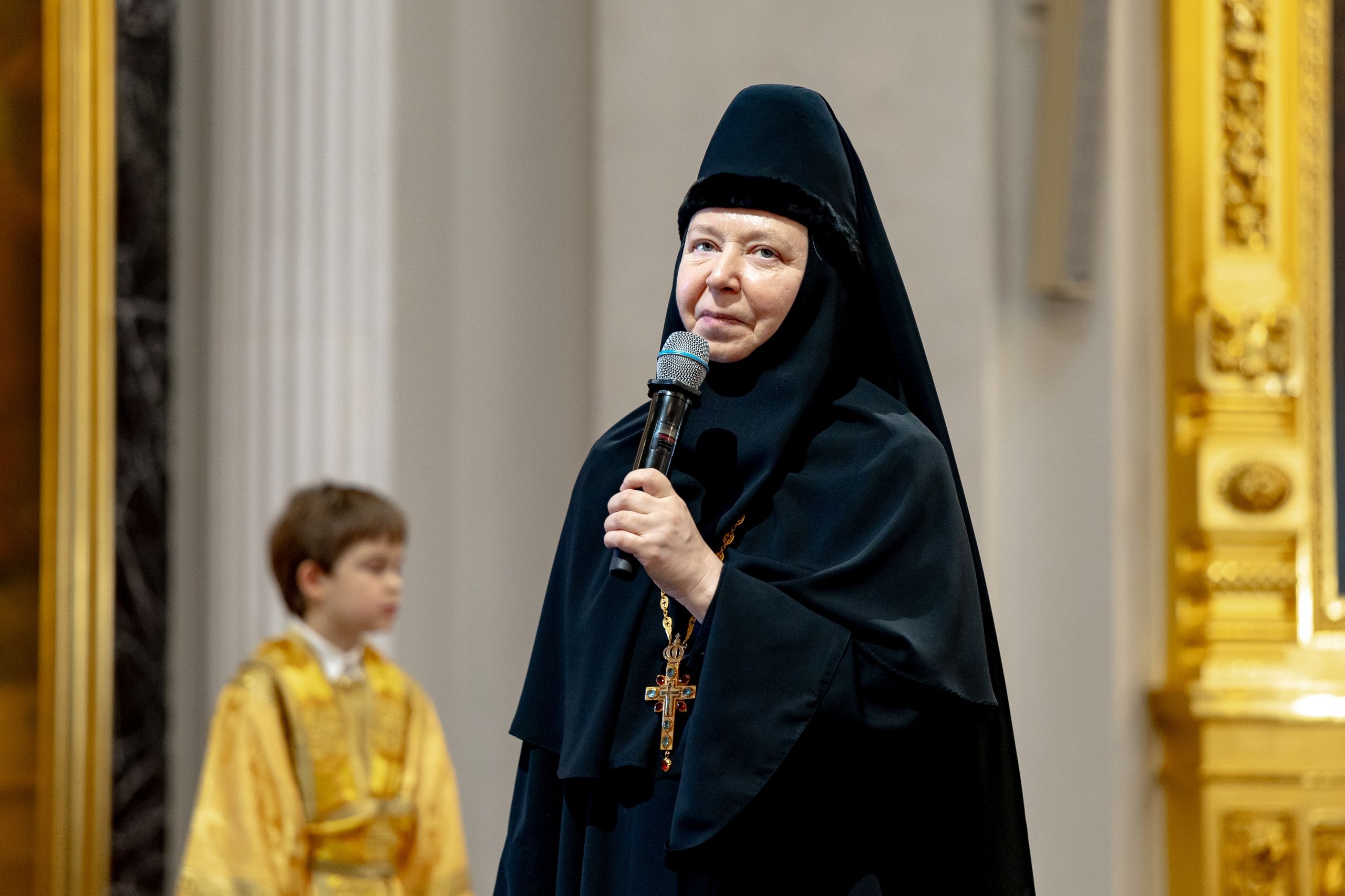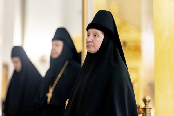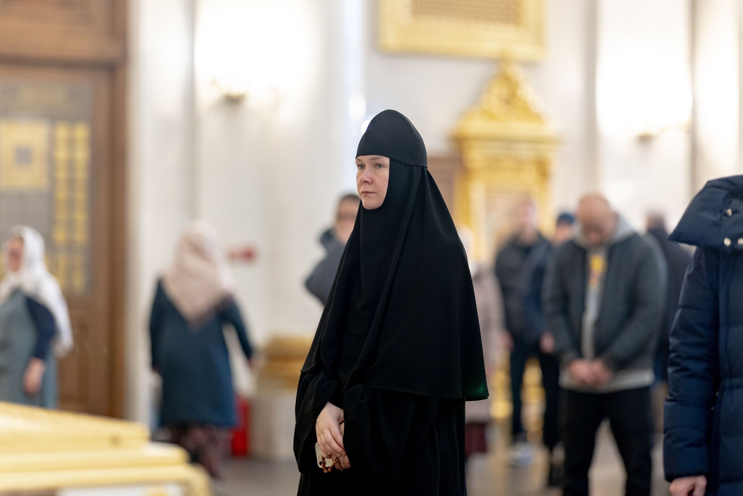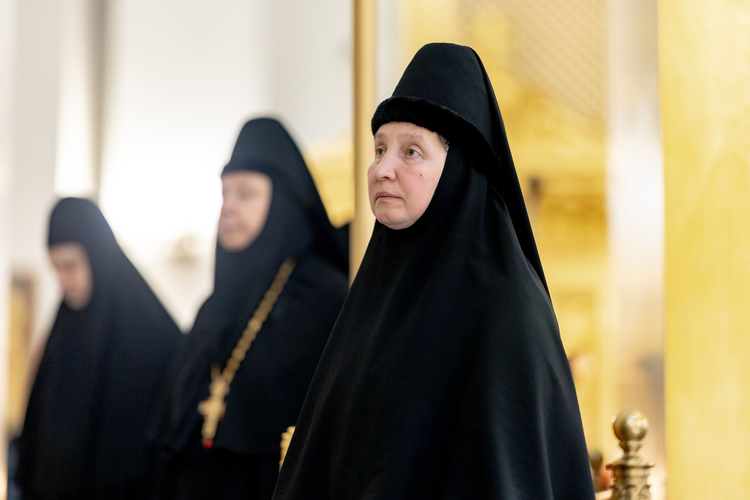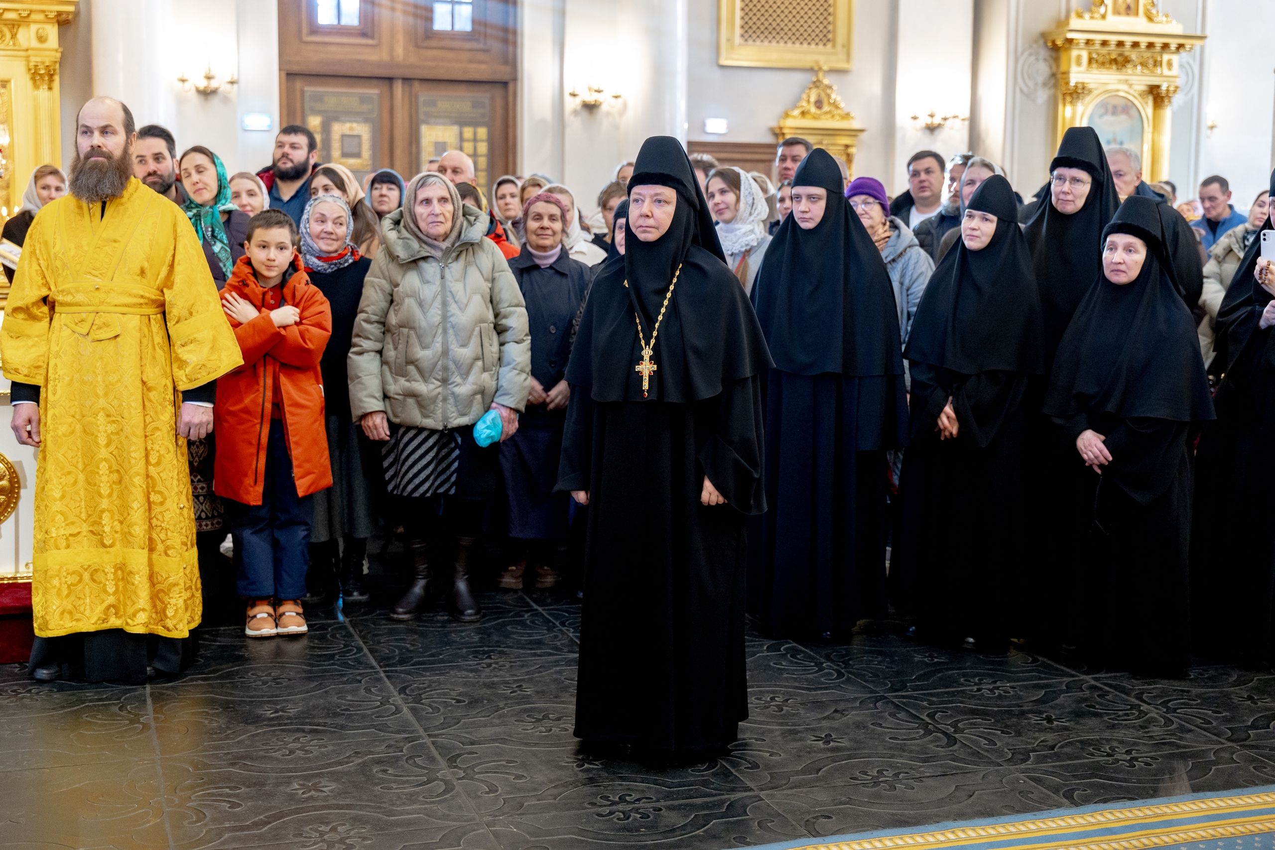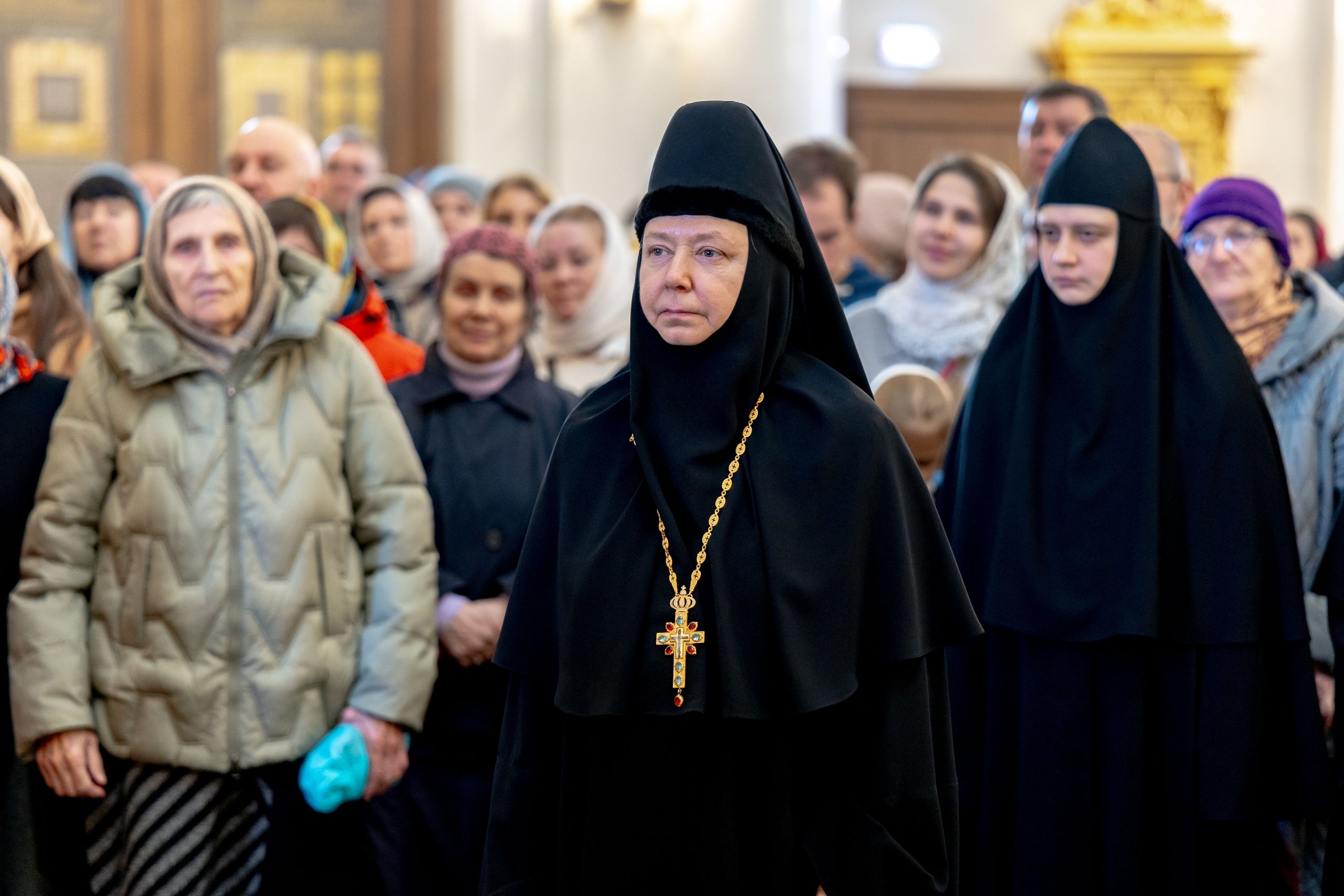 За богослужением молилась настоятельница Александро-Невского Ново-Тихвинского монастыря Екатеринбургской епархии игумения Домника (Коробейникова) с сёстрами обители.