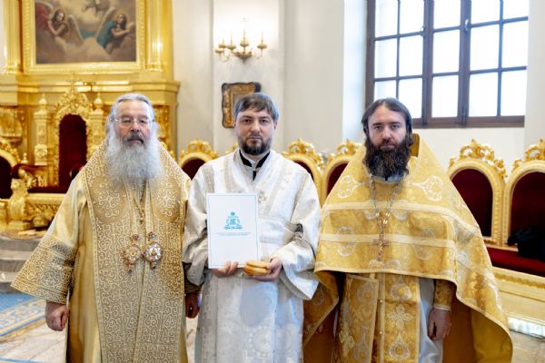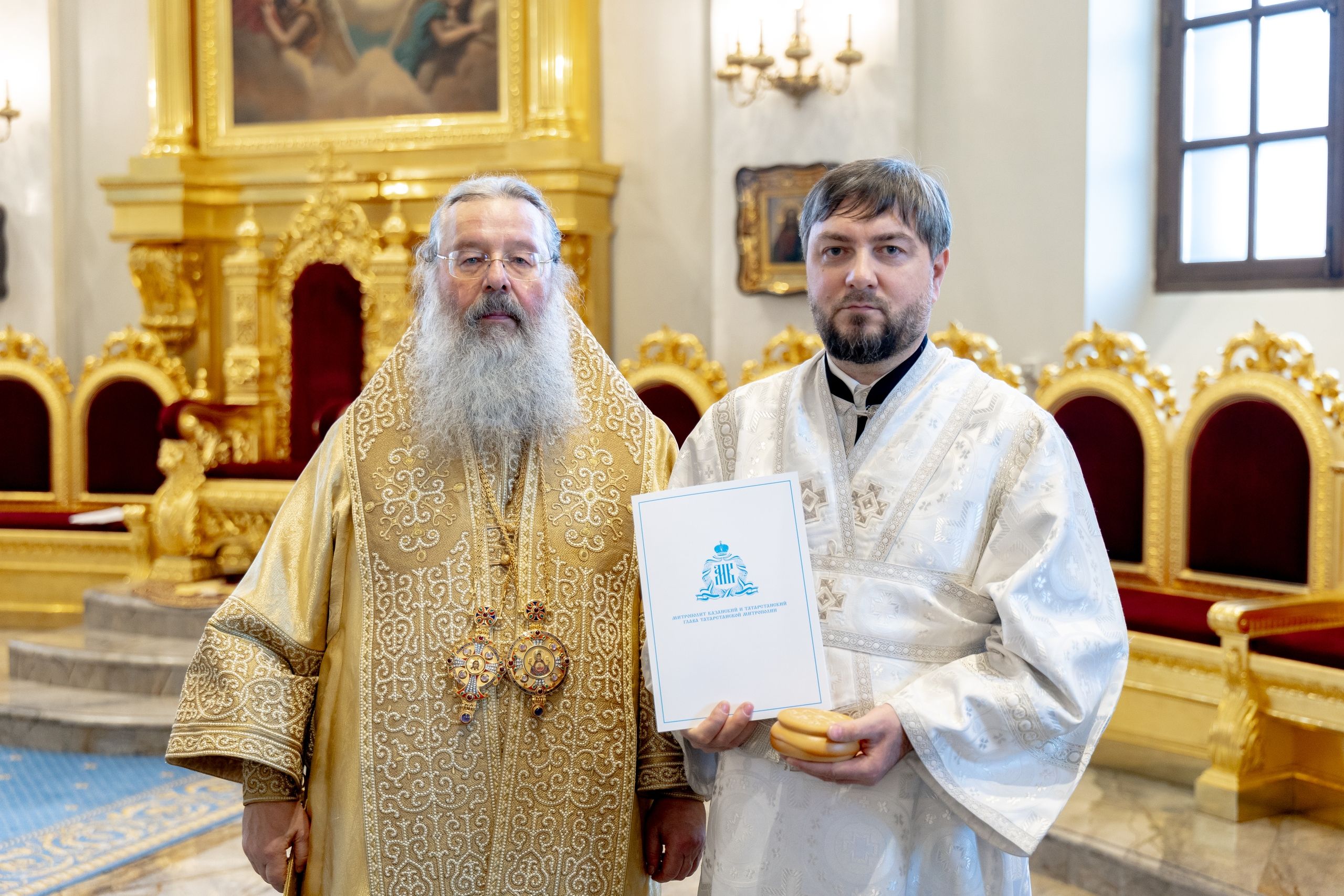От имени духовенства и прихожан Богородицкого монастыря игумен Марк (Виленский) поздравил главу Татарстанской митрополии с пятилетием прибытия на Казанскую кафедру: