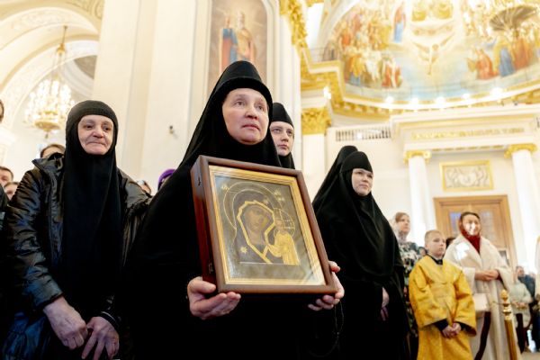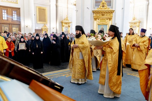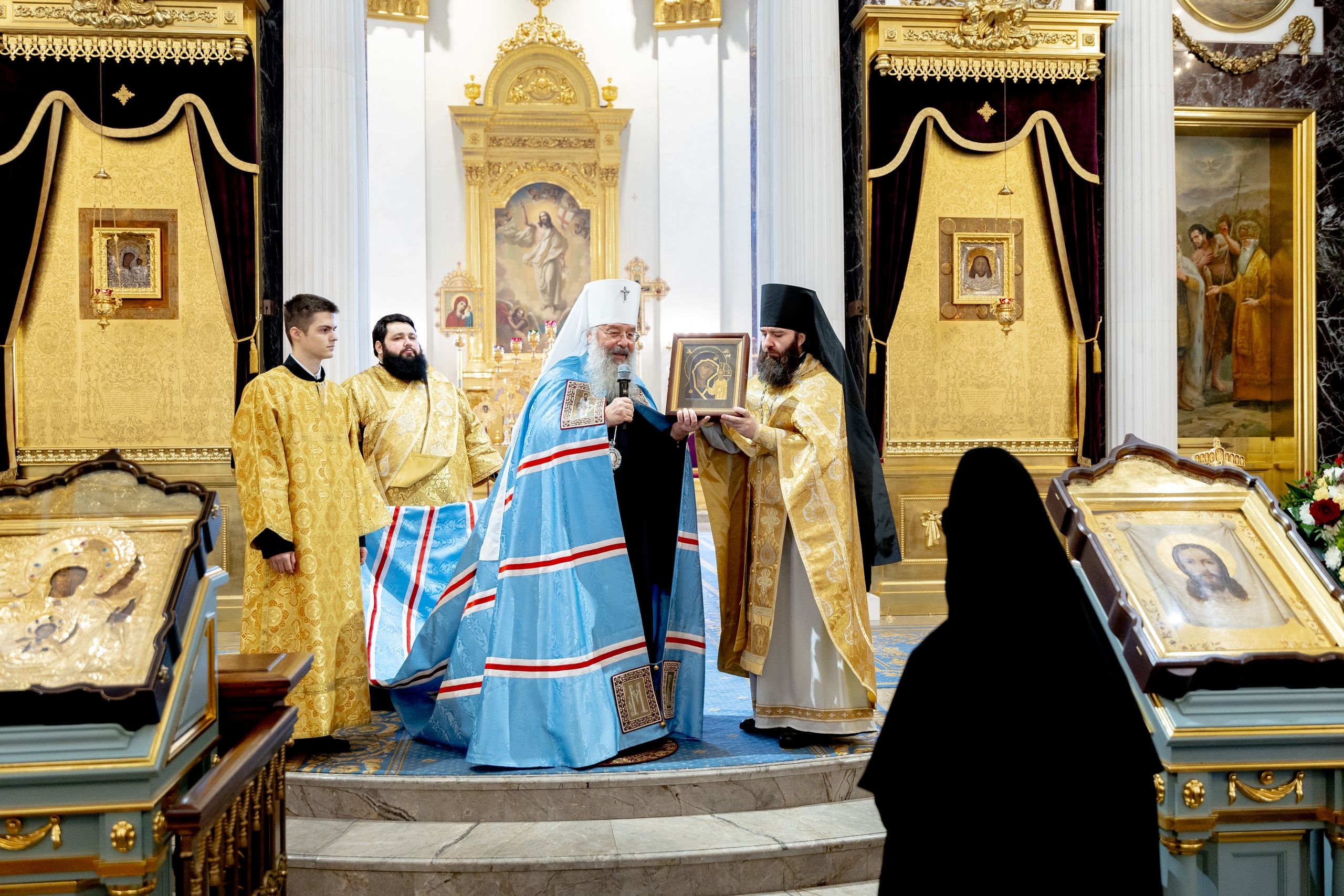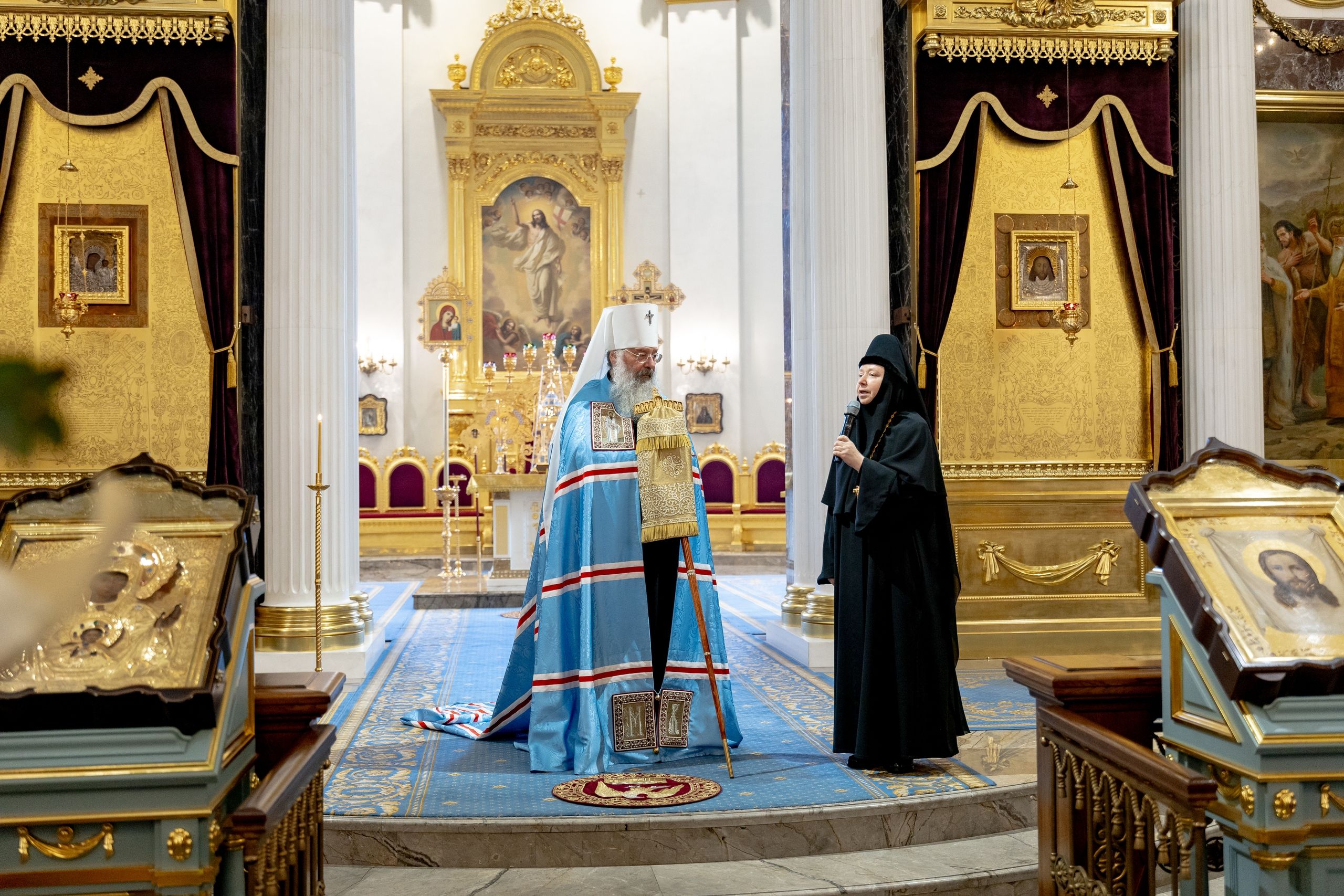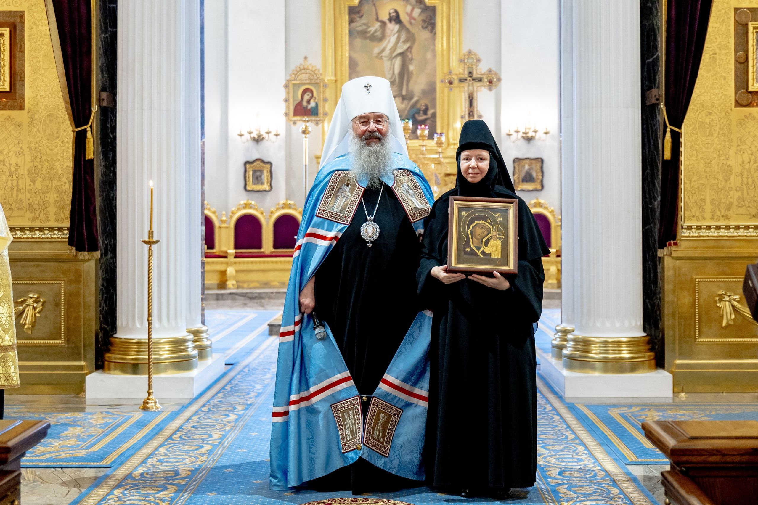 Архипастырь приветствовал игумению Домнику (Коробейникову) с сёстрами. На память о посещении столицы Татарстана архипастырь вручил матушке Казанскую икону Божией Матери. Игумения Домника в свою очередь поблагодарила владыку Кирилла за гостеприимство и радость совместной молитвы в обители Божией Матери.