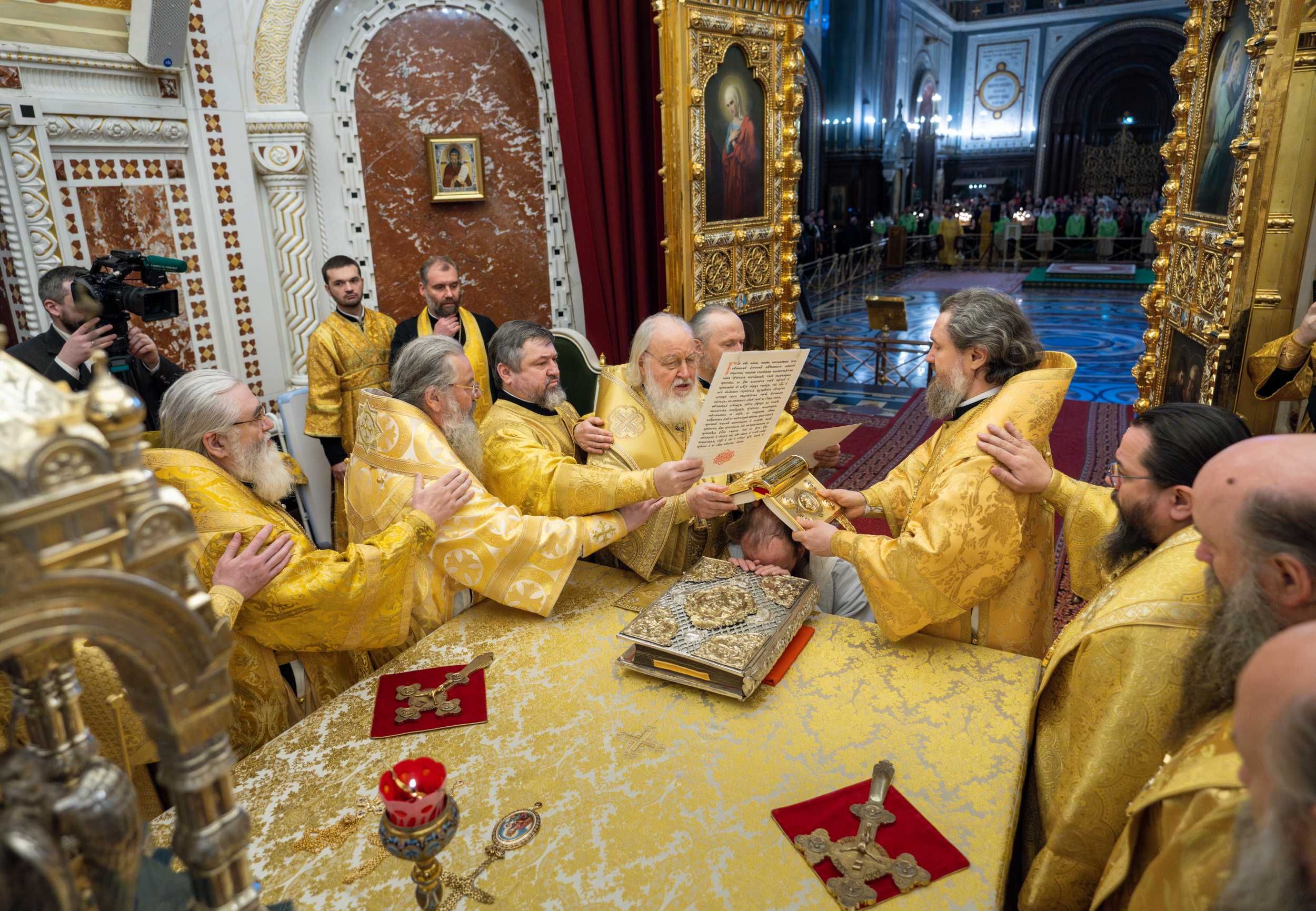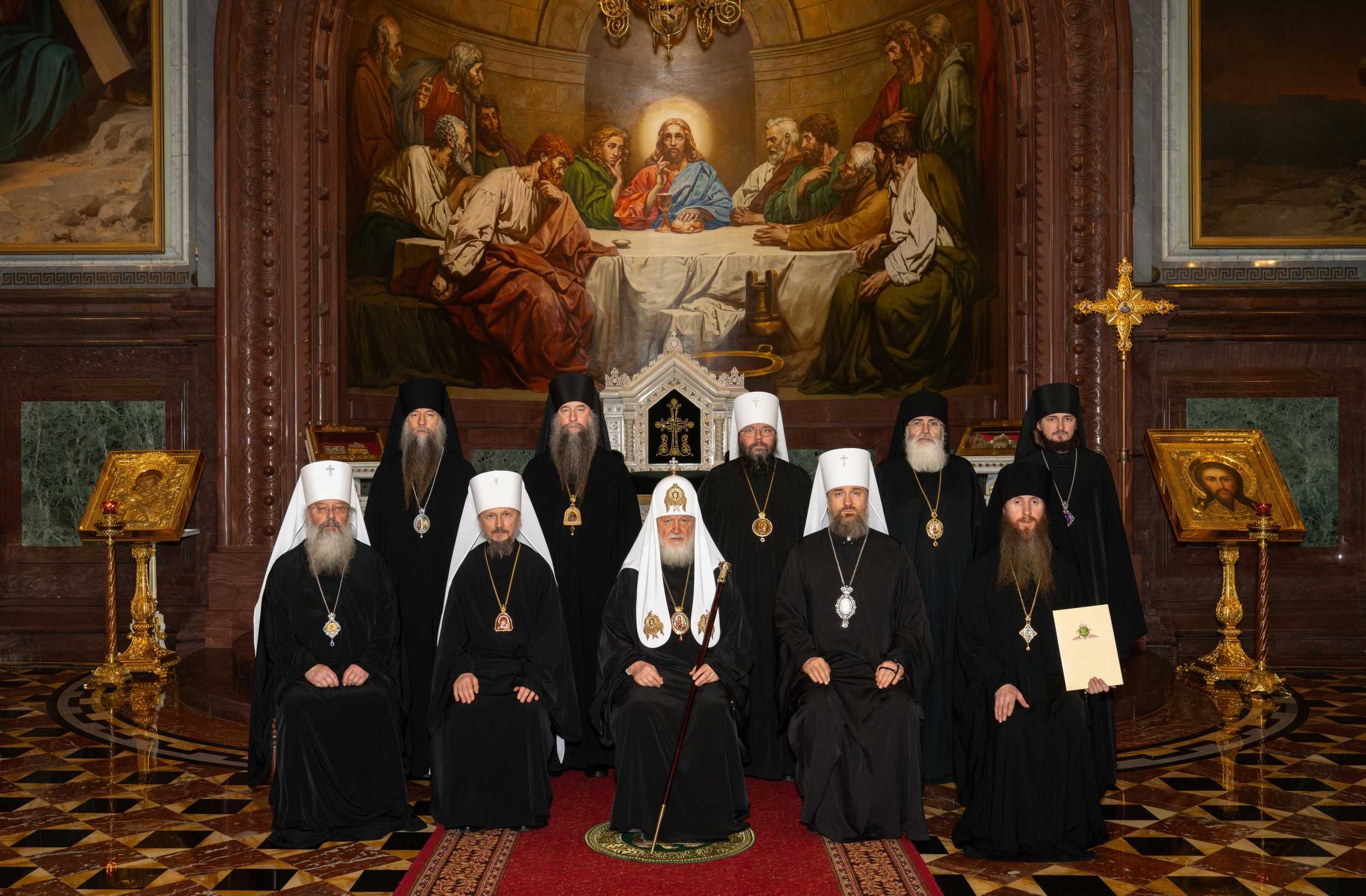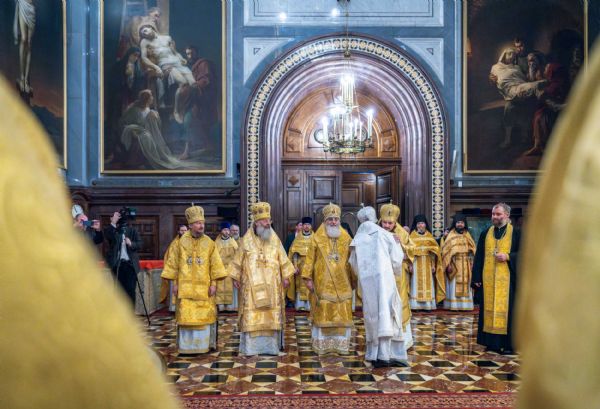 Его Святейшеству сослужили Патриарший Экзарх всея Беларуси митрополит Минский и Заславский Вениамин, первый викарий Святейшего Патриарха Московского и всея Руси по городу Москве митрополит Воскресенский Григорий, митрополит Казанский и Татарстанский Кирилл, митрополит Псковский и Порховский Матфей, епископ Тихвинский и Лодейнопольский Мстислав, епископ Сергиево-Посадский и Дмитровский Кирилл, викарий Святейшего Патриарха епископ Раменский Алексий, викарий Святейшего Патриарха епископ Егорьевский Мефодий, а также ключарь Храма Христа Спасителя протоиерей Михаил Рязанцев, клирик Храма Христа Спасителя протоиерей Андрей Марущак, наместник Святогорского Свято-Успенского монастыря в Пушкинских горах (Псковская митрополия) игумен Василий (Бурков), благочинный монастырей Гомельской епархии Белорусского экзархата игумен Феодорит (Золотарев), помощник управляющего делами Московской Патриархии иеромонах Мисаил (Сарафанов), столичное духовенство, клирики ряда епархий Русской Православной Церкви.