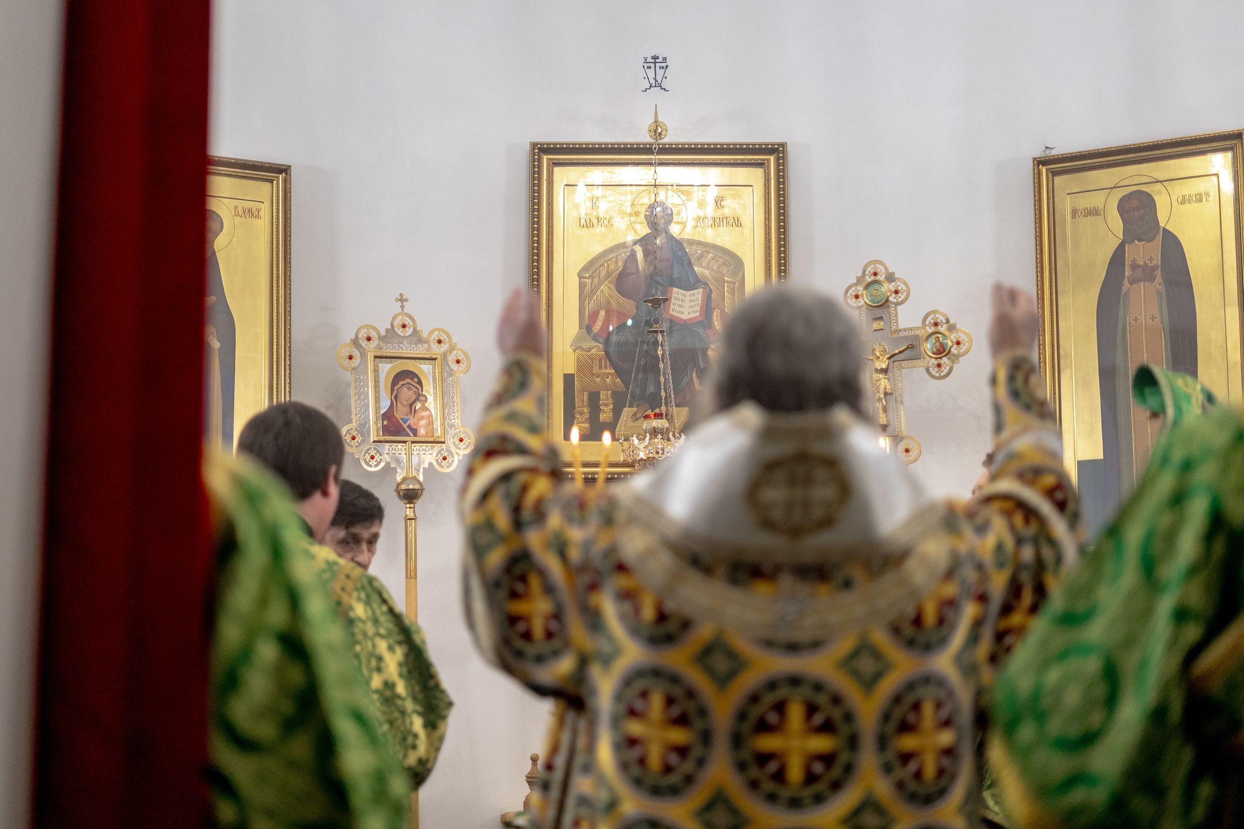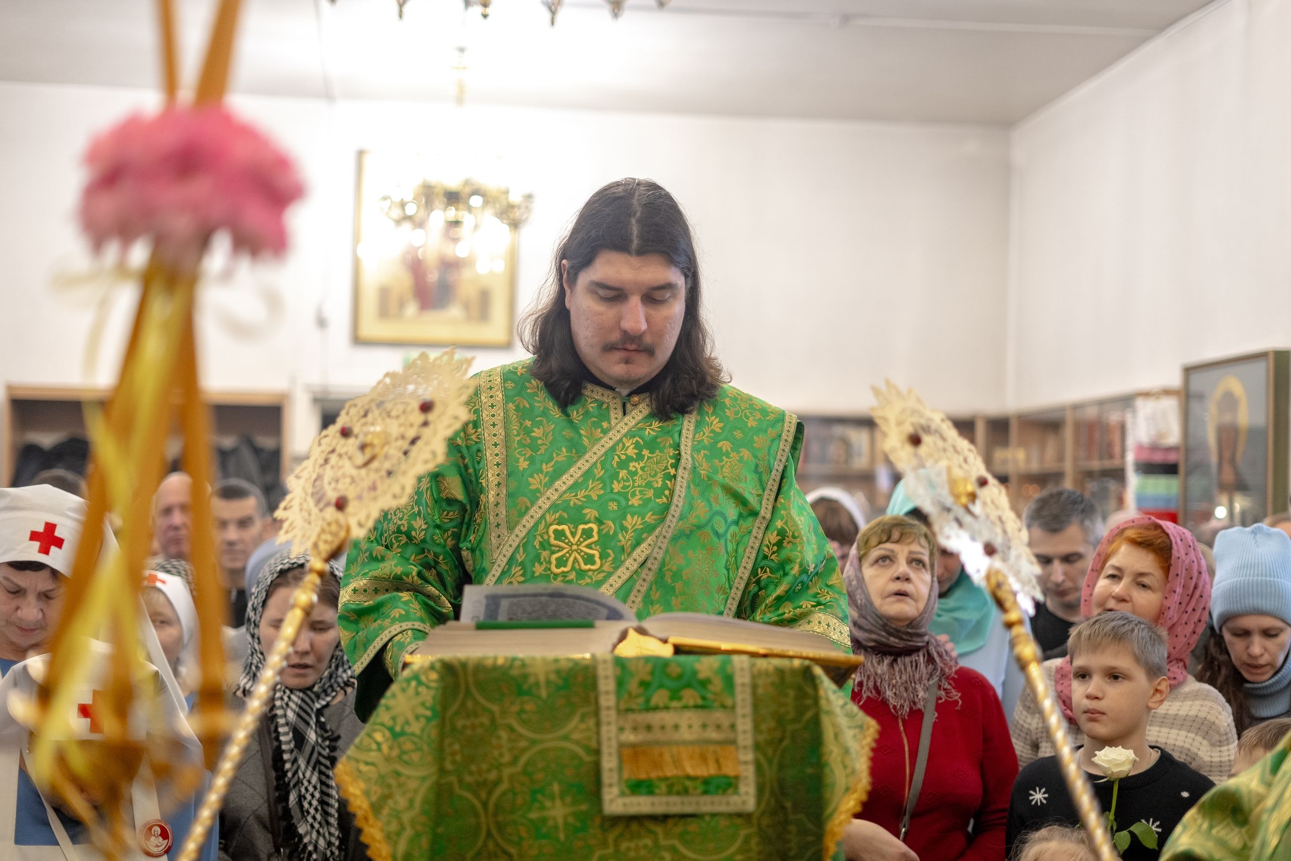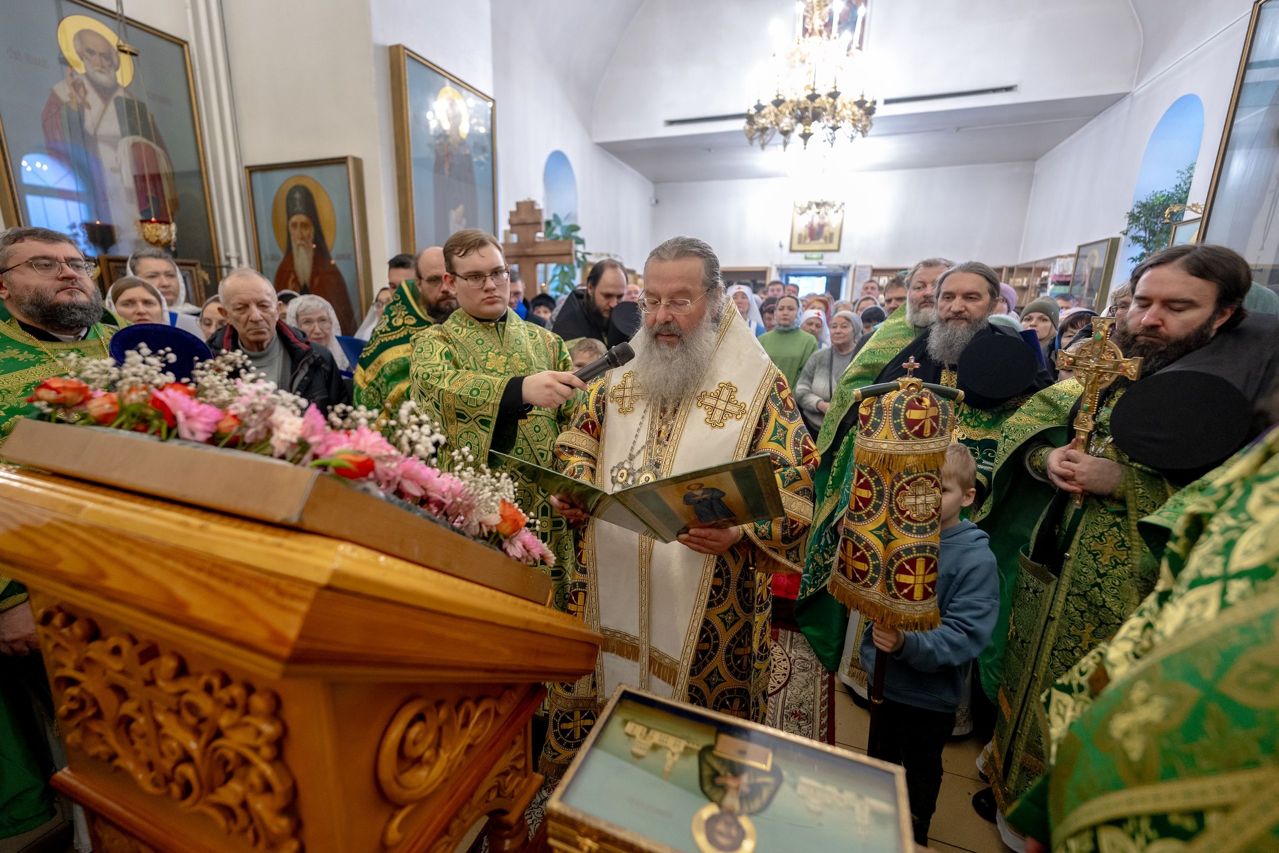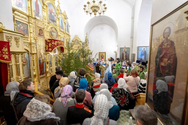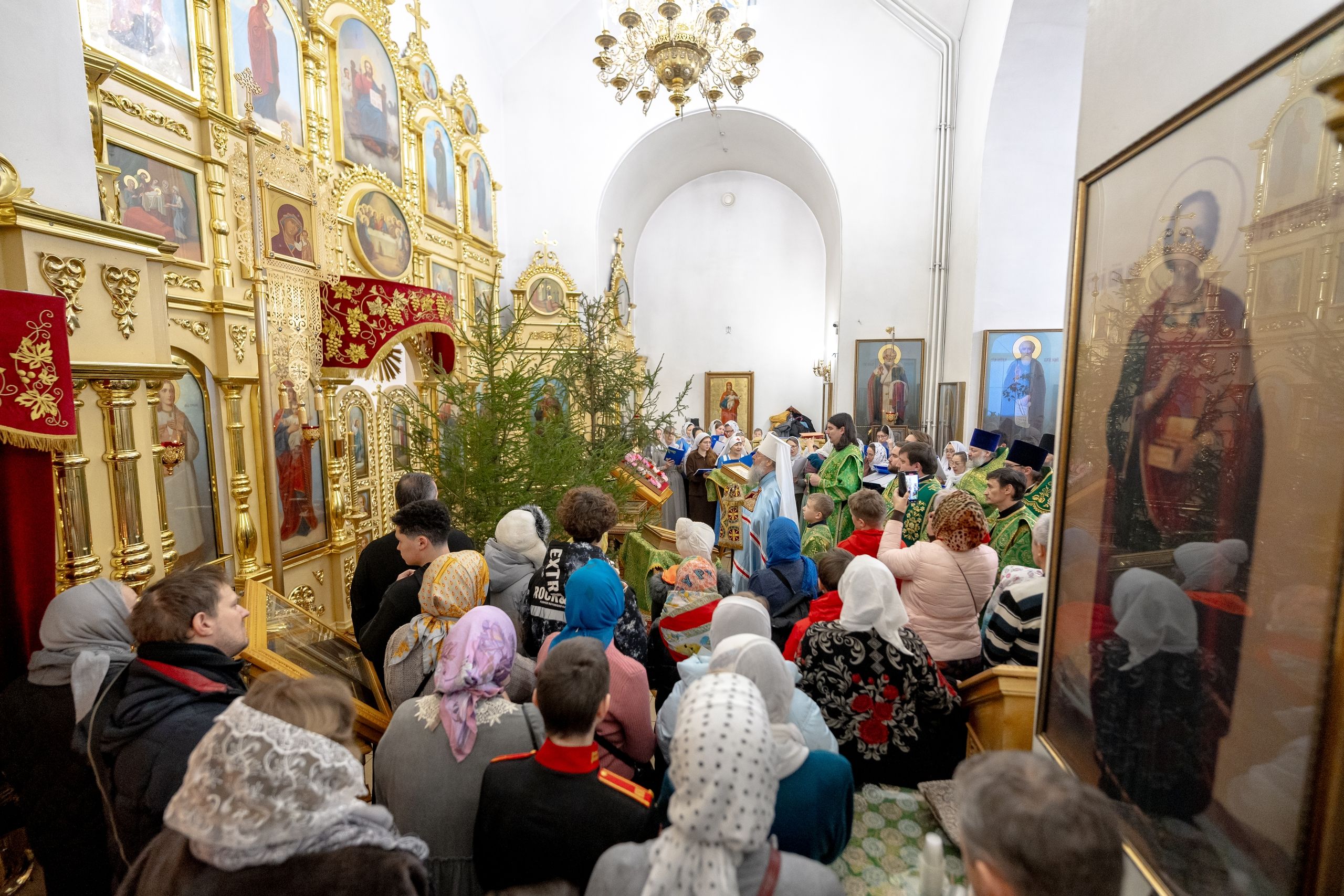 На мирной и сугубой ектениях были вознесены молитвы о Российском воинстве и о мире. По запричастном стихе проповедь произнёс иерей Валерий Варнашов. В завершение было совершено славление праведному Симеону Верхотурскому перед ковчегом с частицей мощей святого.