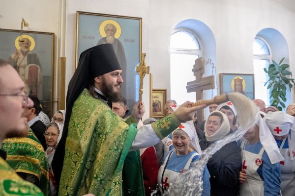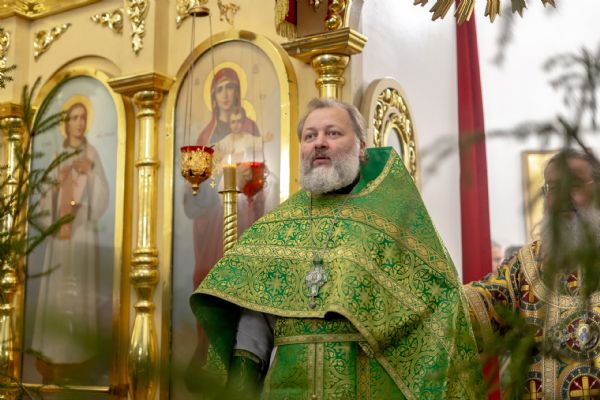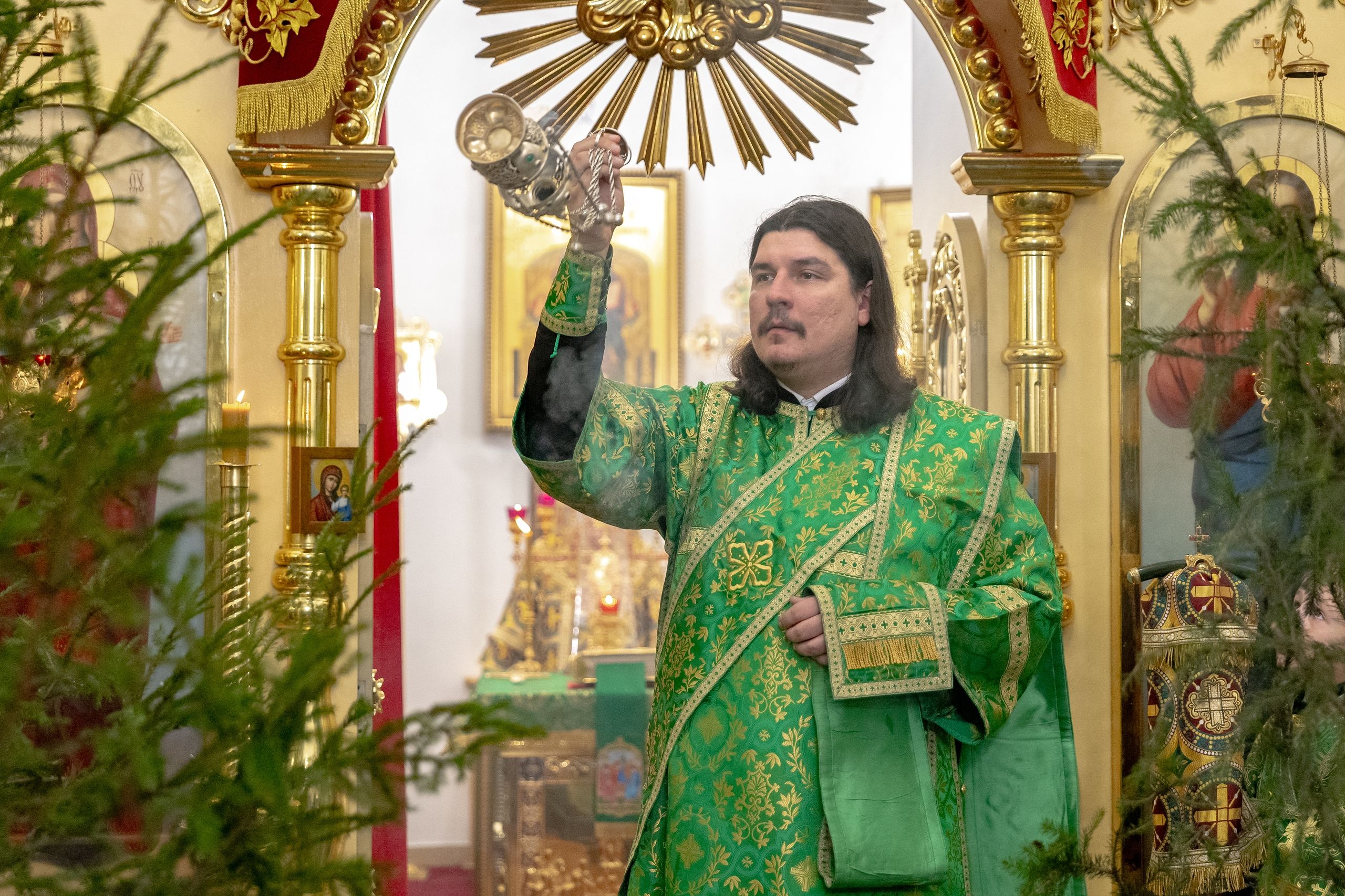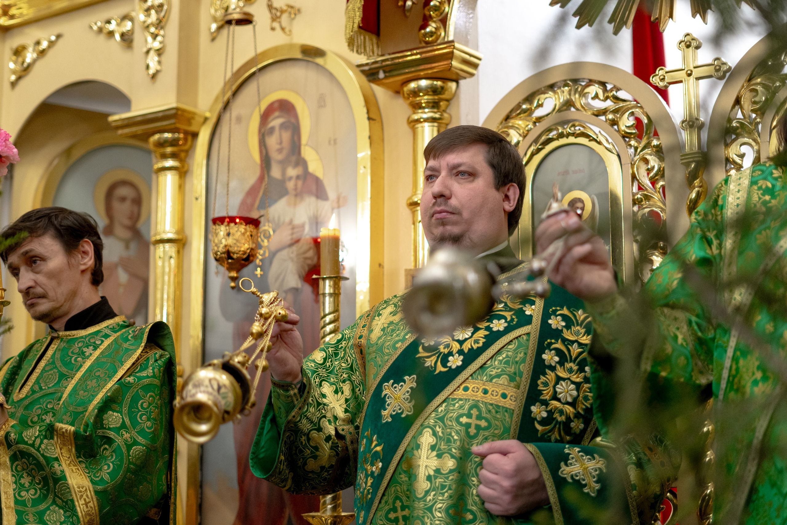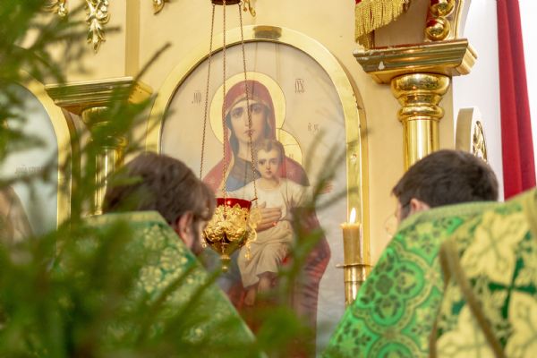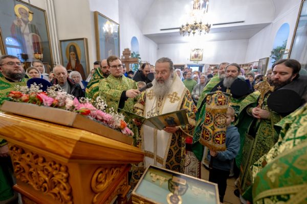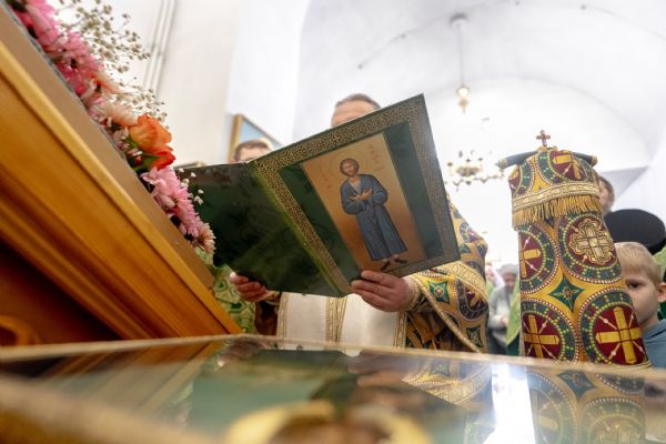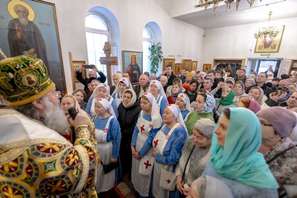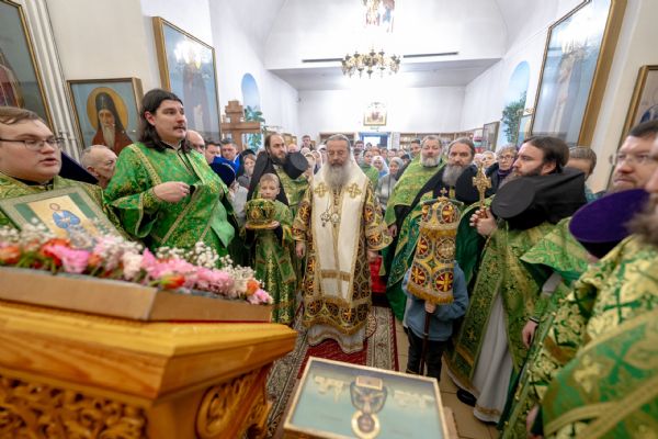 На мирной и сугубой ектениях были вознесены молитвы о Российском воинстве и о мире. По запричастном стихе проповедь произнёс иерей Валерий Варнашов. В завершение было совершено славление праведному Симеону Верхотурскому перед ковчегом с частицей мощей святого.