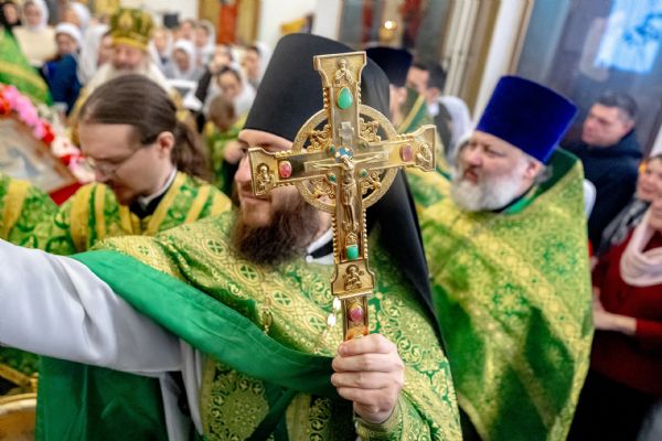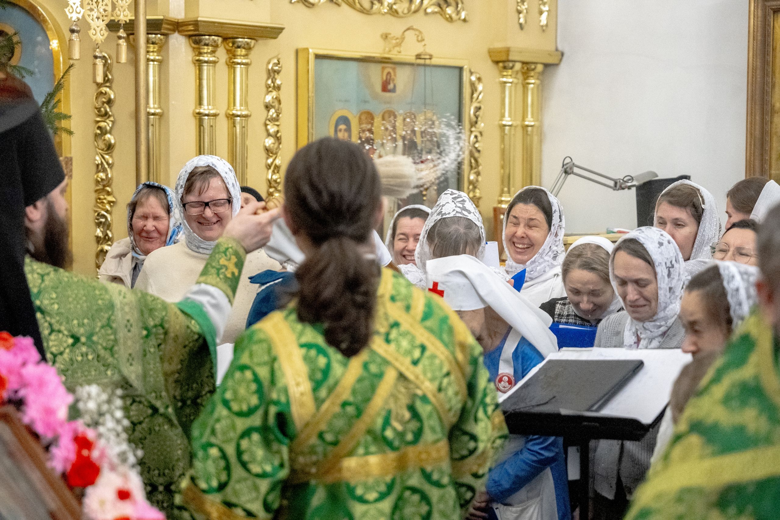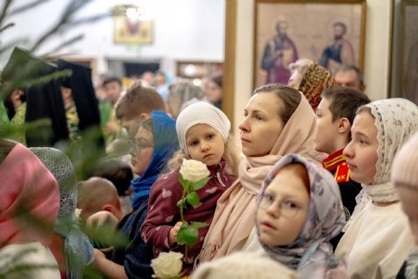 Митрополит Кирилл поблагодарил верующих за молитвы и исполнение песнопений богослужения и ещё раз поздравил с праздником:
