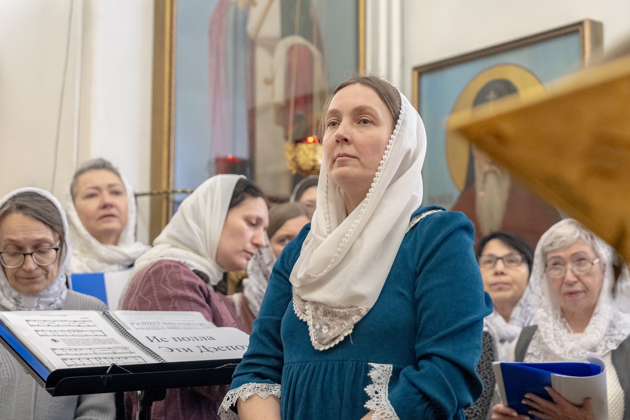 Песнопения исполнил хор прихожан Софийского прихода под управлением матушки Полины Павловой.