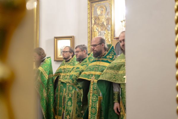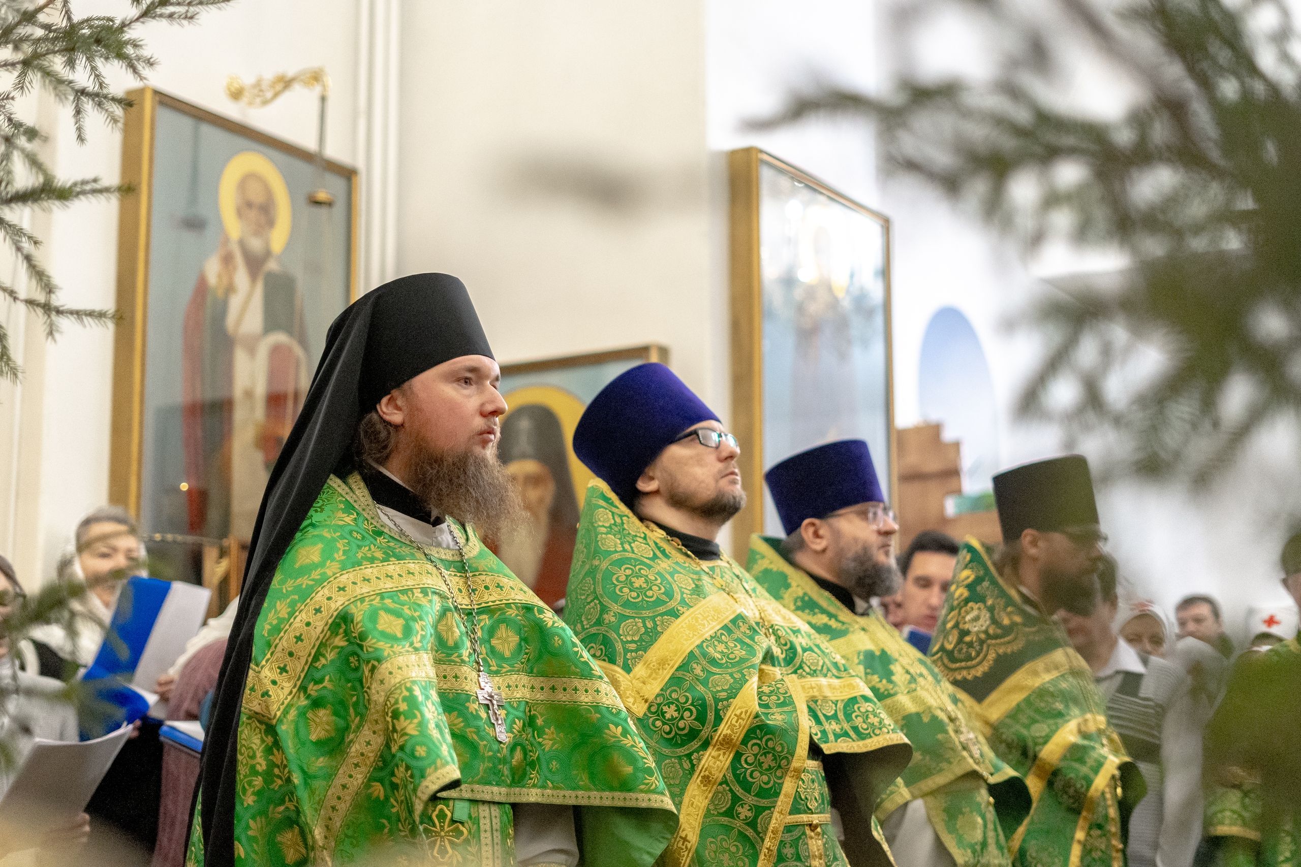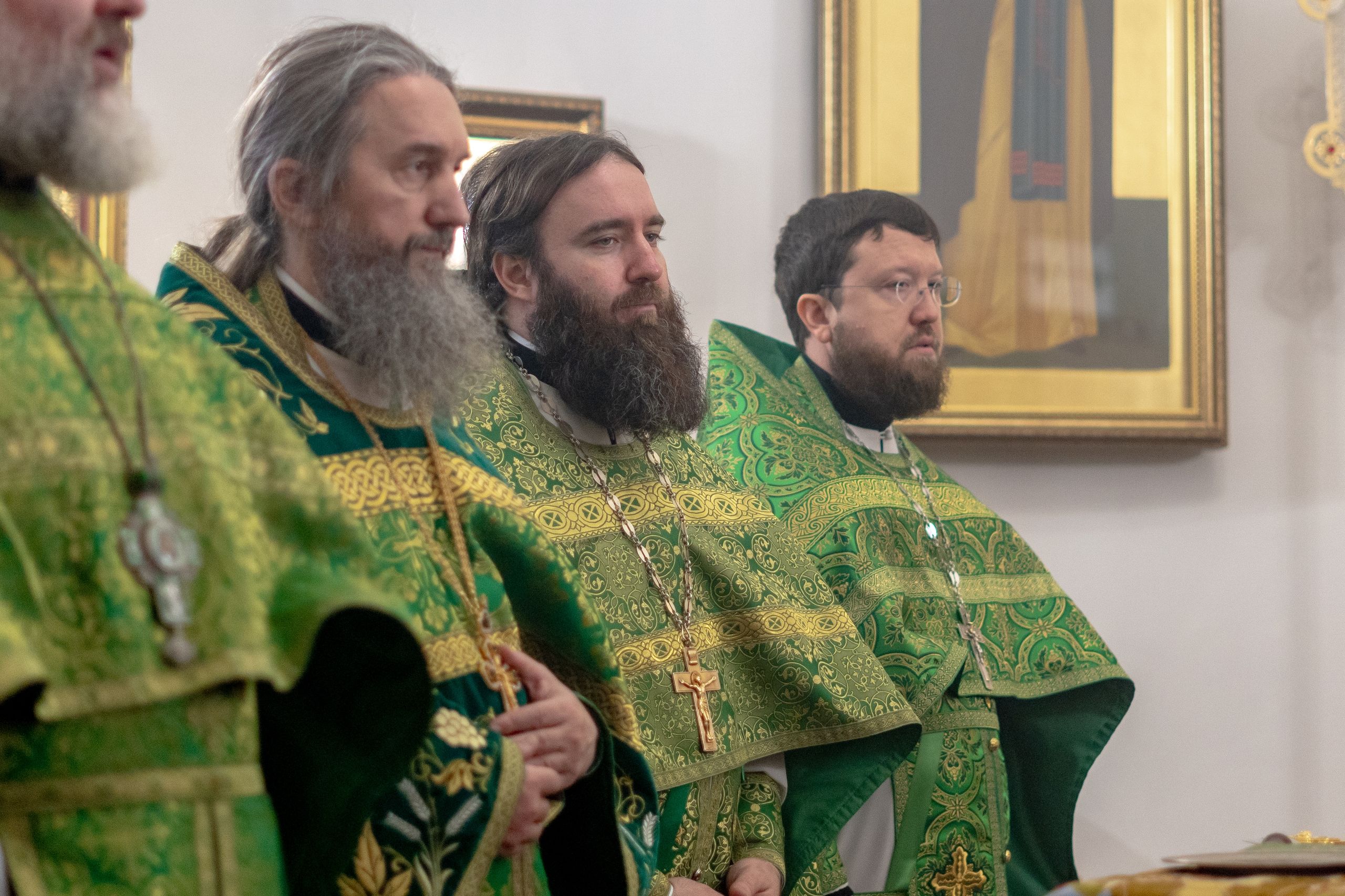 Его Высокопреосвященству сослужили секретарь Татарстанской митрополии иеромонах Кирилл (Корытко), благочинный III округа города Казани протоиерей Алексий Краевский, настоятель Софийского храма протоиерей Александр Павлов, настоятель Свияжского Иоанно-Предтеченского монастыря игумен Аркадий (Логинов), настоятель Иоанно-Предтеченского монастыря города Казани игумен Алексий (Яцейко), настоятель храма Ярославских чудотворцев на Арском кладбище города Казани протоиерей Николай Троицкий, ключарь Благовещенского собора Казанского кремля иерей Виктор Бельских, клирик Софийского храма иерей Валерий Варнашов, насельник Казанского Богородицкого монастыря иеромонах Иларион (Шпаков).