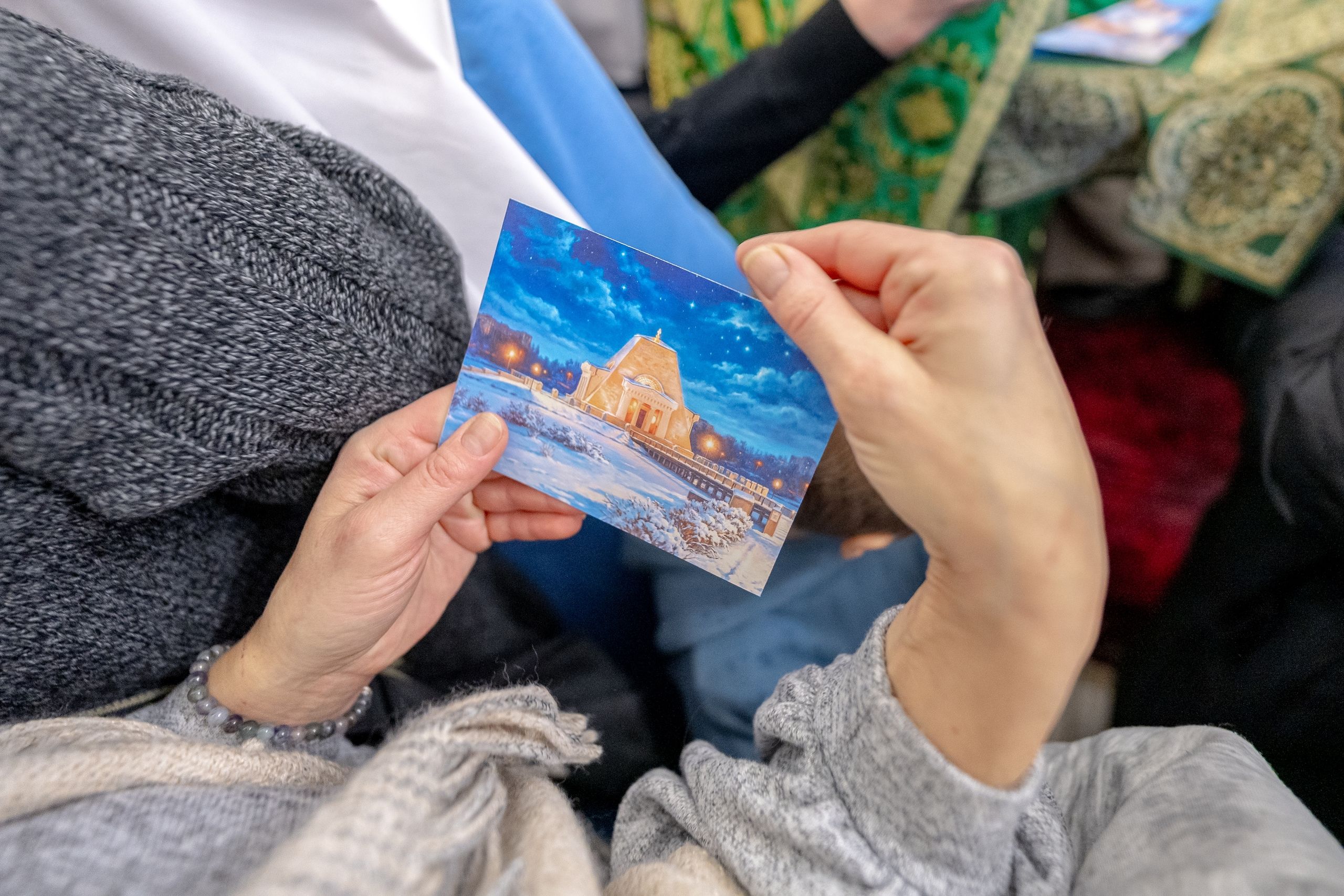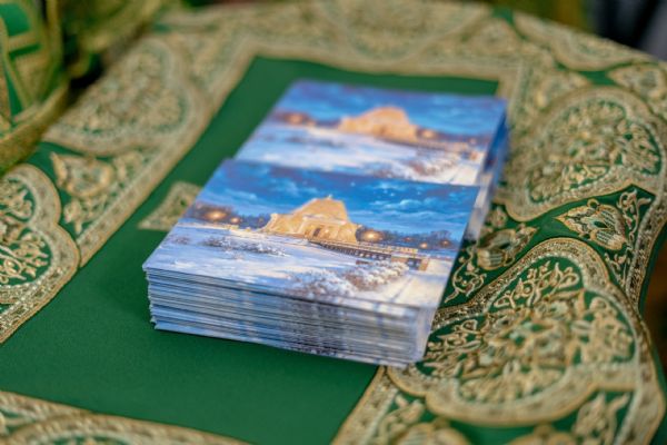 В подарок верующим владыка преподнёс рождественские открытки с изображением восстановленного храма-памятника Спаса Нерукотворного в акватории реки Казанки. Протоиерей Александр Павлов поблагодарил архипастыря за радость совместной молитвы в канун Нового года. По окончании богослужения для духовенства и прихожан была организована трапеза.