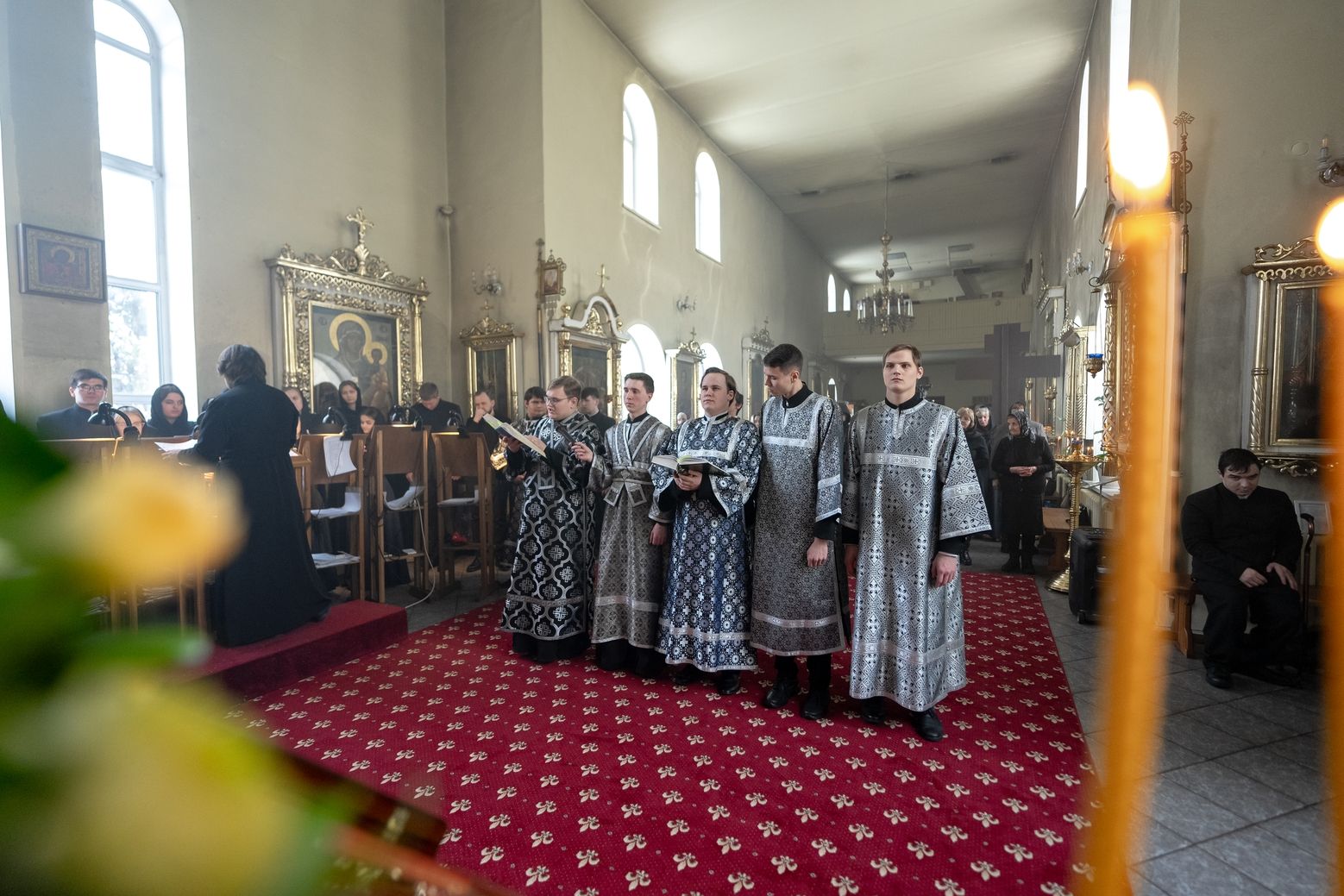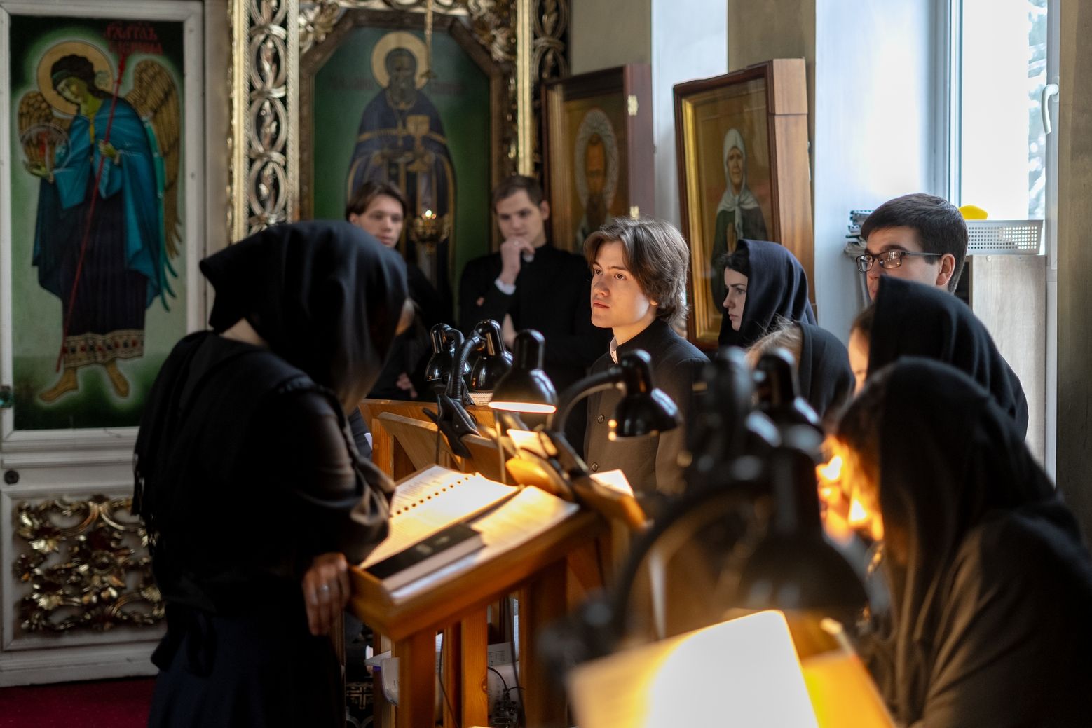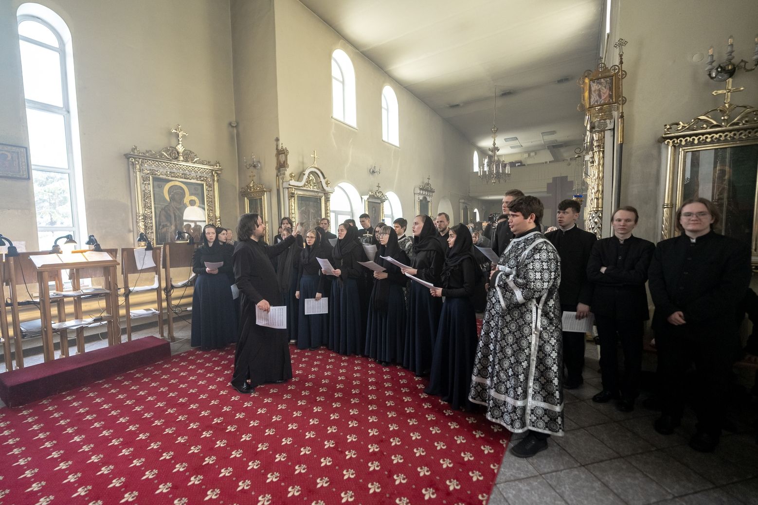 Песнопения исполнил хор воспитанников семинарии под управлением Дениса Рогова. За богослужением молились преподаватели и учащиеся духовной школы, прихожане семинарского храма.