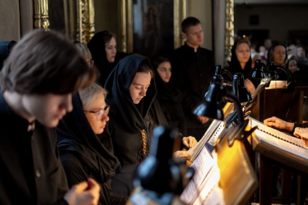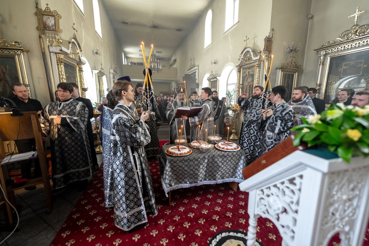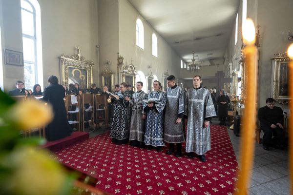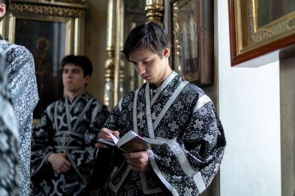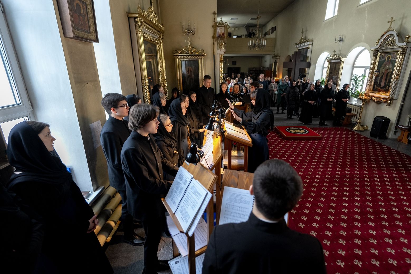 Песнопения исполнил хор воспитанников семинарии под управлением Дениса Рогова. За богослужением молились преподаватели и учащиеся духовной школы, прихожане семинарского храма.