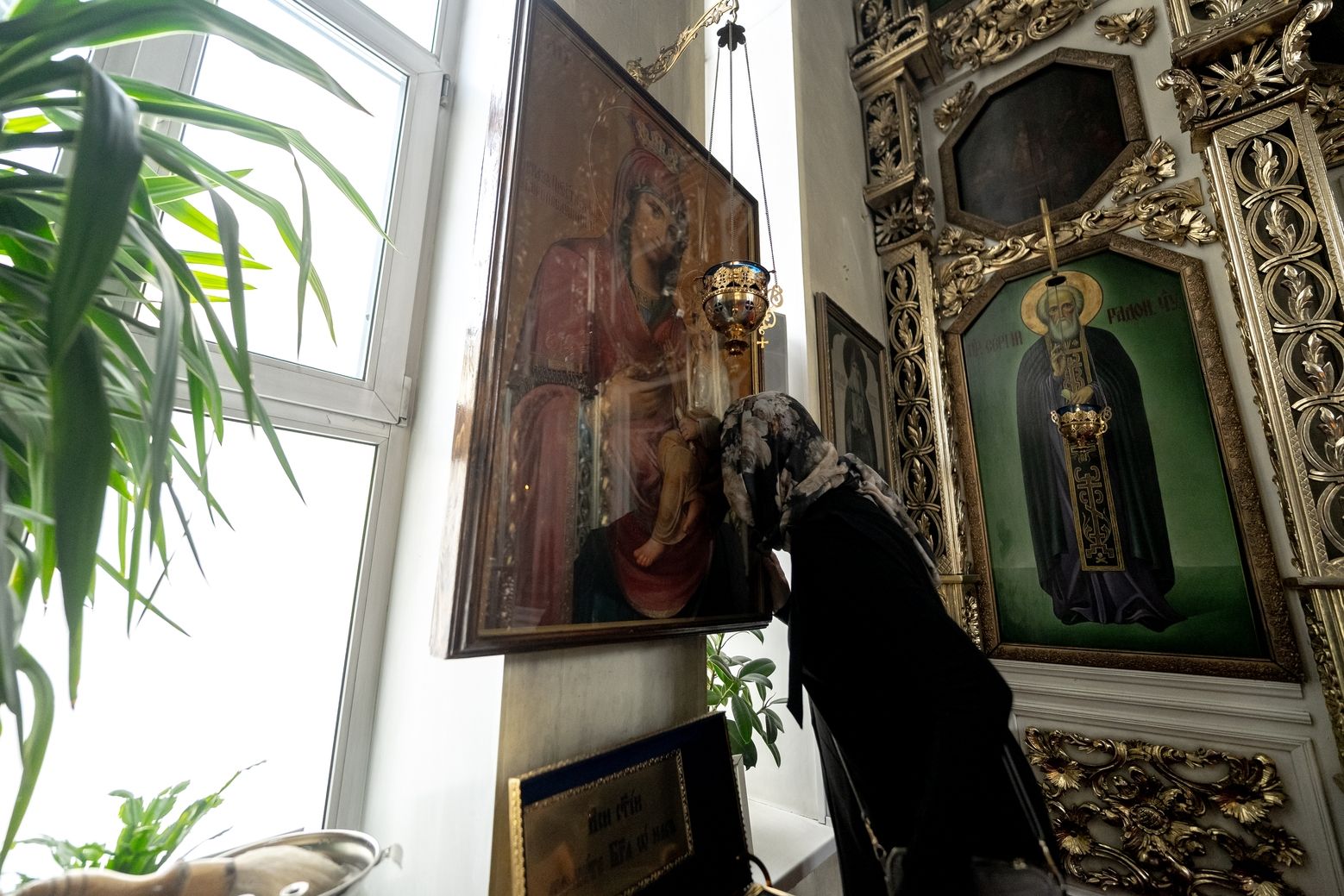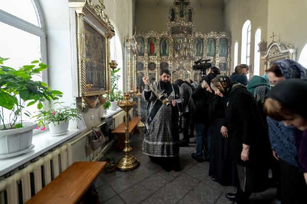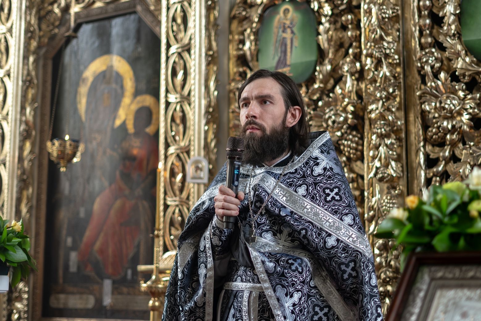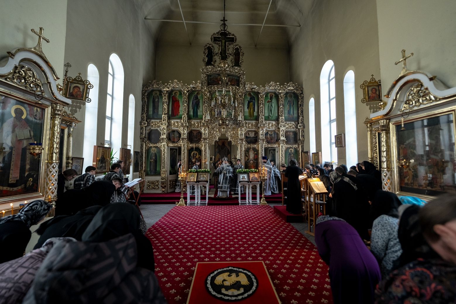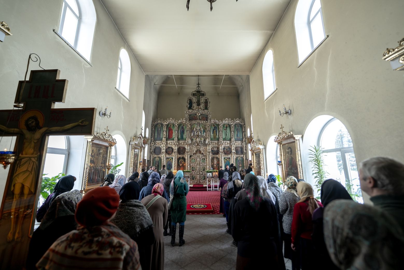 На мирной и сугубой ектениях были вознесены молитвенные прошения о Российском воинстве и молитва о мире. По запричастном стихе проповедь произнёс иерей Иоанн Куликов.