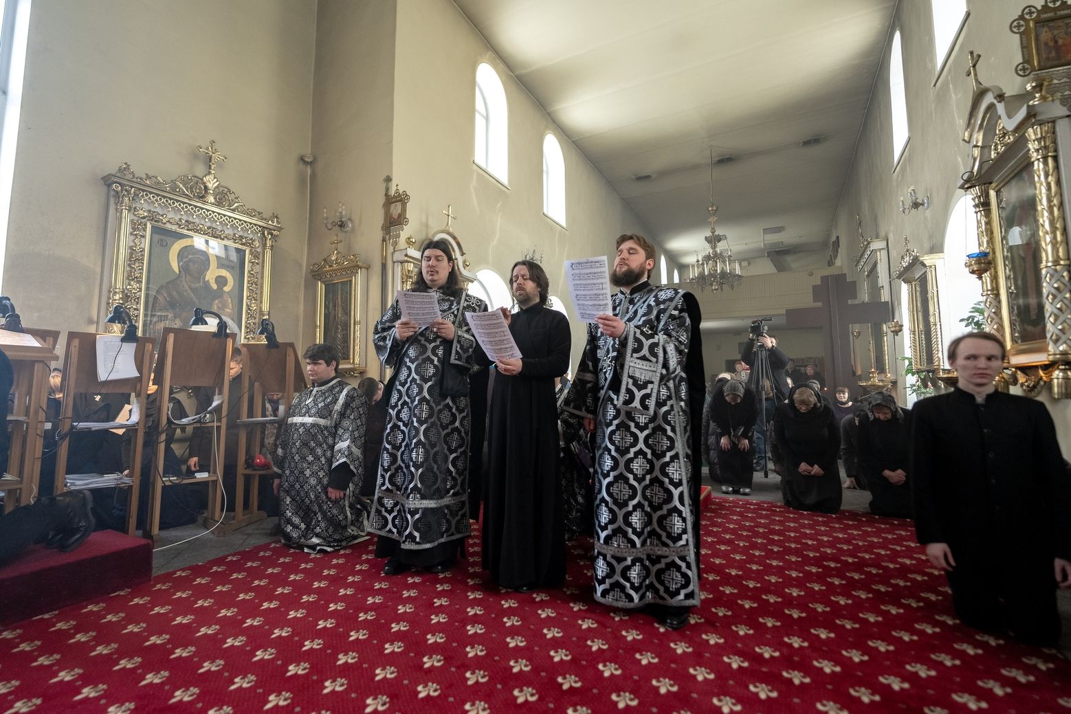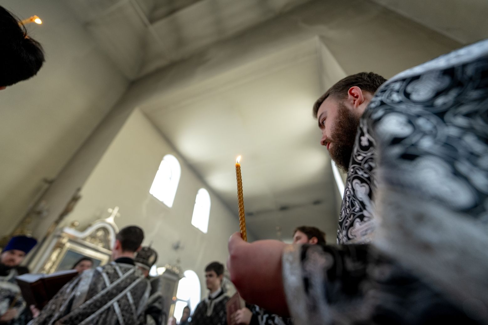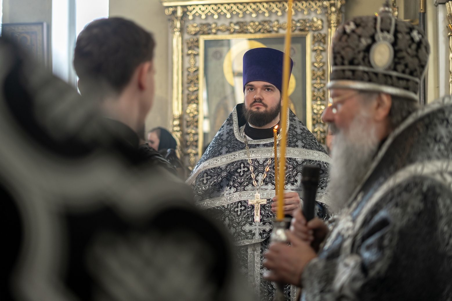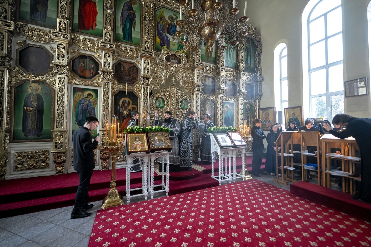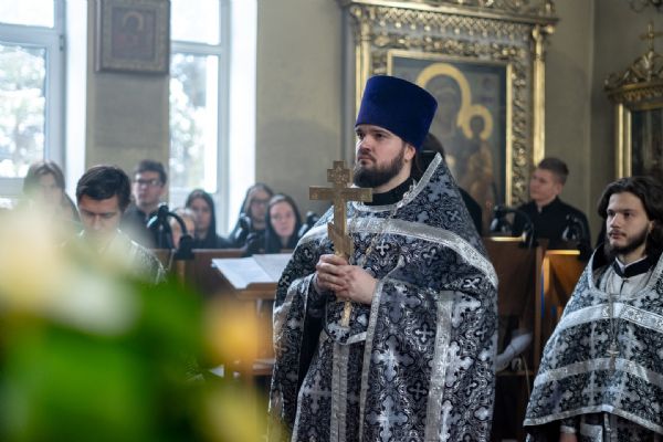 27 февраля 2026 года, в пятницу первой седмицы Великого поста, день памяти равноапостольного Кирилла, учителя Словенского, священномученика Павла пресвитера и сыновей его мучеников Бориса, Григория и Симеона Елабужских, митрополит Казанский и Татарстанский Кирилл совершил Литургию Преждеосвящённых Даров в храме праведного Иоанна Кронштадтского при Казанской духовной семинарии.